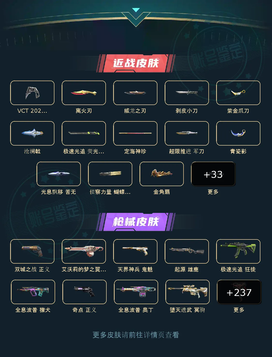 近战武器:离火刃2级紫色/vct2025爪刀满级全炫彩(vct爪刀)/灯龙杖2级/奇点军刀/龙骧三界2级乌雅踏崇/誓约之剑2级虚空/威龙之刃2级银色/光息飘移苦无2级暗闪/定海神珍2级幽月/剥皮小刀2级/艾沃莉的魔法棒2级粉红/青瓷影2级/狂沙之拥2级/沧澜戟2级深蓝/偃月2级莹白/无畏契约第1卷苦无2级/荧光刀2级蓝色/澄湖涟滟2级鱼扇/紫金爪刀2级/推进模式前进四2级红黑银蓝/圣石遗物2级/堕天遗武仪式匕首2级/个人近战单位2级/放电尖刺2级/离子武器能量剑2级/盖亚之怒2级蓝色/全息匕首2级/醒神破2级全炫彩/天玄刀2级/金角扇2级/侦察力量蝴蝶刀2级全炫彩(侦察蝴蝶刀)/金琅斧2级/巨神铁甲短剑/神罚军刀(神中神)/再见安打2级/全息战斧