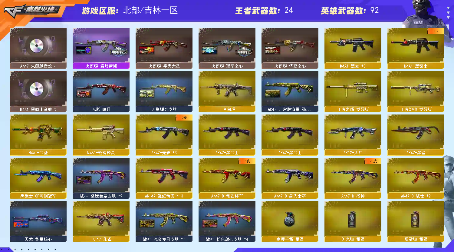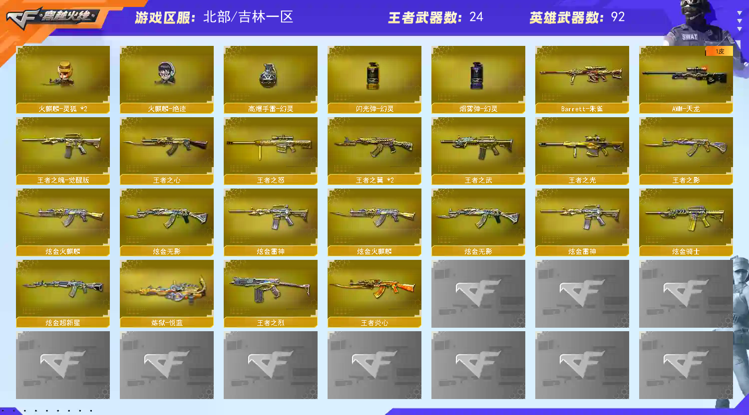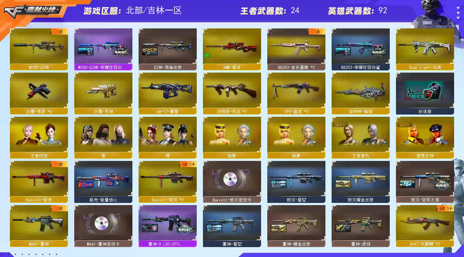 北部吉林一区【幻神周瑜➕幻神世冠白鲨➕王者幻神】白虎朱雀雷神18火麒麟冠军之心巅峰荣耀蔷薇世冠白鲨ぃ④音效6烈龙:麒麟刺、M200-幻神、加特林-炼狱、AK47-火麒麟、HK417-朱雀、M4A1-玫瑰精灵、炫金雷神、炫金骑士、王者之翼、王者之灵、炼狱-悦蓝、王者之锋-觉醒版、王者之怒-觉醒版、王者之魄-觉醒版、炫金火麒麟、王者之烈、王者白虎、王者之武、王者之光、王者之影、王者之心、王者之怒、王者炎心、王者幻神-觉醒版、火麒麟-灵狐、火麒麟-绝迹、王者玲珑、灵狐者-职业经理、M4A1-黑骑士音效卡、王者之心金色光效、炼狱-悦蓝金色光效、王者之魄金色光效、等,随意畅选。