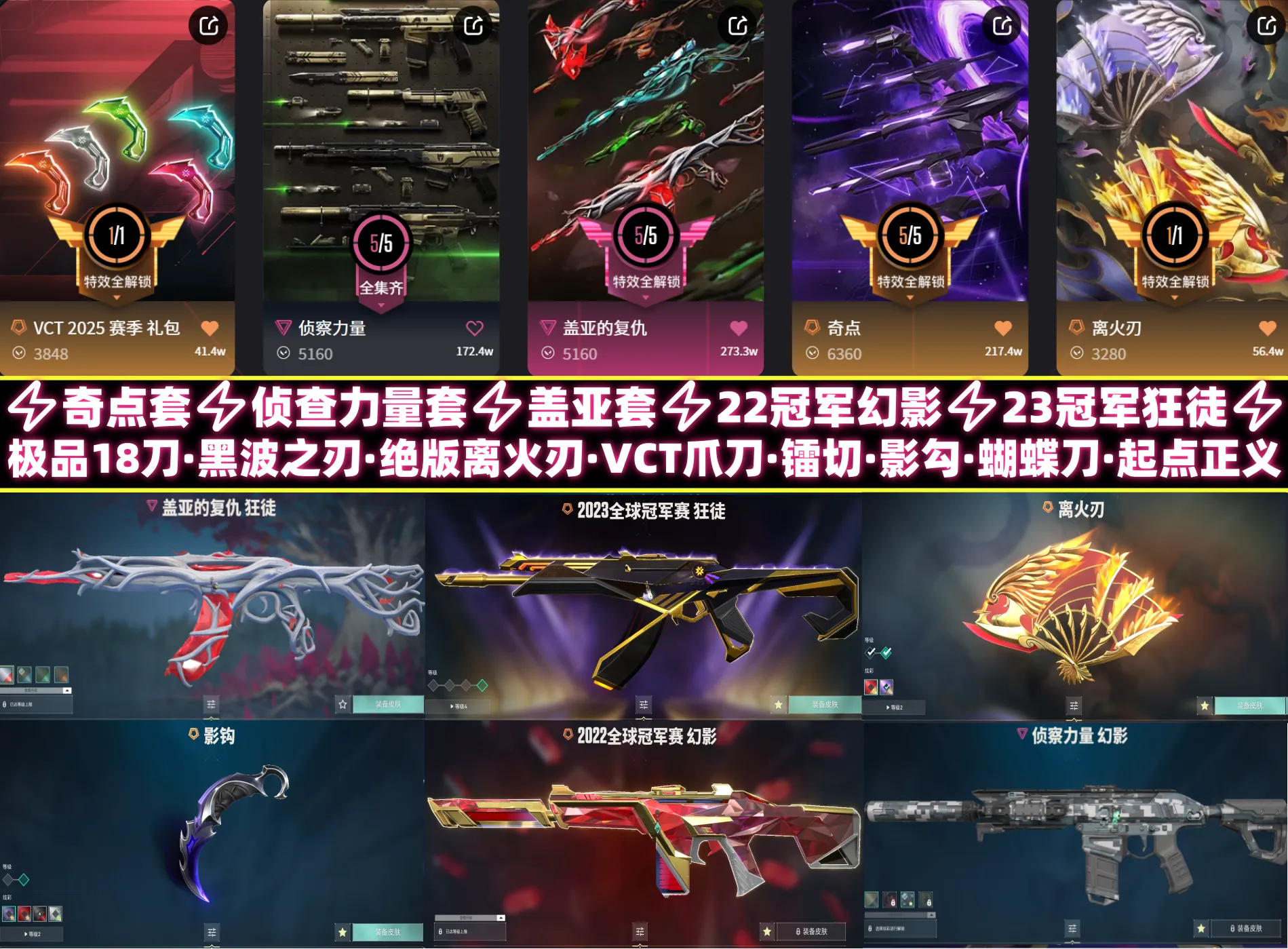 【当前段位:黄金II】极品神中神毕业皮齐全精氪⚡绝版离火刃⚡黑波之刃VCT爪刀⚡22冠军幻影23冠军AK⚡盖亚混沌起点正义