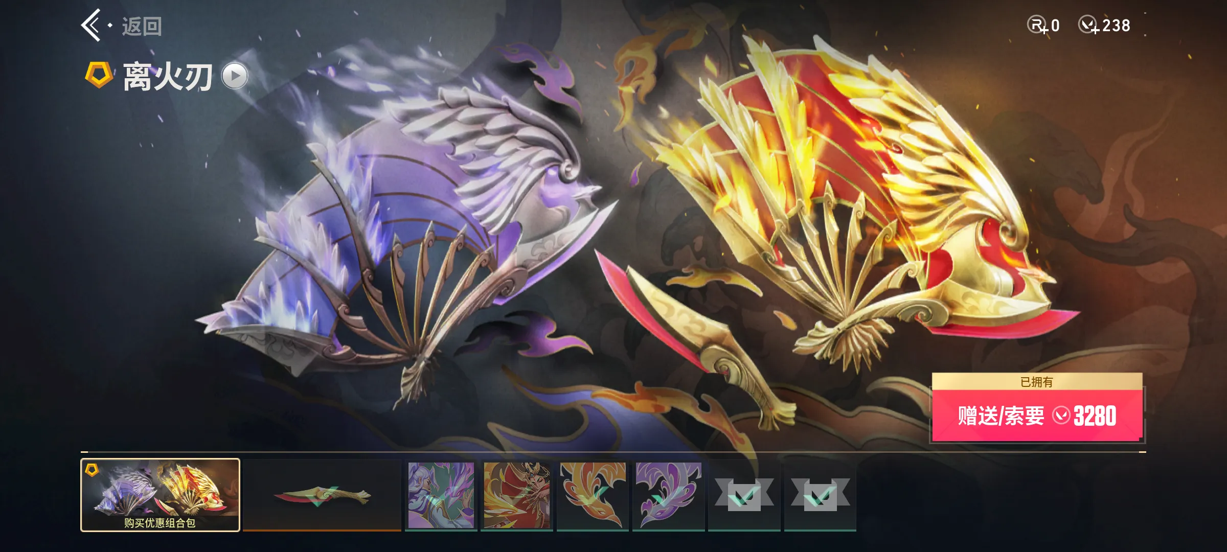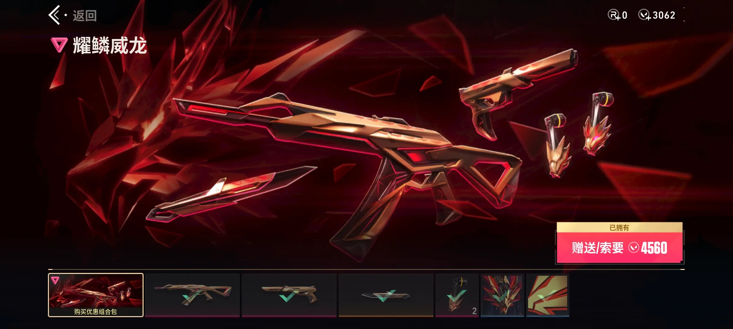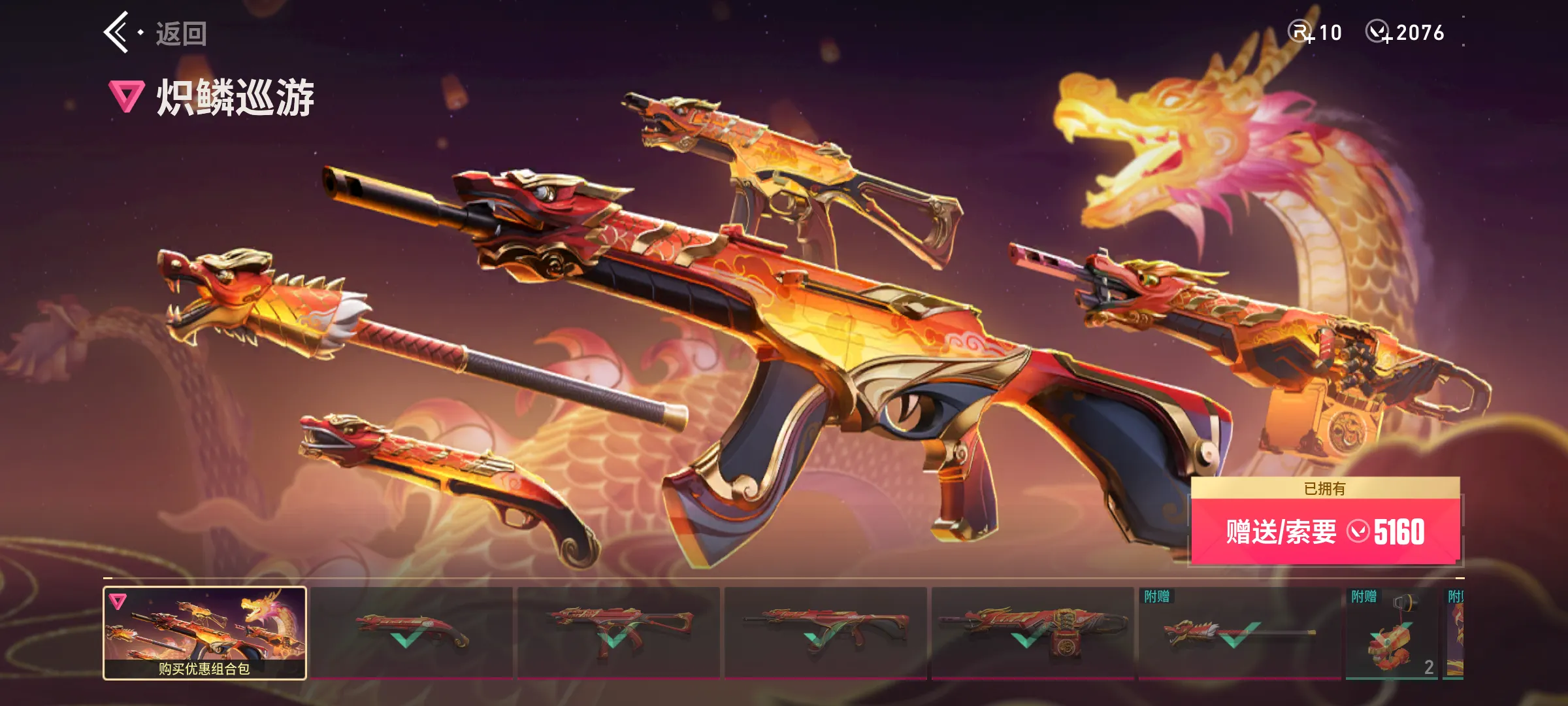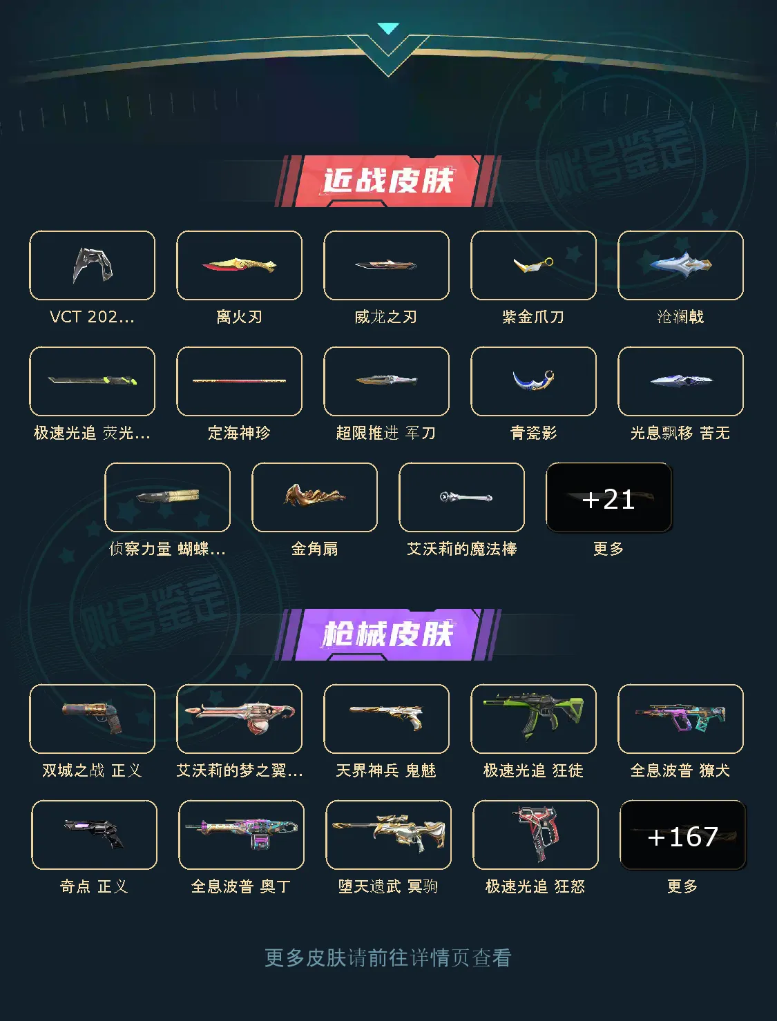 【传奇】炽鳞巡游,奇点,满级离火刃,满级赤影天骁骁投影,满级水晶誓言投影,全息波普2.0,满级光明哨兵,满级碰碰特攻队,满级极速追光,满级怒海惊澜,满级偃月苍龙,满级超限推进,满级VCT爪刀,满级全息波普,满级醒狮