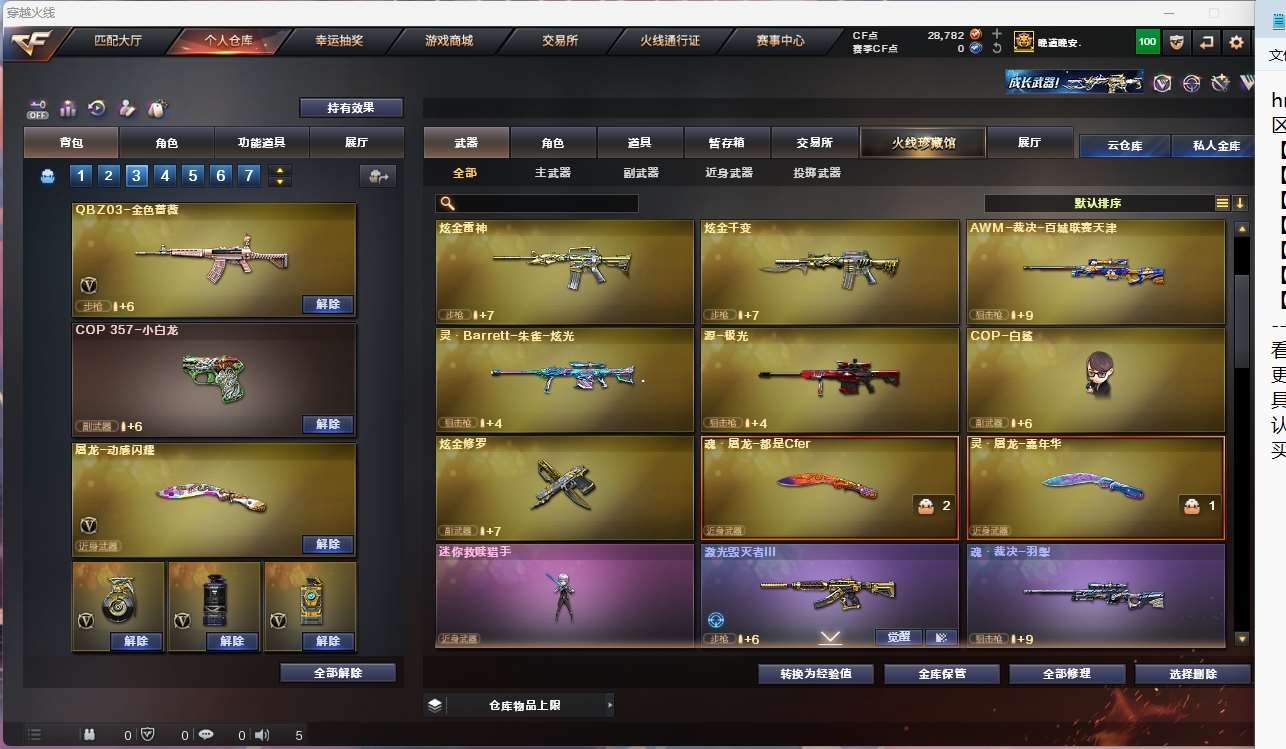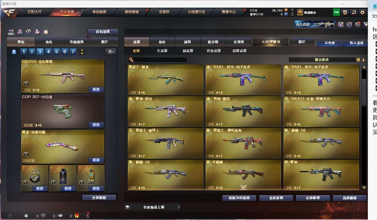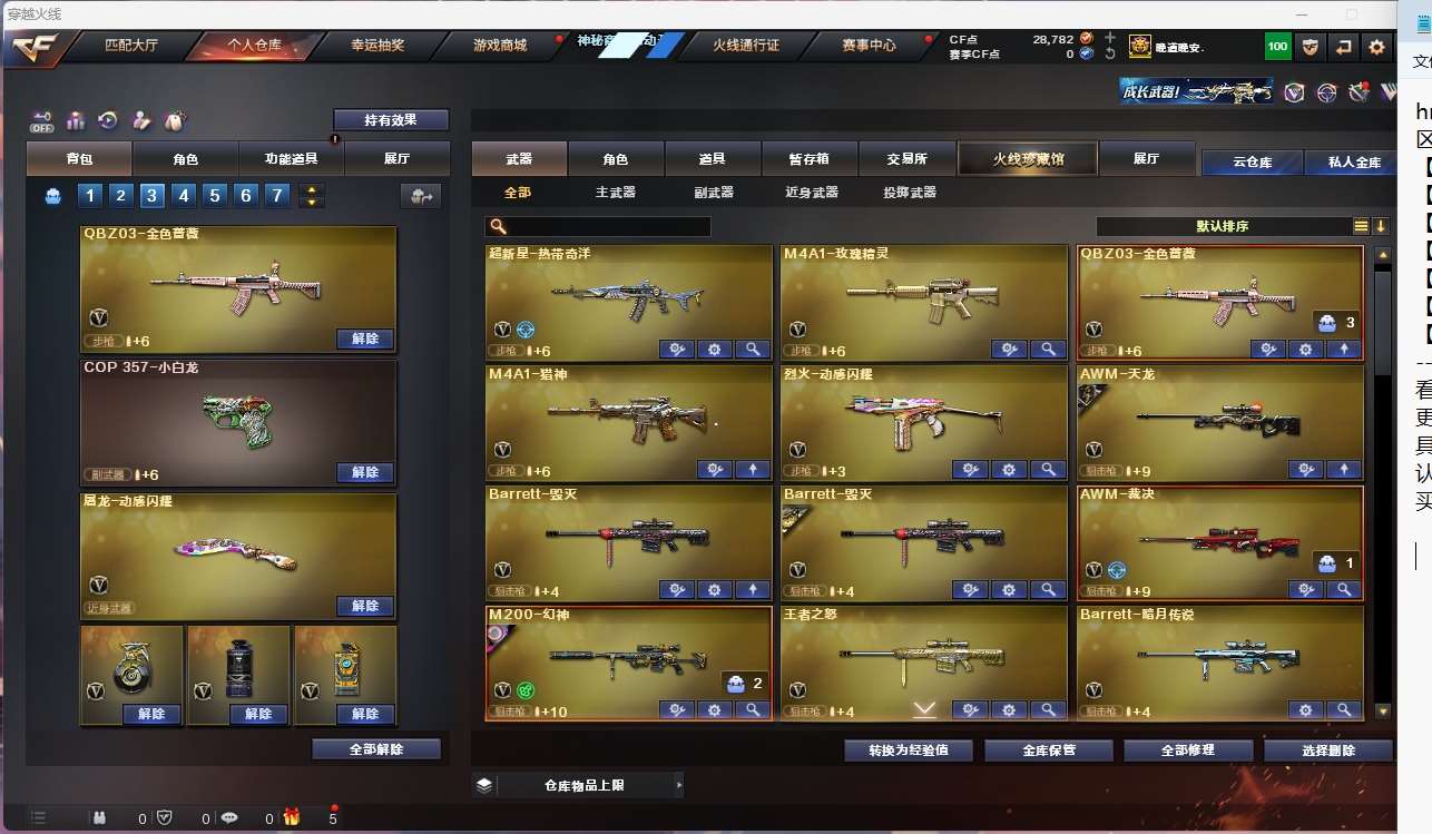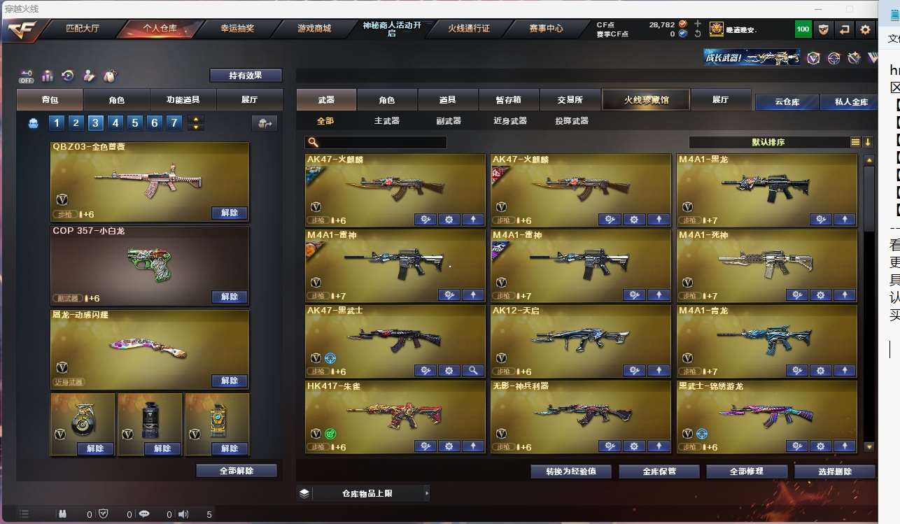 【亮点解析 幻神三件套 生化高配 】【m200幻神+音效卡+电流骇客+宠儿】【6烈龙 炼狱 斯太尔蝴蝶 】【qbz金色蔷薇】【hk417朱雀】【火麒麟】【黑龙】【雷神+白鲨冠军】【毁灭+卡+ag15冠军+sv16冠军】【裁决 】 【武器:黑武士 青龙 王者之怒 】 【4手呛:修罗 天神*2】 【9刀具:屠龙*3 龙啸 擎天 斩神刀雷暴 王者之击 】 【2雷套:雷暴雷 雷霆王者雷 】 【小人呛:cop白鲨】 【音效卡:幻神音效卡 毁灭音效卡 】 【角色:隼 王者迷迭香 】