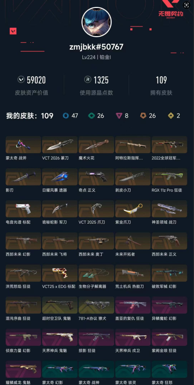 【当前段位:铂金I】可排位🔥26vct篆刀全炫彩🔥炸鱼勿租🔥6w库🔥显卡RGX狂徒🔥西部套🔥25VCT爪刀