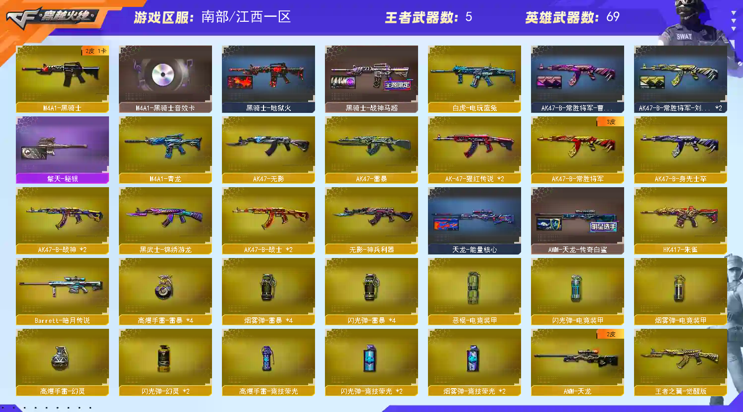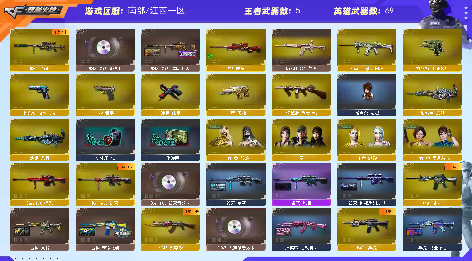 雷暴套 幻神黄忠+音效卡 5烈龙+蝴蝶 USP雷暴 柯尔特电竞装甲/竞技荣光 毁灭火麒麟黑骑士三件套 朱雀 白虎电玩蓝兔 QBZ 天龙白鲨 裁决 青龙 雷神荣耀之魄 王者之翼/击觉醒版 炫金雷神 蝴蝶刀 零/蛇姬/王者葵貂蝉/王者魅影/王者瞳闭月羞花/职业选手/铁骑荣耀/灵狐者黄金海岸