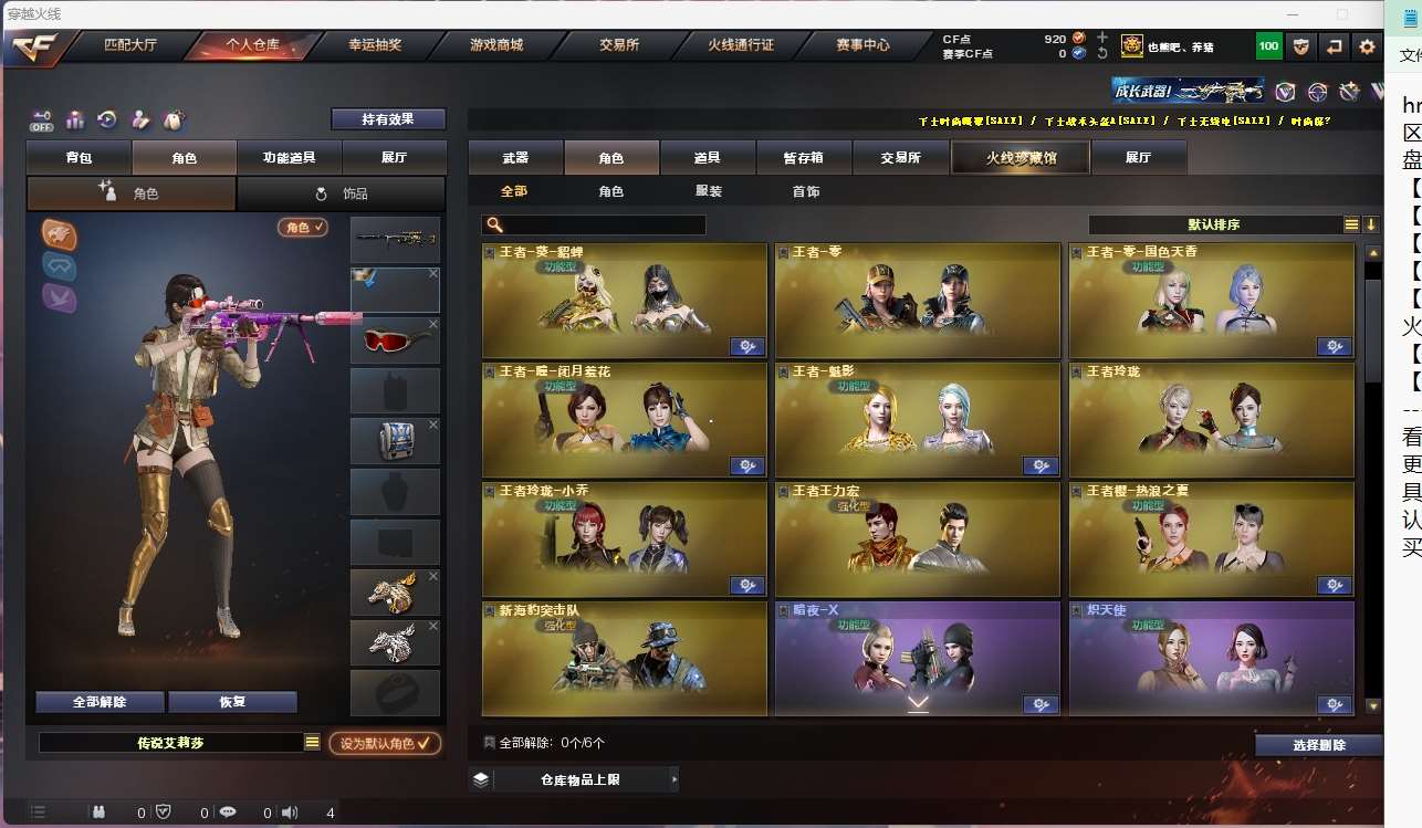 【亮点解析 传说角色 幻神三件套 冠军套 星神带卡 生化满配 绝版幻兽雷 】【四防传说艾莉莎 】【m200幻神+音效卡+宠儿皮肤+冠军之特*2+冠军之刃】【98k星神+音效卡】【m200竞技荣光+usp雷暴+四防云悠悠】【王者幻神 】【6烈龙 6盘龙 炼狱 炽芒蝶刃 斯太尔蝴蝶 6黑骑士】【传说光耀 传说夜影】【scar白虎】【qbz金色蔷薇+卡+冠军之薇】【hk417朱雀+武当】【火麒麟+卡+冠军之心 +even+荣耀世冠】【黑龙】【雷神+卡+白鲨冠军+冠军之魄+宠儿+荣耀之魄】【黑骑士+卡+冠军之势】【毁灭+卡+冠军之怒+ag15冠军+荣耀之怒+虎牙】【裁决】【堕天神套 夜魔套 雷暴套 】 【武器:武圣 雷暴 雷霆 青龙 堕天神 夜魔 王者之影 王者之魄 王者之势 王者之幻 王者之鲨 王者炎心 雷霆王者 荣耀世冠雷神 qbz王者蔷薇 白虎之魄 天龙 】 【24手呛:修罗*5 天神*3 武圣 雷霆 雷暴 堕天神*3 夜魔 幻灵 柯尔特竞技荣光 沙鹰幻兽 荣耀世冠柯尔特 雷霆王者*2】 【27刀具:屠龙*5 龙啸 擎天 麒麟刺 尼泊尔雷霆 斩神刀雷暴 夜魔 王者之锋 王者之啸*3 王者之击*4 女皇利刃幻兽 竞技荣光 王者之刺 雷霆王者之锋 】 【22雷套:幻兽雷 雷霆雷*7 堕天神雷*7 雷暴雷*7】 【小人呛:雷神精英刀锋 火麒麟绝迹 火麒麟灵狐 炼狱小刚 】 【音效卡:星神音效卡 毁灭音效卡 金色蔷薇音效卡 黑骑士音效卡 雷神音效卡 火麒麟音效卡 幻神音效卡 】 【四防角色:云悠悠 关小雨 王者春 王者葵貂蝉 王者零国色天香 王者魅影 王者玲珑小乔 兰梨园特工 零热舞青春 职业经理 】