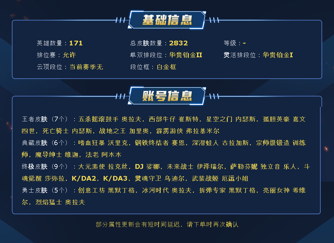 全英雄全皮肤1680原皮上千炫彩-艾欧尼亚铂金-不朽阿狸-133神话-77臻彩畅玩!!!