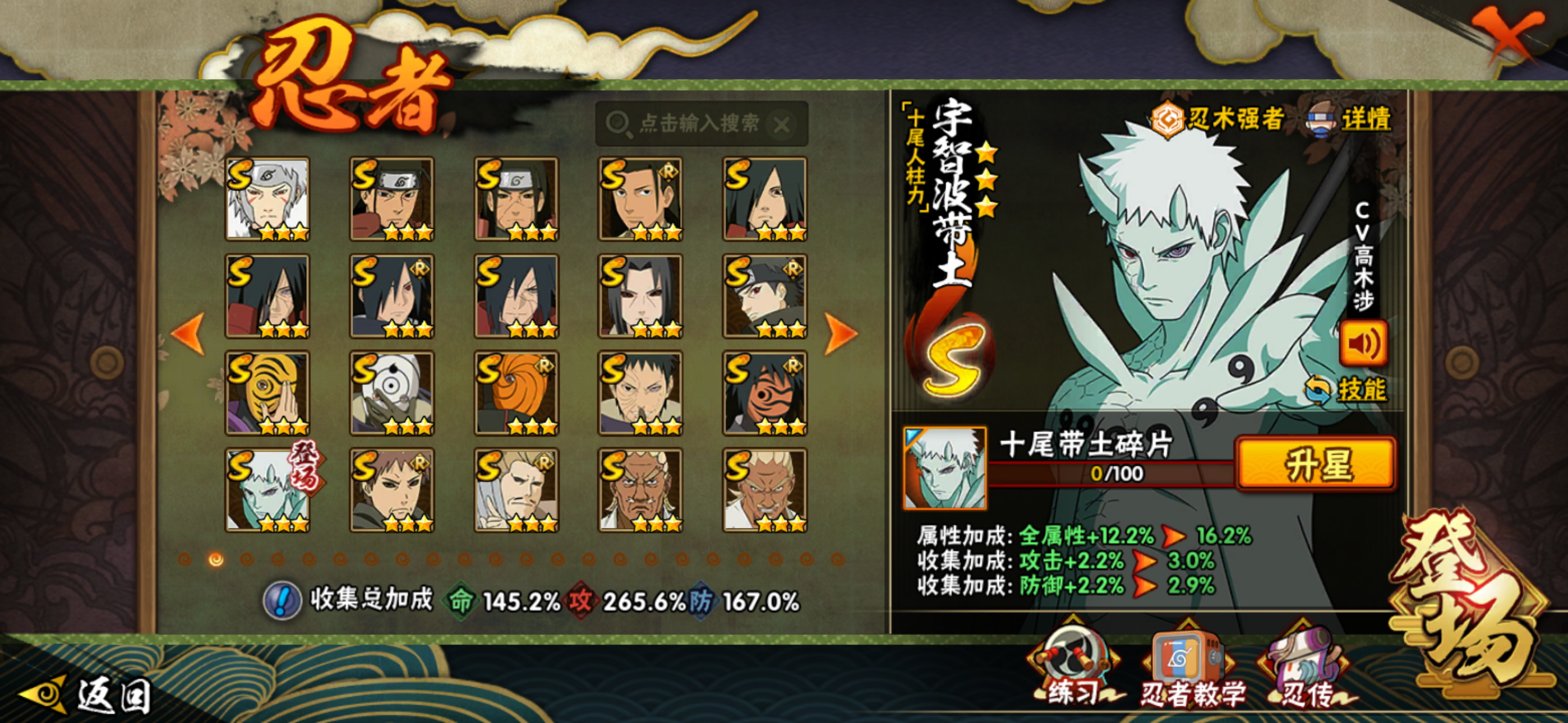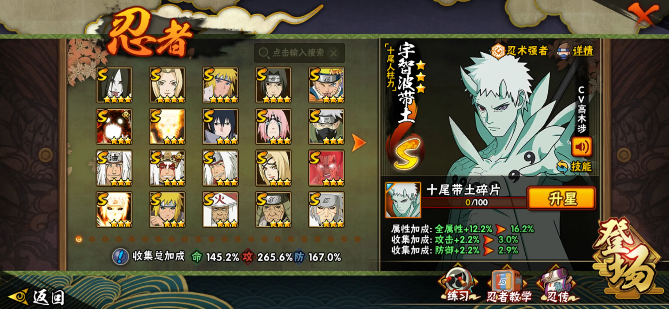 49S/58A/327个忍者/十尾带土六道带土/1600万战力/热门通灵/全秘卷/可排位宇智波斑「神驹佑将」