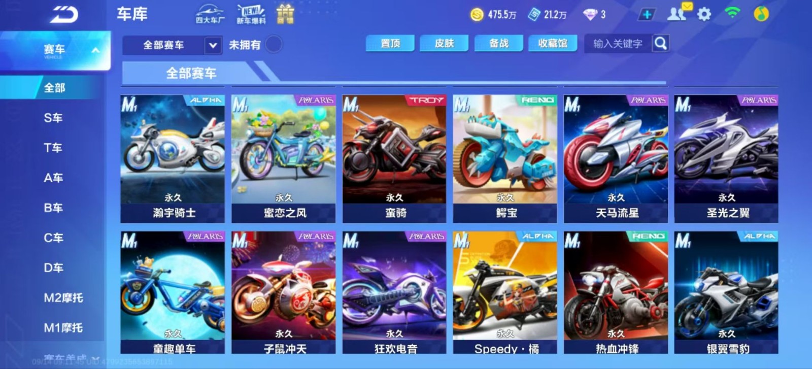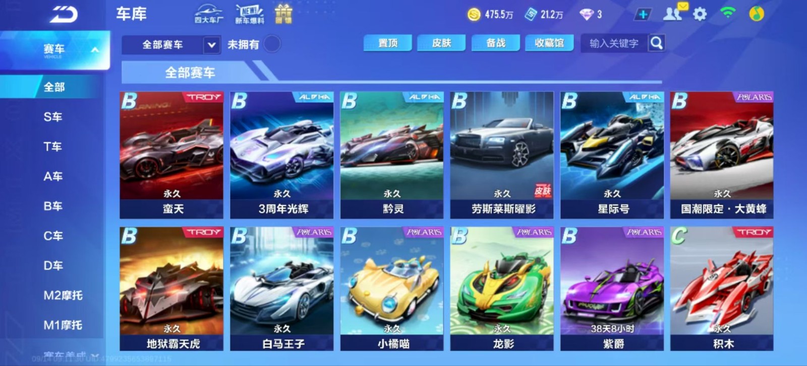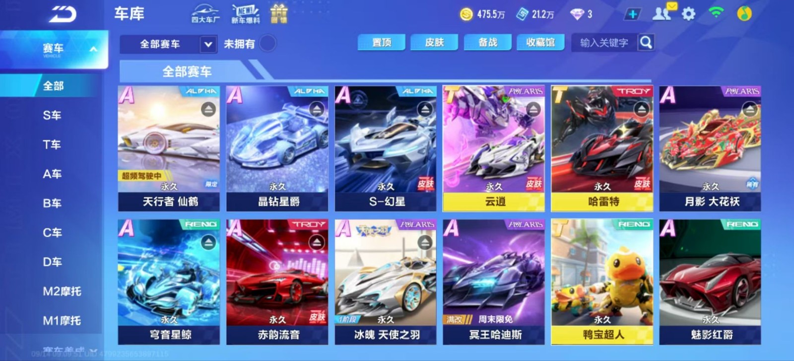 飞车手游账号出租,有天行者,冰魄,幻星,月影