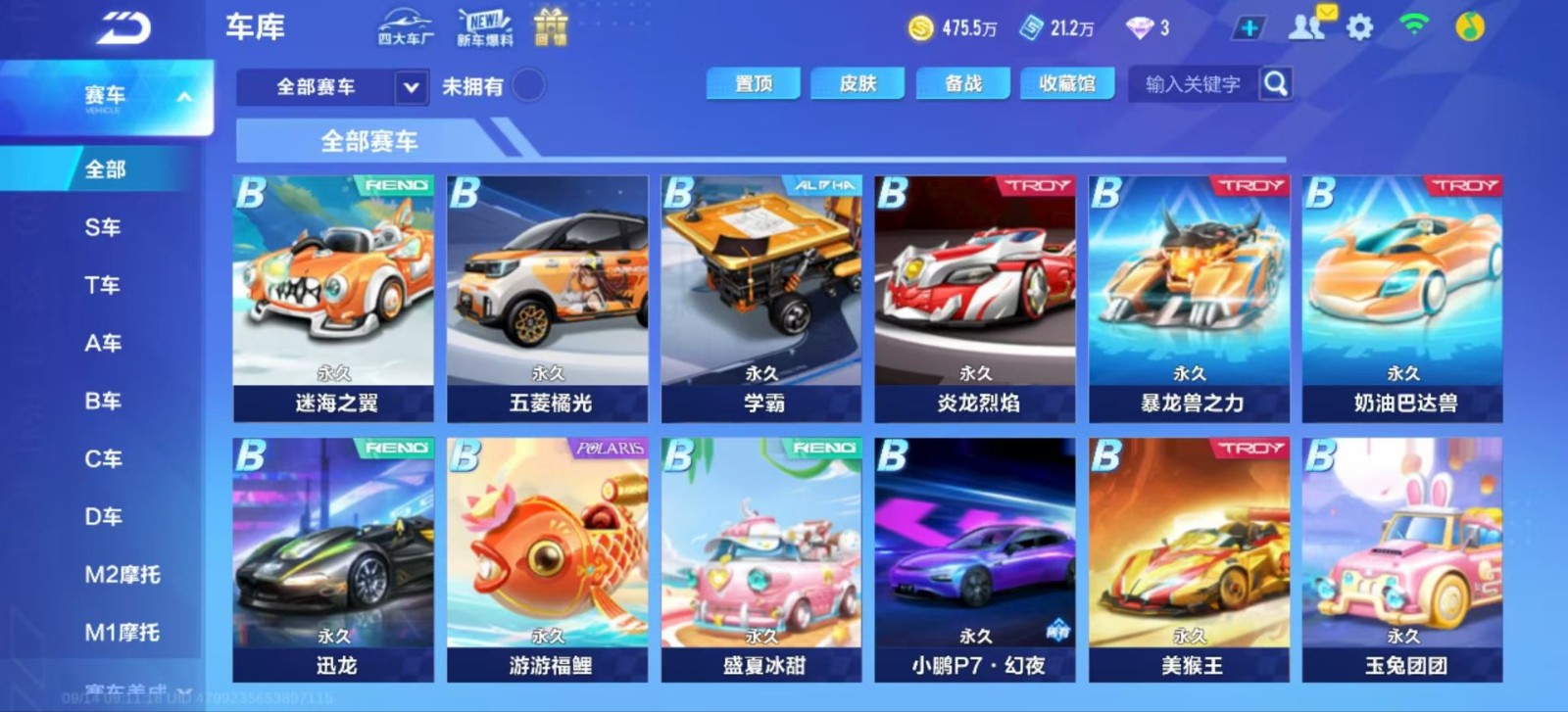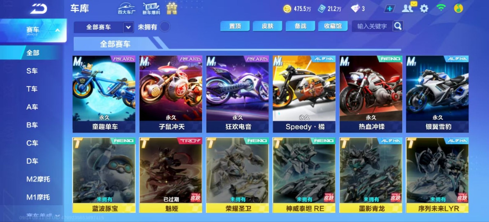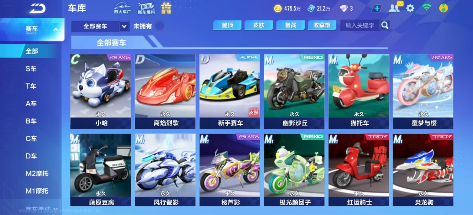 飞车手游账号出租,有天行者,冰魄,幻星,月影
