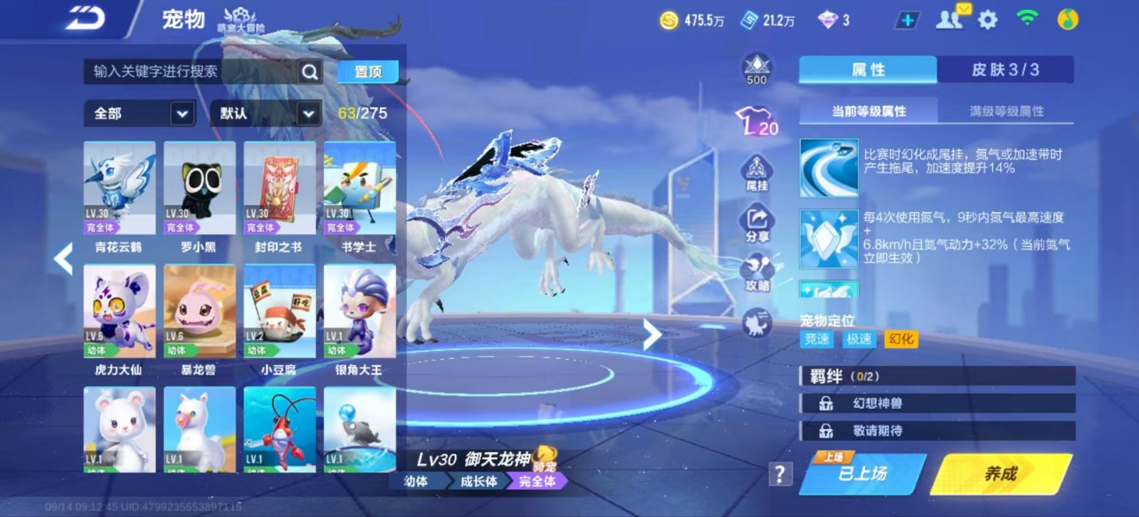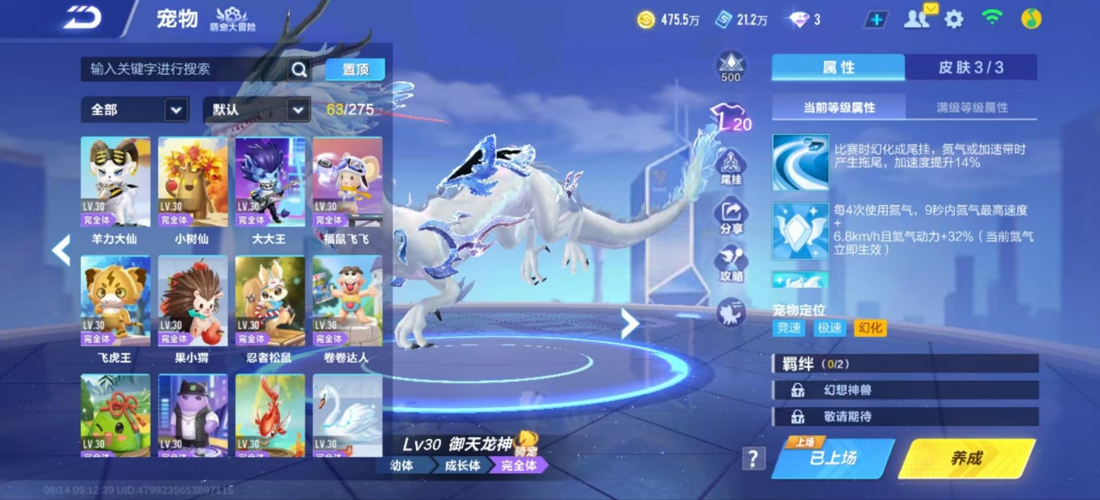 宠物有雀焰女王,源梦之星,女娲,玉玺神虎,还有神宠御天龙神可以参加排位赛,加好友,无禁言,禁止毁号,参与非法活动