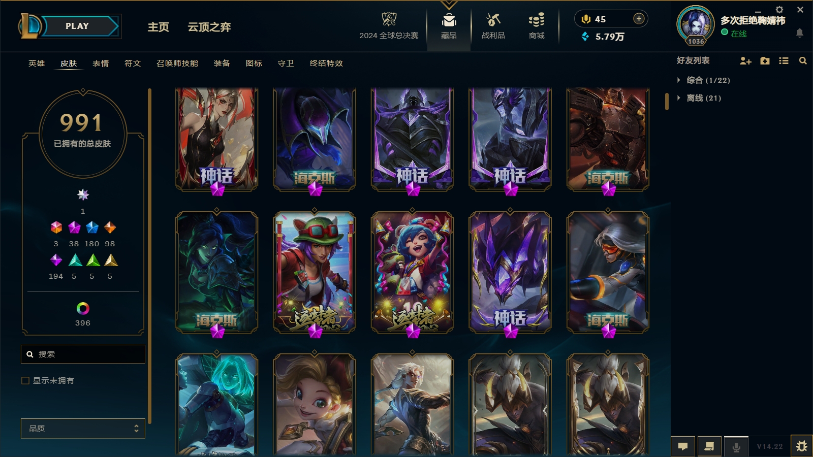- 神话皮肤数量: 38