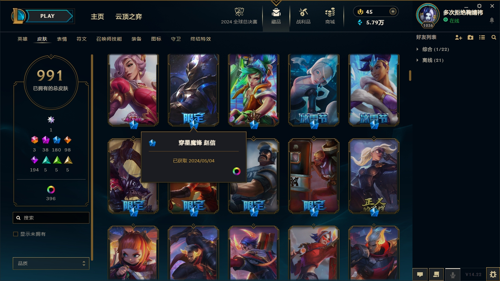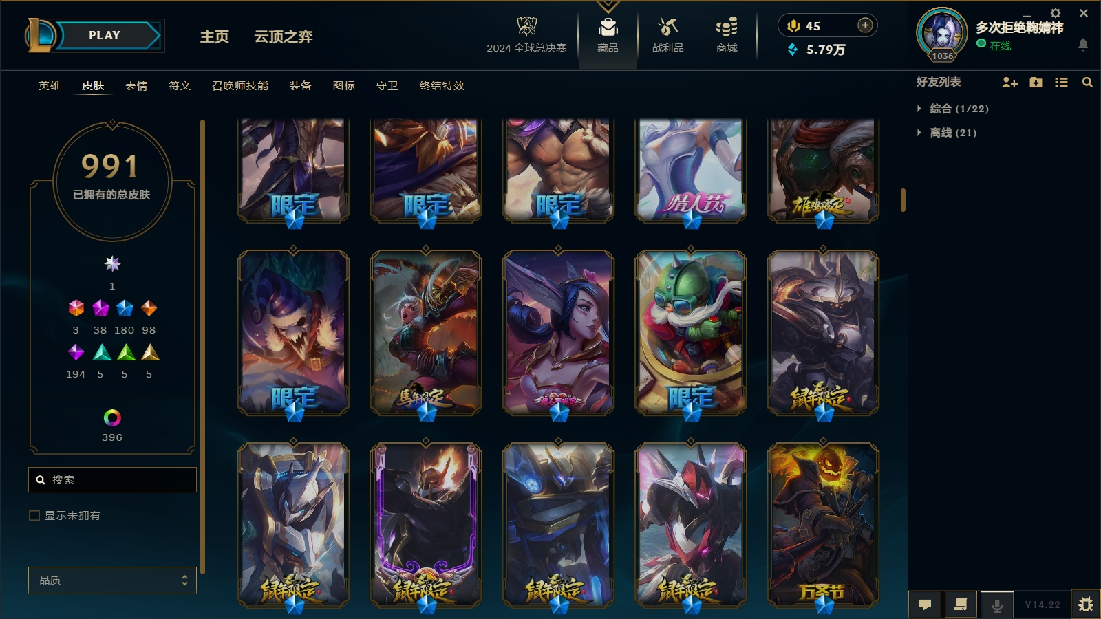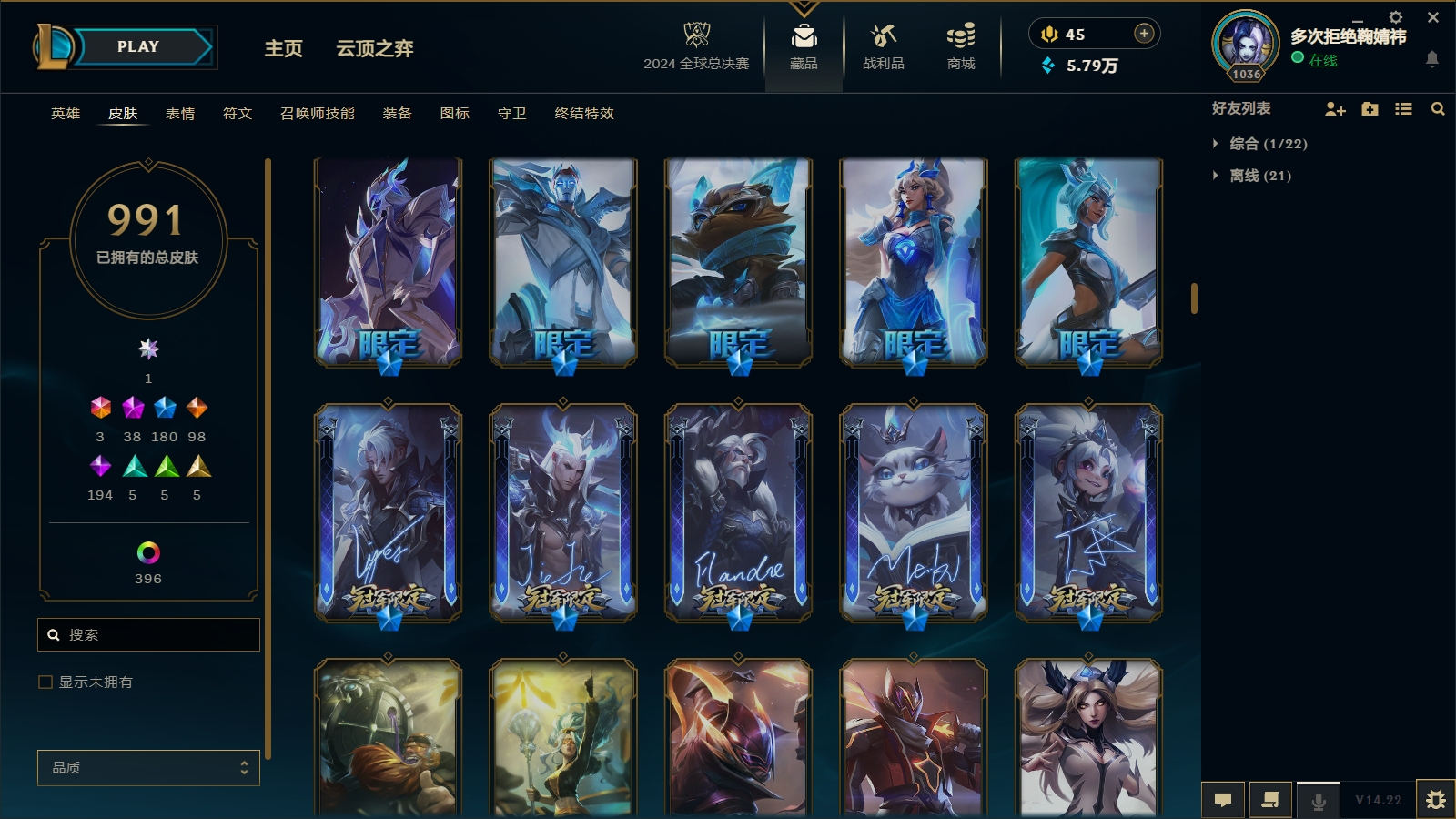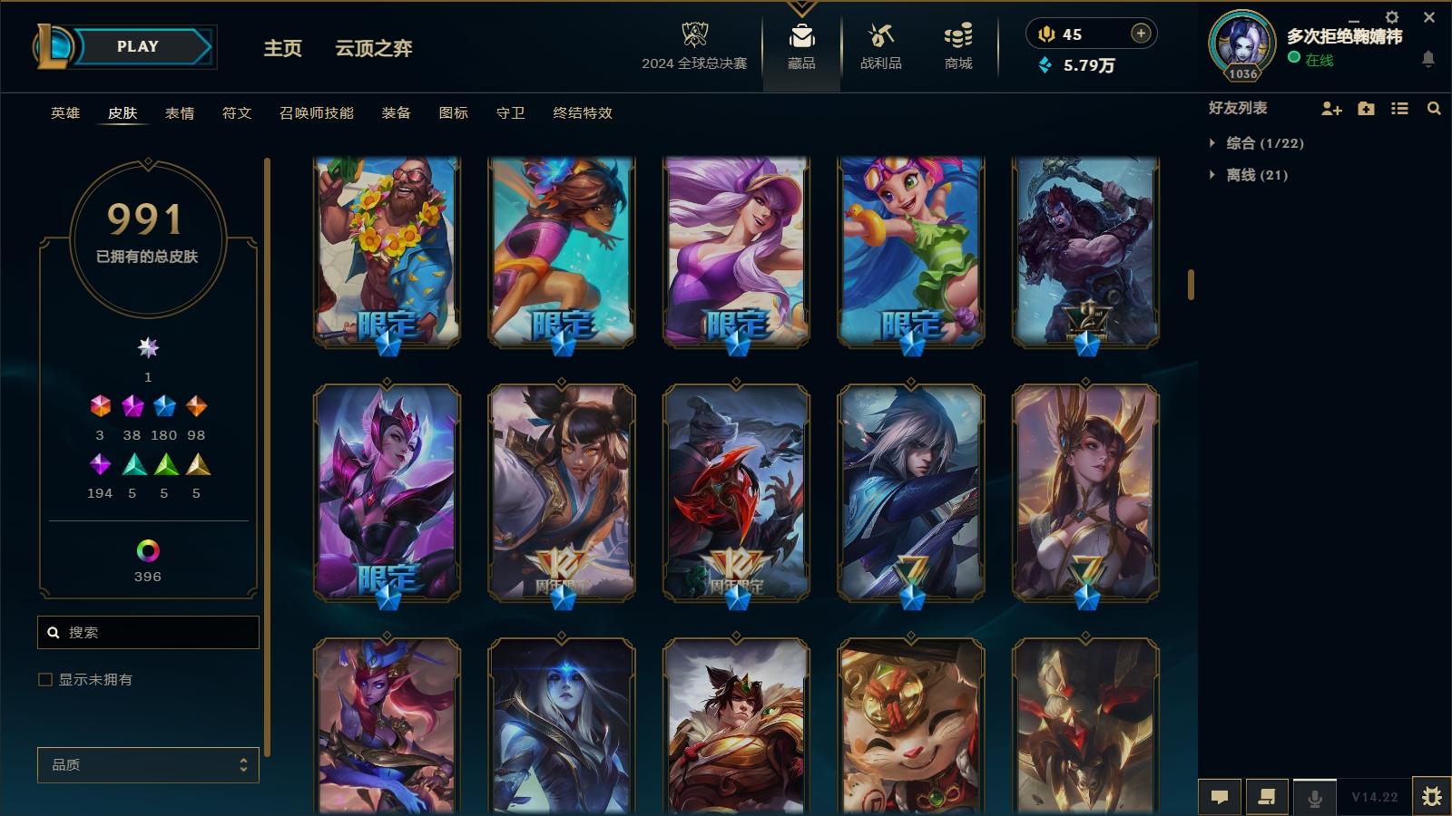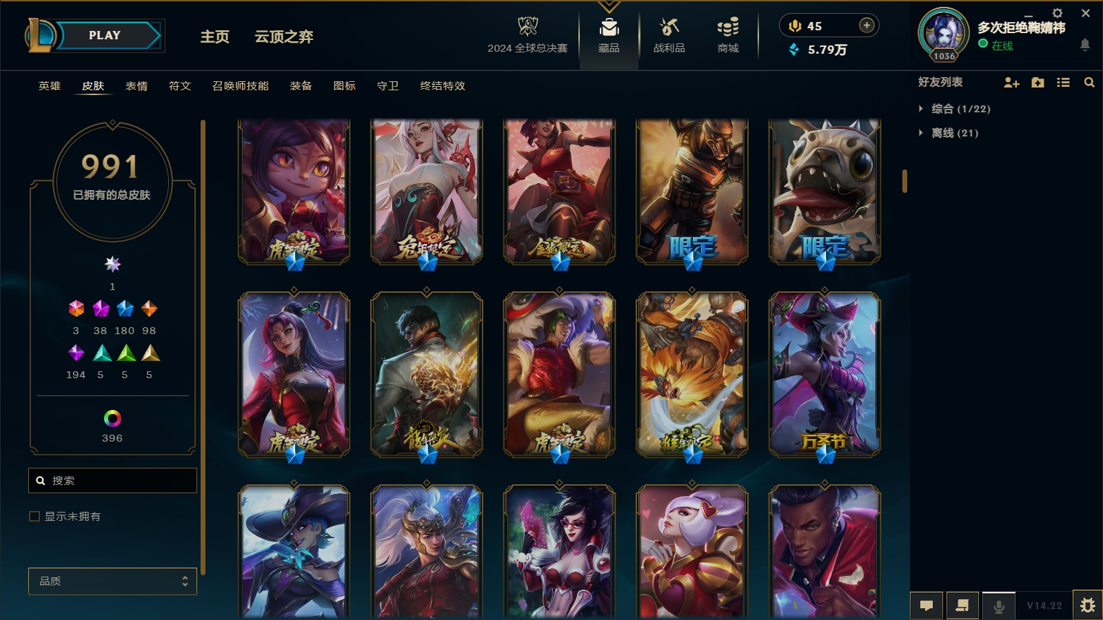 1566/总皮肤数量