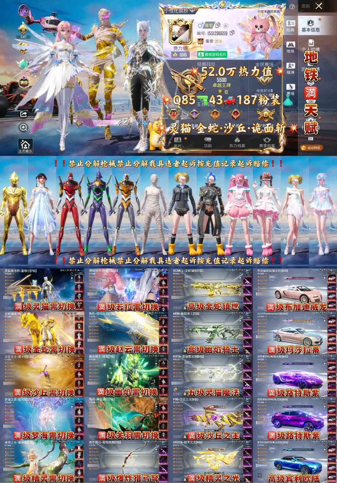 满级图卡盟 9红178粉85枪43车 5满级车 地铁满天赋 满级精灵之光