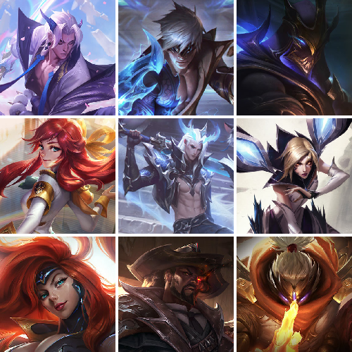 【重要皮肤】心之钢永恩至臻 魂蔷薇烈娜塔至臻 星之守护者辛德拉至臻 幻灵战斗猫金克丝至臻 神凰行者烈羽焰凰霞至臻 女帝黛安娜至臻 战斗学院蕾欧娜至臻 魔女婕拉至臻 魔女乐芙兰至臻 奥术师佐伊至臻 未来战士卢锡安至臻 真实伤害亚索至臻 真实伤害赛娜至臻 灵能特工伊泽瑞尔至臻 福牛守护者菲奥娜至臻 源计划逆流塞拉斯至臻 源计划阴劫至臻 王国机神玄武盖伦至臻 暗星墨菲特至臻 神龙尊者炎龙瑟提至臻 黑夜使者凯隐至臻 征服者贾克斯至臻 焰执事布兰德至臻 KDA二代卡莎至臻 KDA一代卡莎至臻 KDA卡莎2022至臻 KDA阿狸至臻 战斗学院拉克丝至臻 烈焰美人薇恩至臻 烈焰美人薇恩2022至臻 魅惑女巫厄运小姐至臻 星之守护者妮蔻至臻 源计划正义艾瑞莉娅至臻 源计划正义艾瑞莉娅2022至臻 真实伤害奇亚娜至臻 真实伤害奇亚娜2022至臻 绒毛菲兹至臻 绒毛菲兹2022至臻 玉剑传说武剑仙至臻 玉剑传说武剑仙2022至臻 腥红之月亚托克斯至臻 腥红之月亚托克斯2022至臻 未来战士锤石至臻 未来战士锤石2022至臻 黑夜使者李青至臻 黑夜使者李青2022至臻 灰烬骑士派克 海克斯科技雷克顿 海克斯科技斯维因 海克斯科技吉格斯 海克斯科技波比 海克斯科技魔腾 恐惧新星德莱厄斯 摄魂使者薇恩 胜利剑圣易 胜利女神娑娜 胜利之王泰达米尔 胜利巨口克格莫 哥特萝莉安妮 荣誉使者玛尔扎哈 养蜂人辛吉德 勇敢的心德莱厄斯 电玩勇者锐雯 银龙裁决泰隆 替父从军花木兰 碧玉之牙卡西奥佩娅 你看见过我的熊猫吗安妮 北辰之威内瑟斯 美猴王孙悟空 王国机神苍狼瑟提 王国机神白虎贾克斯 福牛守护者安妮 福牛守护者厄斐琉斯 福牛守护者德莱厄斯 福牛守护者阿利斯塔 福牛守护者嘉文四世 福牛守护者菲奥娜 胜利女神瑟庄妮 胜利女神奥莉安娜 胜利枪神格雷福斯 胜利枪神卢锡安 胜利之剑亚托克斯 甜心之羽霞 觅心游侠卢锡安 觅心萝莉金克丝 觅心猫猫悠米 觅心猎手薇恩 幽梦玫瑰辛德拉 幽梦玫瑰泰隆 水晶玫瑰婕拉 水晶玫瑰斯维因 北极星神黛安娜 圣诞老人布隆 魄罗骑士瑟庄妮 平安夜女神娑娜 圣诞糖果棒厄运小姐 魅惑女巫崔丝塔娜 魅惑女巫奈德丽 伯爵卡萨丁 死亡誓约卡特琳娜 勇敢的心德莱厄斯 泳池派对佐伊 泳池派对厄运小姐 泳池派对格雷福斯 泳池派对雷克顿 送披萨的小姐姐希维尔 EDG厄斐琉斯 EDG佛耶戈 EDG格雷福斯 EDG悠米 EDG佐伊 DWG烬 FPX锤石 FPX薇恩 FPX李青 FPX普朗克 FPX墨菲特 iG卡蜜尔 iG卡莎 SSG纳尔 SSG塔莉垭 SSG伊泽瑞尔 SKTT1艾克 SKTT1奥拉夫 SKTT1瑞兹 SKTT1雷克顿 SSW图奇 SSW辛吉德 暗杀星伊泽瑞尔 暗杀星慎 Fnatic迦娜 Fnatic库奇 Fnatic古拉加斯 防暴机器人布里茨 防暴士兵辛吉德 防暴天使凯尔 冠军之刃锐雯 冠军之刃锐雯2016 冠军之志瑞兹 鬼影森森茂凯 鬼影重重魔腾 红桃杰克崔斯特 惊悚派对阿木木 蓝色忧郁崔斯特 蒙多蒙多 南瓜头费德提克 女猎手希维尔 圣诞精灵崔丝塔娜 圣诞狂欢基兰 圣诞老人古拉加斯 圣诞玩偶波比 喜庆之树茂凯 邪恶圣诞老人维迦 幸福女神乐芙兰 雪默丁格 征服者韦鲁斯 暗影沃里克 波比的巧克力工坊 都铎王朝图奇 十五周年纪念希维尔 十周年纪念安妮 源代码乐芙兰 神凰行者瑞羽圣凰艾尼维亚 胜利凤凰艾尼维亚 绝息圣堂洛