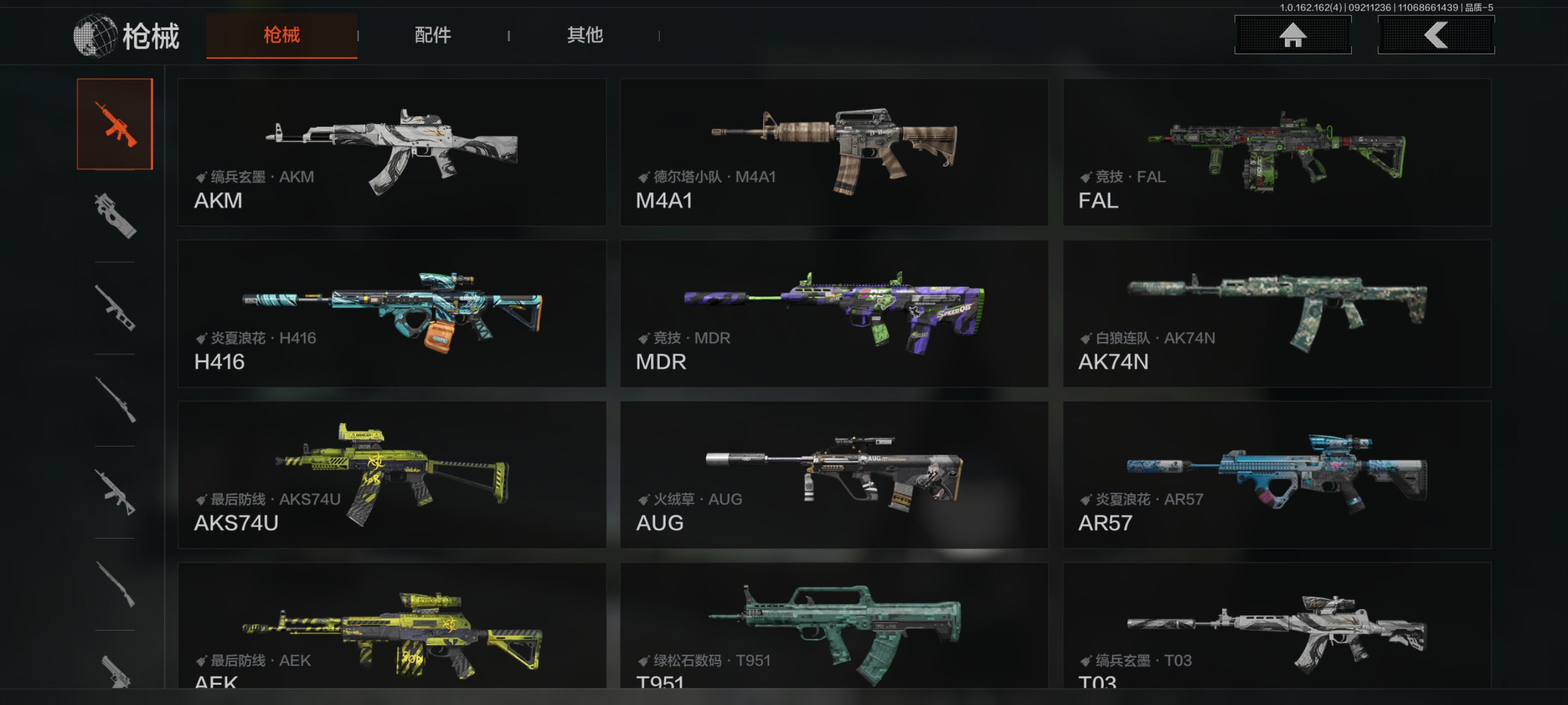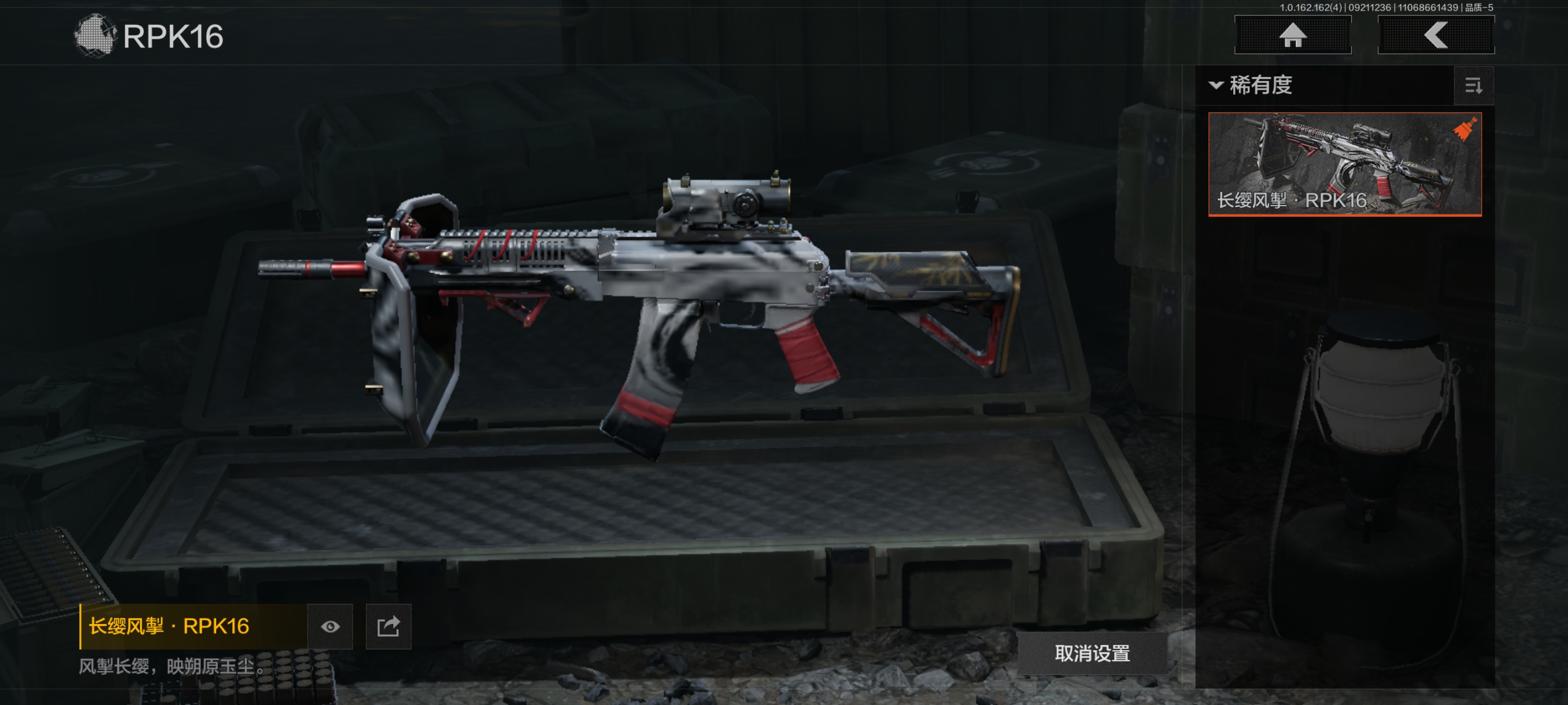 30级,历史最高段位:暗区传说【近战武器】:三尺万仞战术剑,工兵铲;【手套】:玉鸾挂枝手套,角弓得控手套;【角色皮肤】:绕指玉鸾战术甲胄,林中人特遣作战服,都市夜影套装,森林守望特种服,林地作战服;【突击步枪】:缟兵玄墨AKM,德尔塔小队M4A1,竞技FAL,林中人FAL,秋宴FAL,炎夏浪花H416,竞技MDR,白狼连队AK74N,最后防线AKS74U,火绒草AUG,炎夏浪花AR57,电动工具AR57,涂绘猎人AR57,最后防线AEK,青瓷涂层T951,绿松石数码T951,玄戈梨花T03,缟兵玄墨T03,鱼跃丹青MCX,07式林地迷彩QBZ191,危险地带QBZ191;【冲锋枪】:峰MP5,森林迷彩MP5,湖冰倒影MP5,玄戈梨花MPX,缟兵玄墨MPX,沙色Vector45,竞技Vector9,危险地带Suomi,青瓷涂层MP5K;【射手步枪】:飞鲨SVDS,玄戈梨花VSS,白狼连队VSS,缟兵玄墨VSS,全地形数码M110,玄戈梨花码M110,缟兵玄墨M110,鱼跃丹青M110,危险地带T88,绿松石数码QBU191,鱼跃丹青QBU191;【栓动步枪】长缨风掣AX50,数码猎人M24;【轻机枪】:长缨风掣RPK16,狂怒荣耀RPK16;【霰弹枪】:胜利S12K,无畏USAS12,营房暖冬USAS12,雪地数码USAS12;【手枪】:碳黑M9A3,青瓷涂层T05,水蓝F57手枪,白貂F57,碳黑M300;