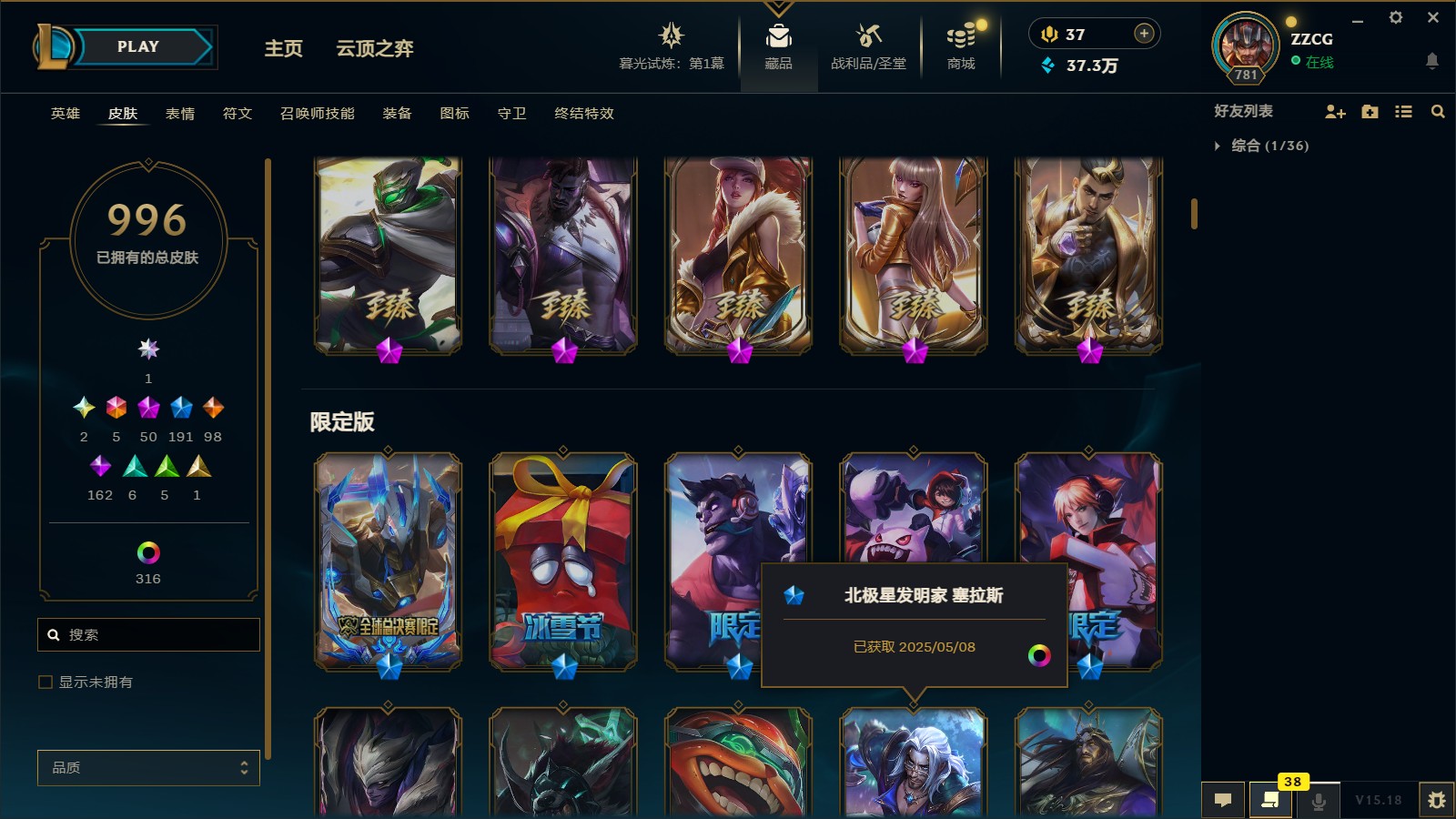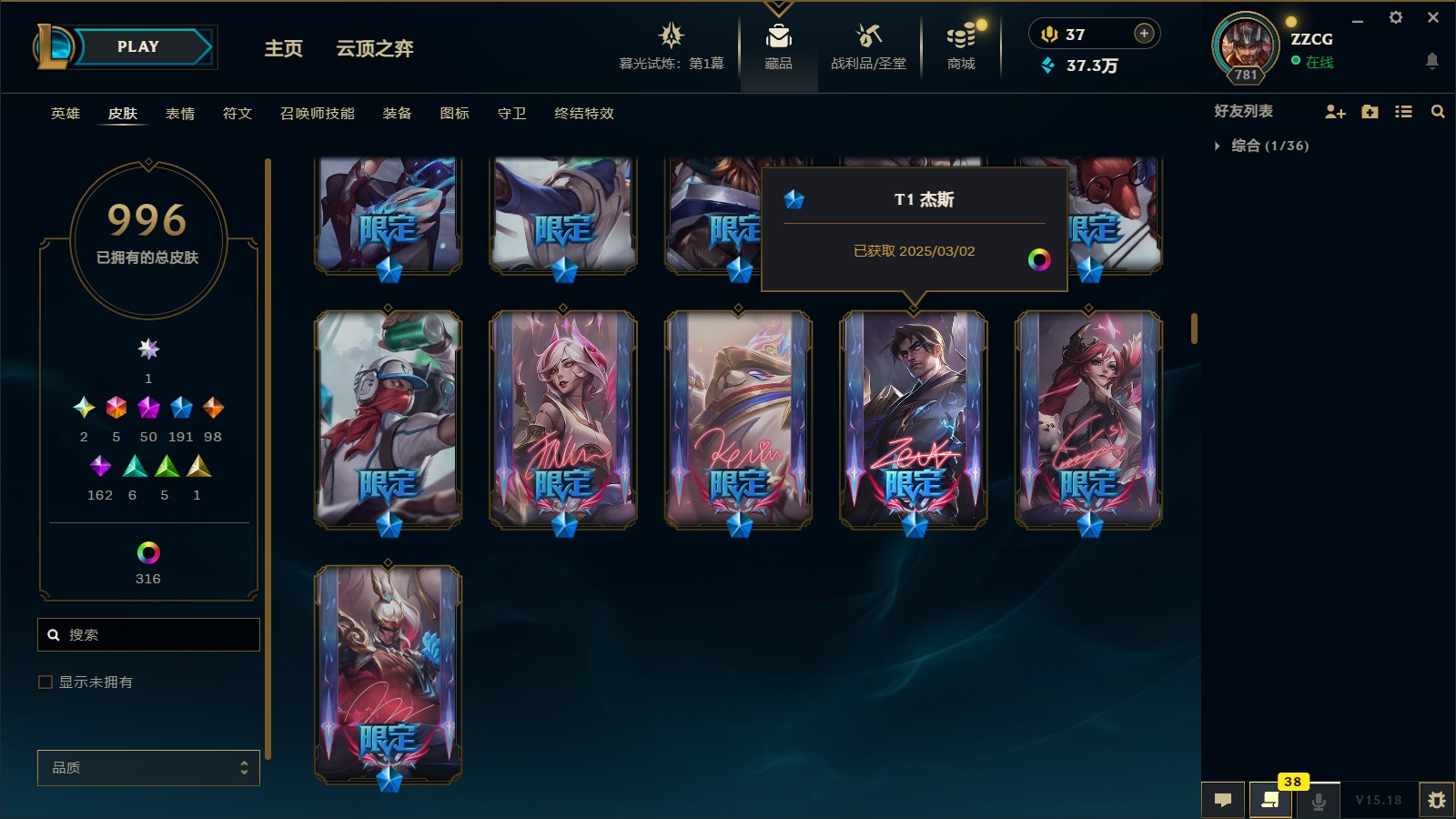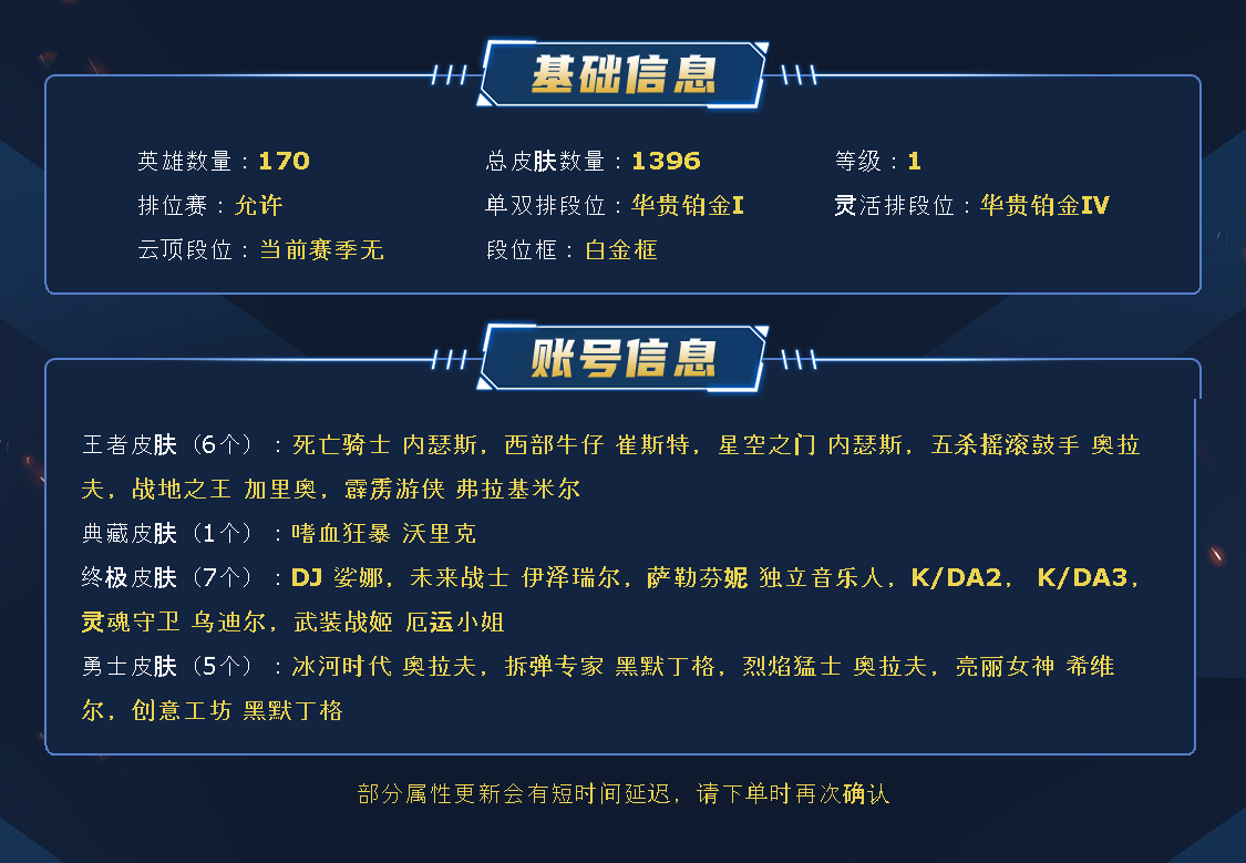 1396皮丨4氪金皮 圣堂铁男 金克斯丨神话幻想诺手 盖伦丨23年SKT签名套丨双城2套丨殿堂狐狸