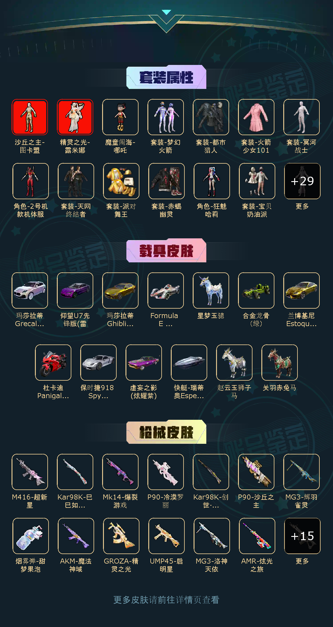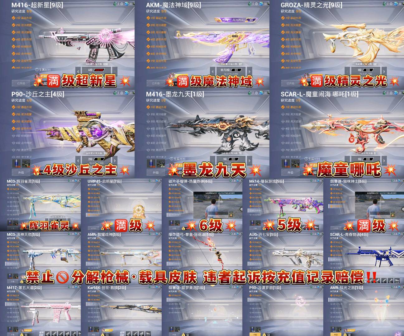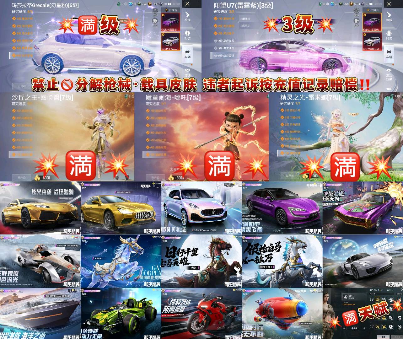 100粉,100载具,100特效枪,400套装,30王牌印记 UZI-绮梦青鸾/AKM-甜心宝贝/DP-28-扶摇飞仙/SCAR-L-梦幻火箭/SCAR-L-童趣迷兔/Kar98K-伏魔团/SKS-碧影闪光/M416-风花雪月/AUG-星之彼岸/SCAR-L-甜梦小狐/AWM-花间之火/M762-甜心娃娃/汤姆逊-怪笑疯兔/AWM-焰龙焚天/Vector-红伞翩翩/SKS-诡面斩/MG3-炙焰牛王/M762-激战未来/GROZA-香水柠檬/AWM-橘柚倾心/M416-心之恋语/平底锅-林间仙鹿/M16A4-葫芦兄弟/Mini14-荧光虫舞/M416-五爪金龙/M24-暗星紫秘/DP-28-枪炮玫瑰/DP-28-幻梦音符/AKM-炫紫旋律/Mini14-绚金瑰梦/MG3-洛神天依/GROZA-焦糖拿铁/SCAR-L-青春物语/M249-古战神甲/M762-冷魅冰骑/AKM-百合蜜语/UZI-筑梦精灵/SLR-暗夜玫瑰/S12K-海渊国主/VSS-烈焰拳霸/Kar98K-暗翼战神/UMP45-雪国精灵/M762-甜蜜誓约/UMP45-相思残雪/SCAR-L-机甲封神/M24-星之信仰/UMP45-恐龙拽拽/Mini14-龙虾霸霸/M249-蓝莓炮弹/野牛-流星咚咚/AKM-梦之光华/Kar98K-绿意幻情/路特斯EVIJA(星际黄)/兰博基尼Aventador(翡翠绿)/玛莎拉蒂Ghibli(金)/萌喵橘座/双人摩托-双刃魅影(绿)/阿斯顿·马丁DBX(橙)/特斯拉Model X(珍珠白)/俏皮小熊猫/路特斯ELETRE(冰川蓝)/兰博基尼URUS(炫光金)/特斯拉Roadster(尊享铂)/快艇-自由的鲸/海龙奔腾/特斯拉Roadster(沁心粉)/特斯拉Model 3(珍珠白)/玛莎拉蒂Ghibli(蓝)/阿斯顿·马丁DBS(红)/双人摩托-梦幻火箭/兰博基尼URUS(尊享铂)/特斯拉Model X(奇幻紫)/特斯拉Cybertruck(极昼黑)/特斯拉Cybertruck(荒芜蓝)/兰博基尼Estoque(炫光金)/金龙耀世/快艇-塞莎KL27(深潜蓝)/焰龙咆哮/兰博基尼URUS(明艳黄)/快艇-塞莎KL27(霓虹粉)/特斯拉Cybertruck(镭光铂)/双人摩托-双刃魅影(红)/兰博基尼Estoque(银翼灰)/双人摩托-双刃魅影(金)/合金龙骨(蓝)/灵鼠银迹/阿斯顿·马丁DBS(绿)/阿斯顿·马丁DBX(金)/特斯拉Model 3(奇幻紫)/特斯拉Model 3(冷光银)/合金龙骨(绿)/特斯拉Roadster(水滴蓝)/阿斯顿·马丁DBS(金)/路特斯ELETRE(花绽灰)/极速兔兔/鬼马风驰/南瓜骑士/合金龙骨(红)/兰博基尼Estoque(尊享铂)/玛莎拉蒂Ghibli(粉)/兰博基尼SVJ(尊享铂)/兰博基尼SVJ(炫光金)/软萌羊咩咩/快艇-塞莎KL27(鲸之蓝)/阿斯顿·马丁DBX(蓝)/特斯拉Model X(冷光银)