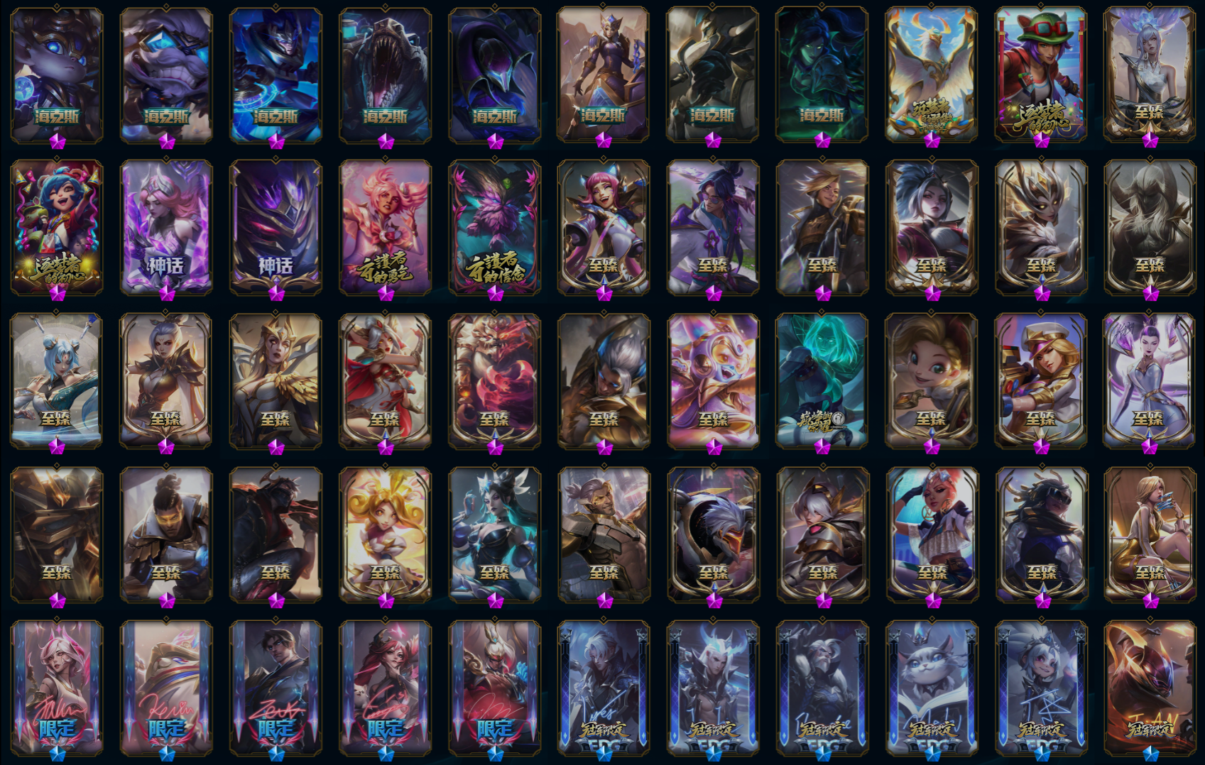 【重要皮肤】魔女阿卡丽至臻 玉剑传说琴仙子至臻 灵魂莲华易至臻 海珀利安小队X09星环灵风迦娜至臻 星之守护者辛德拉至臻 西部魔影猎天使恶魔泰隆至臻 幻灵战斗猫金克丝至臻 神凰行者烈羽焰凰霞至臻 太空律动璐璐至臻 魔女婕拉至臻 魔女乐芙兰至臻 奥术师佐伊至臻 未来战士卢锡安至臻 真实伤害赛娜至臻 灵能特工伊泽瑞尔至臻 源计划逆流塞拉斯至臻 源计划阴劫至臻 王国机神玄武盖伦至臻 神龙尊者炎龙瑟提至臻 神龙尊者均衡之龙沃利贝尔至臻 KDA二代卡莎至臻 KDA伊芙琳至臻 KDA伊芙琳2022至臻 电玩女神凯特琳至臻 电玩女神凯特琳2022至臻 星之守护者妮蔻至臻 源计划正义艾瑞莉娅至臻 真实伤害奇亚娜至臻 玉剑传说武剑仙至臻 玉剑传说武剑仙2022至臻 腥红之月亚托克斯至臻 腥红之月亚托克斯2022至臻 海克斯科技瑟庄妮 海克斯科技雷克顿 海克斯科技吉格斯 海克斯科技波比 海克斯科技嘉文四世 海克斯科技魔腾 水晶泰坦诺提勒斯 水晶圣骑蕾欧娜 星之守护者塔莉垭 永恒之森奥恩 零之枪骑赫卡里姆 摄魂使者薇恩 胜利剑圣易 胜利巨口克格莫 养蜂人辛吉德 电玩勇者锐雯 电玩女神阿狸 星之守护者伊泽瑞尔 玉剑传说无影 玉剑传说舞剑仙 海珀利安小队Y03权天使卡蜜尔 玉剑传说神机花火 玉剑传说无劫 玉剑传说舞龙卫 龙的传人李青 天龙之子斯莫德 烈焰仙子黛安娜 替父从军花木兰 神龙烈焰金克丝 你看见过我的熊猫吗安妮 北辰之威内瑟斯 南天之怒沃里克 美猴王孙悟空 玉净夜叉凯特琳 张辽文远 烈焰美人薇恩 纳财大帝塔姆 神龙之翼库奇 王国机神青龙德莱文 王国机神苍狼瑟提 王国机神白虎贾克斯 王国机神玄武盖伦 福牛守护者厄斐琉斯 胜利女神瑟庄妮 胜利枪神卢锡安 胜利之剑亚托克斯 怦然心动凯特琳 幽梦玫瑰伊莉丝 甜心之羽霞 觅心女王艾希 觅心萝莉金克丝 幽梦玫瑰辛德拉 幽梦玫瑰泰隆 北极星圣贤基兰 寒冬精灵璐璐 圣诞捣蛋鬼金克丝 圣诞老人德莱文 冰雪风暴希维尔 魄罗骑士瑟庄妮 夺命美人卡特琳娜 平安夜女神娑娜 圣诞糖果棒厄运小姐 魅惑女巫卡西奥佩娅 魅惑女巫莫甘娜 魅惑女巫奈德丽 魅惑女巫伊莉丝 大魔法锅布里茨 死亡誓约卡特琳娜 死亡誓约劫 海之歌奈德丽 海之歌泽丽 泳池派对凯特琳 泳池派对奥莉安娜 泳池派对塔莉垭 泳池派对塔里克 泳池派对菲奥娜 泳池派对格雷福斯 泳池派对李青 泳池派对蕾欧娜 泳池派对雷克顿 泳池派对瑟提 制胜金靴李青 T1奥莉安娜 T1巴德 T1杰斯 T1金克丝 T1李青 EDG厄斐琉斯 EDG佛耶戈 EDG格雷福斯 EDG悠米 EDG佐伊 DWG烬 DWG奈德丽 FPX薇恩 FPX李青 iG卡蜜尔 iG洛 iG卡莎 iG艾瑞莉娅 iG菲奥娜 SSG洛 SSG纳尔 SSG塔莉垭 SSG伊泽瑞尔 SKTT1扎克 SKTT1烬 SKTT1辛德拉 SKTT1奥拉夫 SKTT1卡莉丝塔 SKTT1伊莉丝 SSW锤石 SSW雷恩加尔 SSW泰隆 SSW图奇 SKTT1贾克斯 SKTT1劫 SKTT1婕拉 SKTT1李青 暗杀星蒙多 暗杀星努努和威朗普 Fnatic迦娜 Fnatic库奇 Fnatic古拉加斯 Fnatic嘉文四世 Fnatic卡尔萨斯 冰雪兽纳尔 防暴机器人布里茨 防暴士兵辛吉德 防暴天使凯尔 冠军典狱长锤石 冠军掠夺者卡兹克 冠军之刃锐雯 冠军之刃锐雯2016 冠军之血希瓦娜 冠军之隐劫 冠军之志瑞兹 鬼影森森茂凯 鬼影重重魔腾 惊悚派对费德提克 南瓜头费德提克 圣诞精灵崔丝塔娜 圣诞开心鬼提莫 圣诞狂欢努努和威朗普 圣诞玩偶波比 圣诞驯鹿克格莫 糖果使徒费德提克 外星装甲库奇 无头骑士赫卡里姆 喜庆之树茂凯 邪恶圣诞老人维迦 幸福女神乐芙兰 雪默丁格 雪装奈德丽 野兽猎人瑟庄妮 英勇玩具兵普朗克 勇者奈德丽 征服者韦鲁斯 暗影沃里克 魅惑女巫波比 阿木木主人不要我了 2022全球总决赛阿兹尔 波比的巧克力工坊 都铎王朝图奇 十五周年纪念希维尔 十周年纪念安妮 源代码乐芙兰 神凰行者瑞羽圣凰艾尼维亚 胜利凤凰艾尼维亚 灵魂守卫乌迪尔 未来战士伊泽瑞尔 武装战姬厄运小姐 绝息圣堂洛