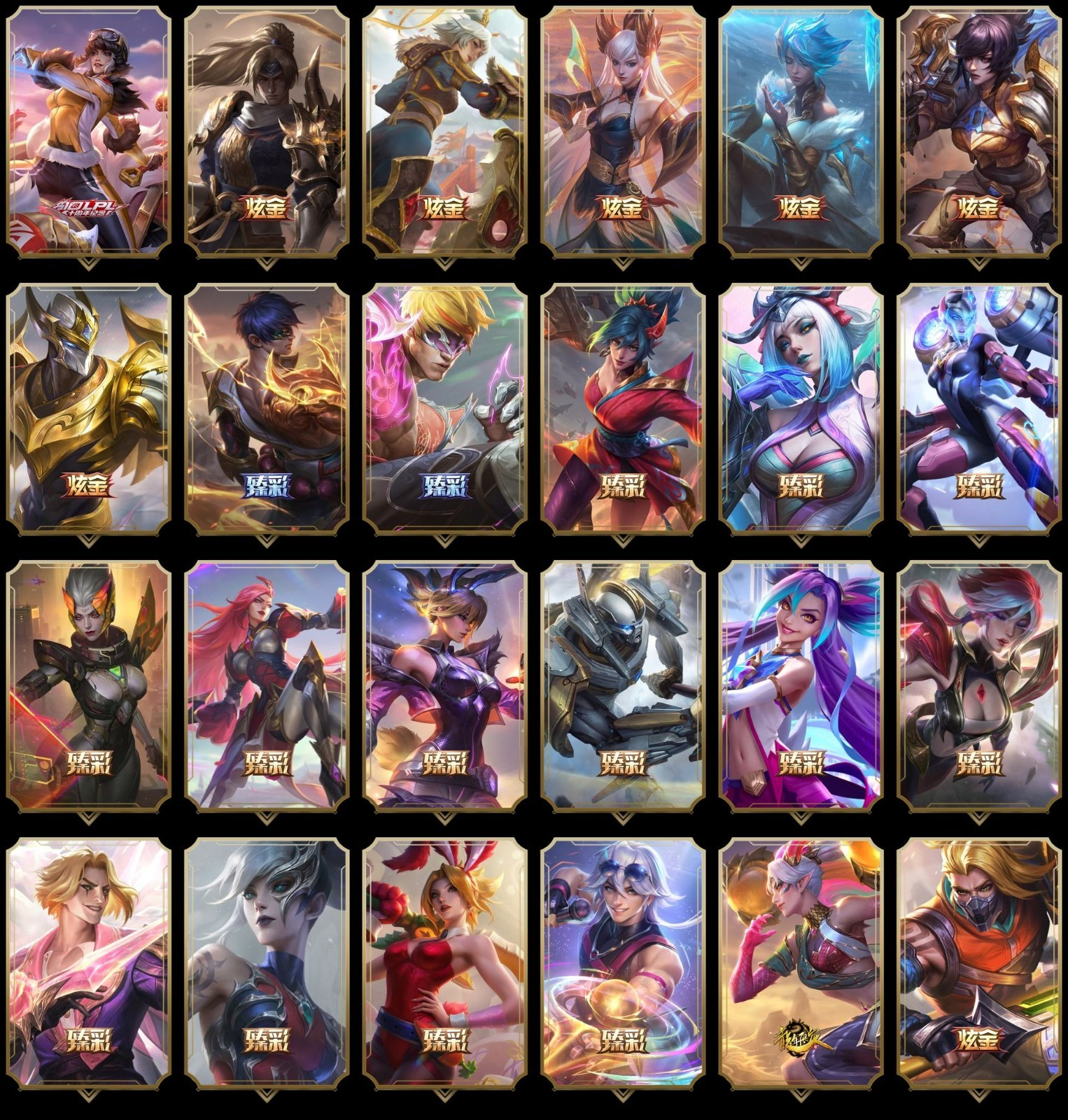 【重要炫彩】无畏骑士瑟庄妮赤子初心 赵云子龙炫金将军 替父从军花木兰炫金龙刃 玉剑传说舞剑仙轩辕 冰霜之刃艾瑞莉娅炫金 冠军之刃锐雯2016 冠军之隐劫凯旋圣装 神龙尊者圣龙李青龙腾云起 神龙尊者圣龙李青登龙 灵魂莲华锐雯流火 净雪之月莫甘娜冬虹 弹幕天使卡莎炽天使勇敢 源计划火菲奥娜惩戒 女帝卡特琳娜纹章之刻印英勇 幻灵战斗兔锐雯梦幻强袭 霸天剑魔亚托克斯涤罪之翼 星之守护者金克丝黑洞 黎明使者锐雯黑夜使者 战斗学院伊泽瑞尔白金学长 奥德赛娑娜恒星游历者 幽梦玫瑰泰隆浪漫花蕾 泰隆黑木梦境勇者 黑夜使者莉莉娅夕夜 海珀利安小队Y03权天使卡蜜尔神圣玫瑰 莫测之影卡蜜尔忠诚 百万调音格温我也来补车 女帝卡特琳娜纹章神圣加冕礼 腥红之月卡特琳娜落樱 西部魔影大小姐蕾欧娜忠诚 灵魂莲华锐雯春晓 光明哨兵锐雯灵岛抗击者 源计划魅灵赛娜幻灭 日蚀骑士希维尔浪漫 咖啡甜心弗拉基米尔酒醉樱桃 青花瓷伊泽瑞尔含苞 灵魂莲华千珏春晓 腥红之月易落樱 怨之砂派克绯幻 可爱可爱粉红红提莫 草莓味糖果兔宝宝提莫 驯龙炮手崔丝塔娜威仪晶龙 源计划天眼韦鲁斯幻灭 宇航员维迦万有引力 福牛守护者佛耶戈桃灯 暗星泽拉斯美神星之灭 奥德赛亚索恒星游历者 神凰行者瑞羽圣凰艾尼维亚仙翰 永恒之森雷克塞樱落 偶像歌手阿狸盛开之樱 EDG厄斐琉斯破军 EDG佛耶戈破军 EDG格雷福斯破军 EDG悠米破军 EDG佐伊破军 魔女阿卡丽虚荣 红莲之刃锐雯 心之钢伊泽瑞尔天纵才华 天龙之子卡莎飞龙乘云 墨之影武者亚索金墨耀影