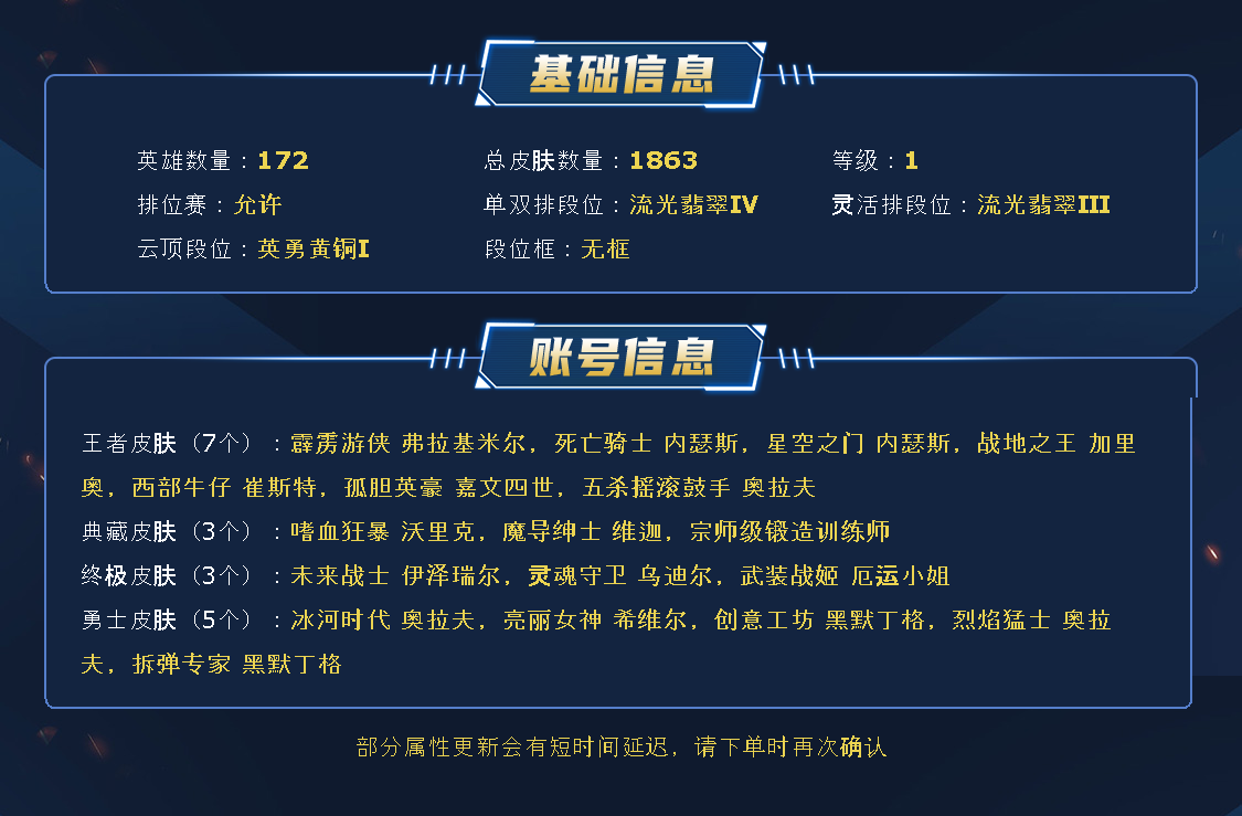 ~~喜欢记得收藏~~可排位~~1900皮全英雄~~租之前尽量查一下游戏ID,确保段位是您需要的,避免浪费您的时间~~请勿挂机逃跑故意送人头,谢谢合作,谢谢~~