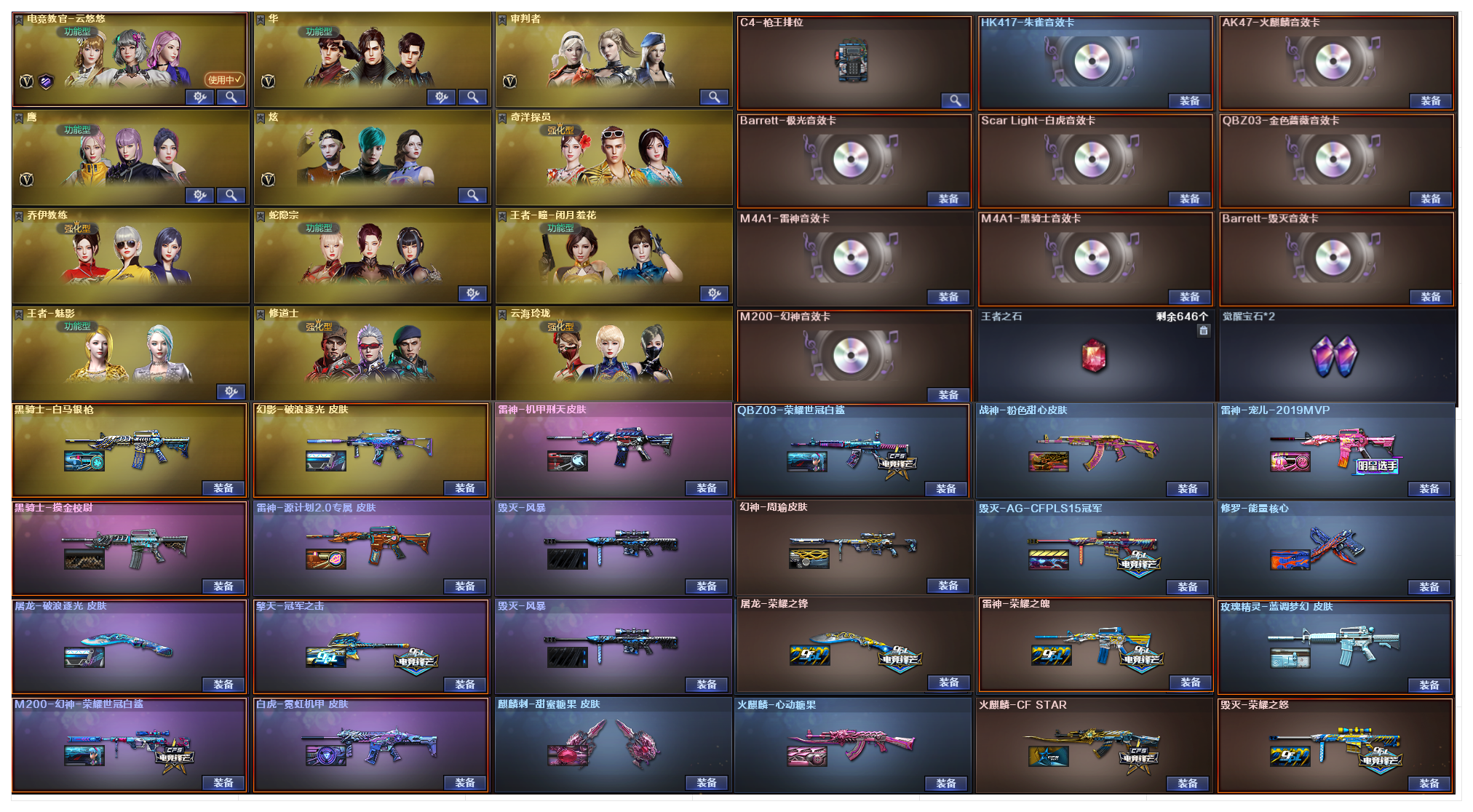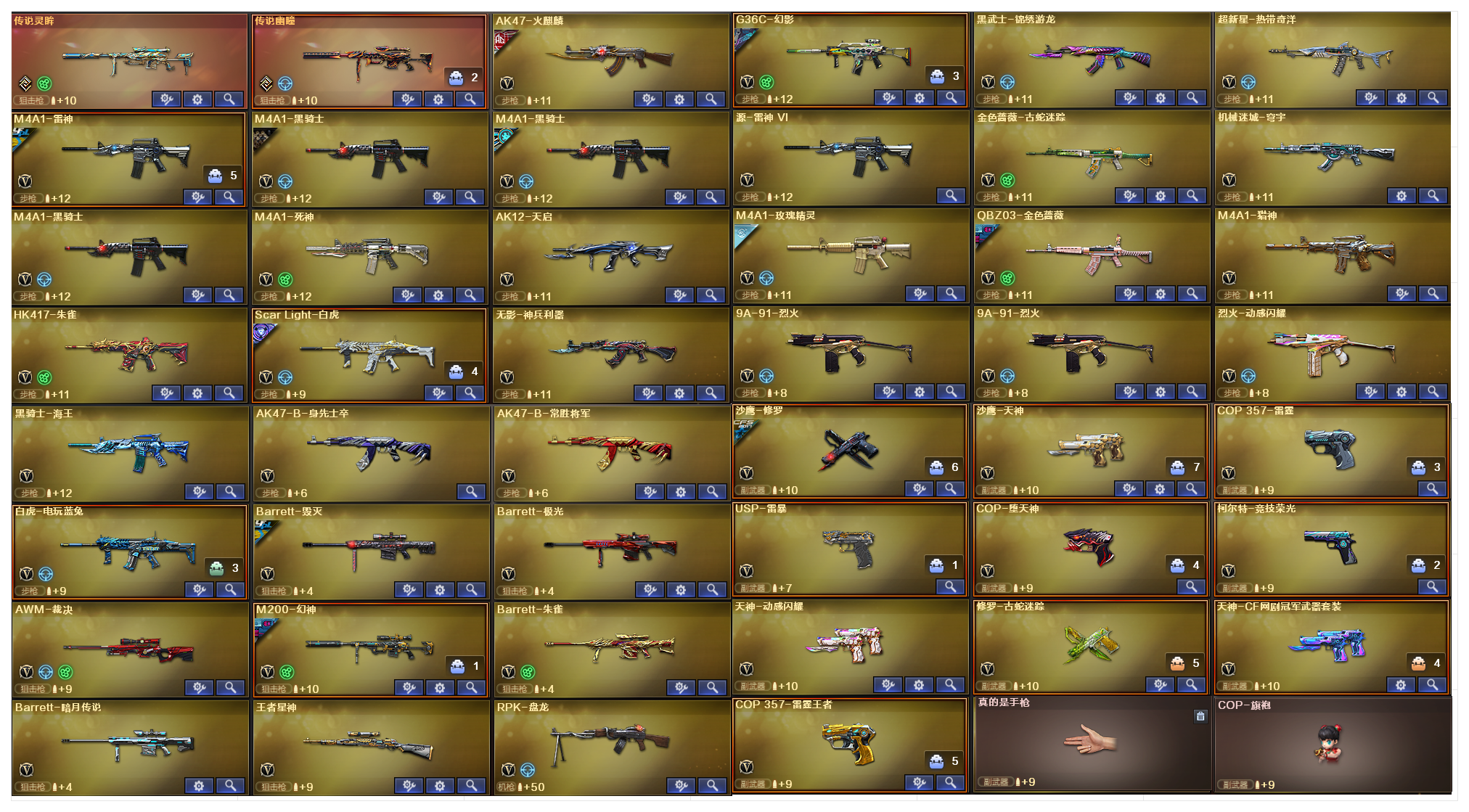 传说幽疃⭐传说灵眸⭐幻神双皮音效卡⭐G36C幻影⭐白虎QBZ极光3件套⭐蝴蝶刀⭐手枪满配⭐6盘6烈
