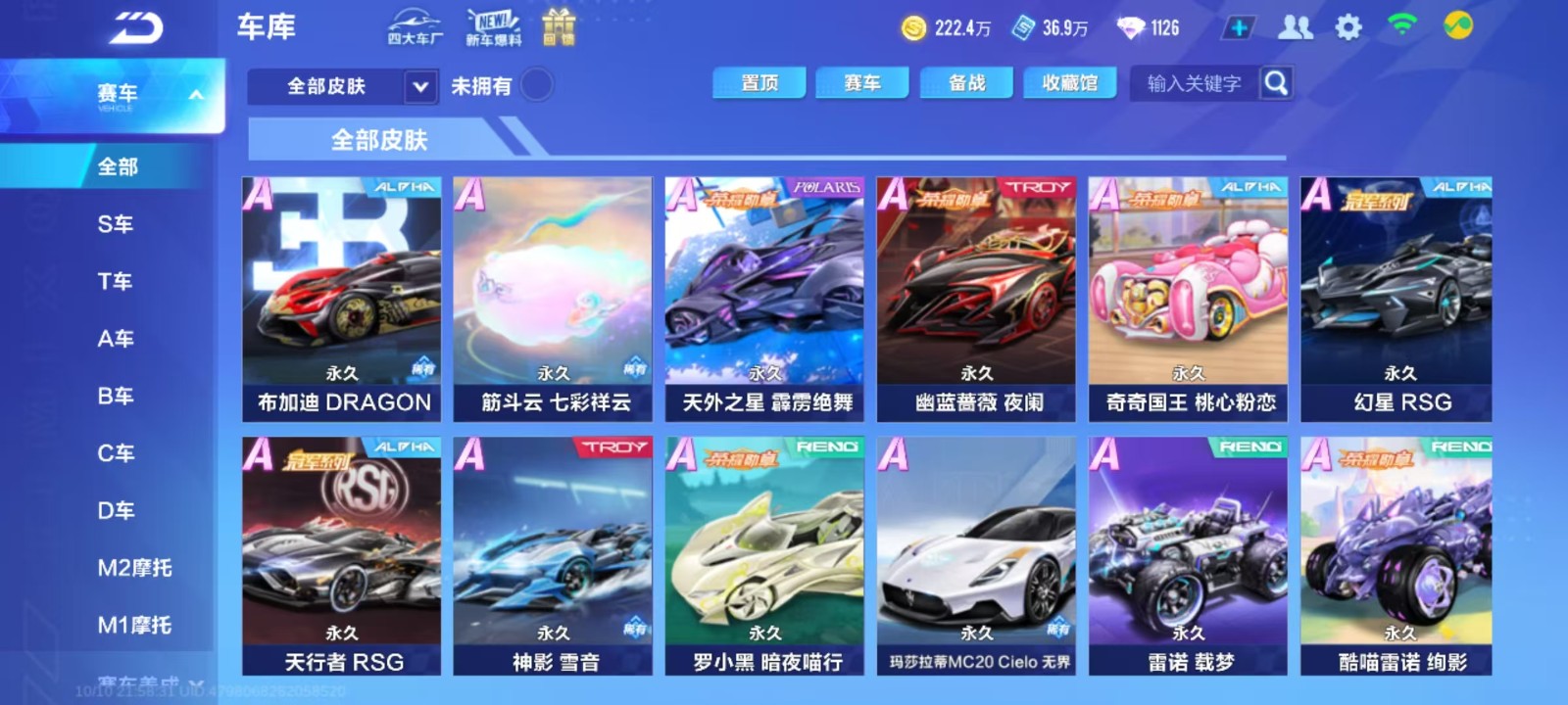 满改3形态魅娅世界之蛇、月影、幻星、天行者、破晓者皮肤 ,霍光、L清,雷诺载梦、道具神车L耀光神谕等极品A车81辆 、千山画卷魔法套装,宠物座椅若干 喜欢的老板请下单!