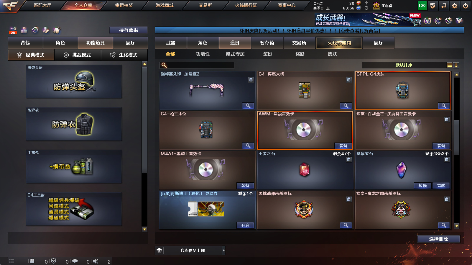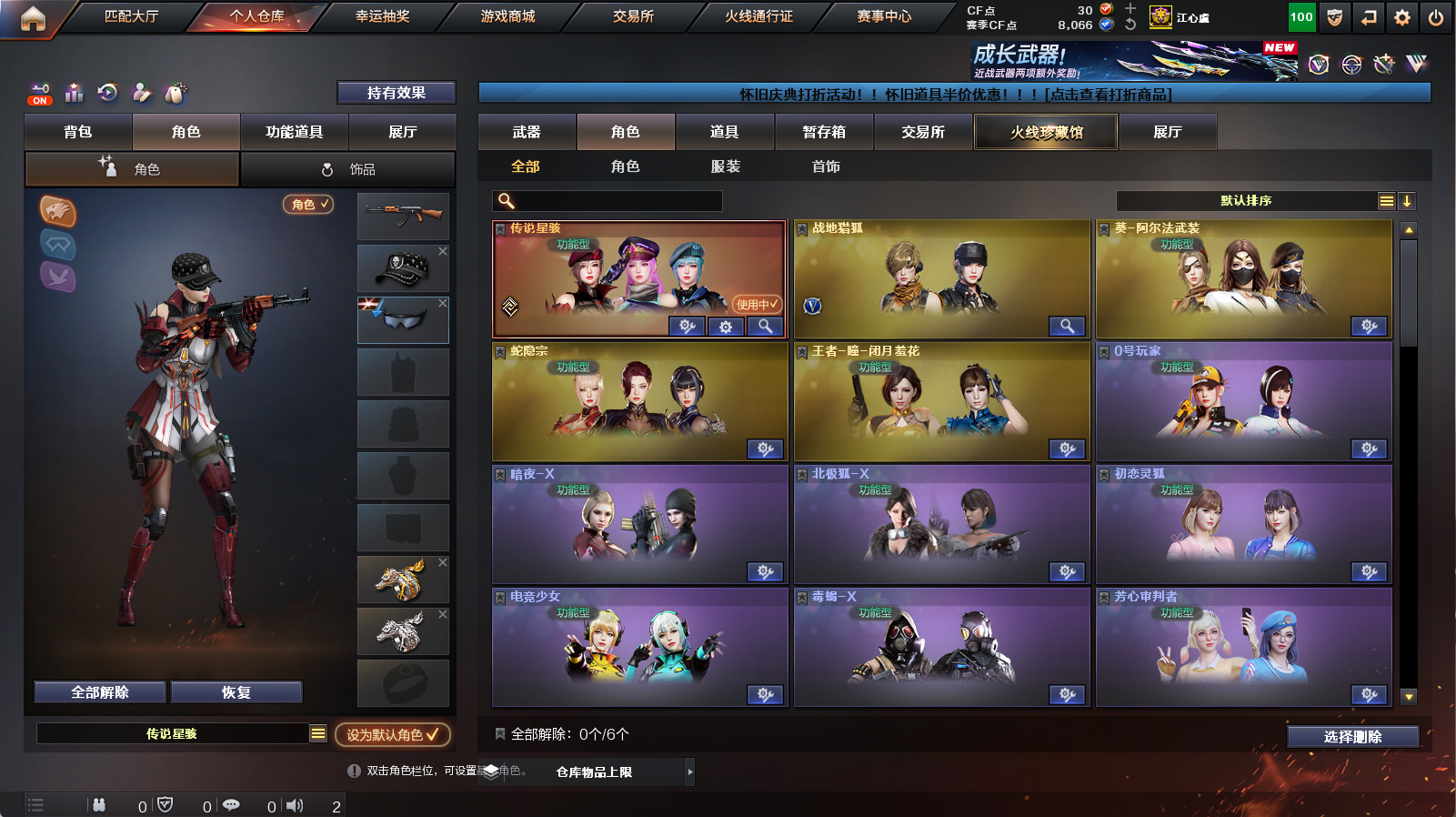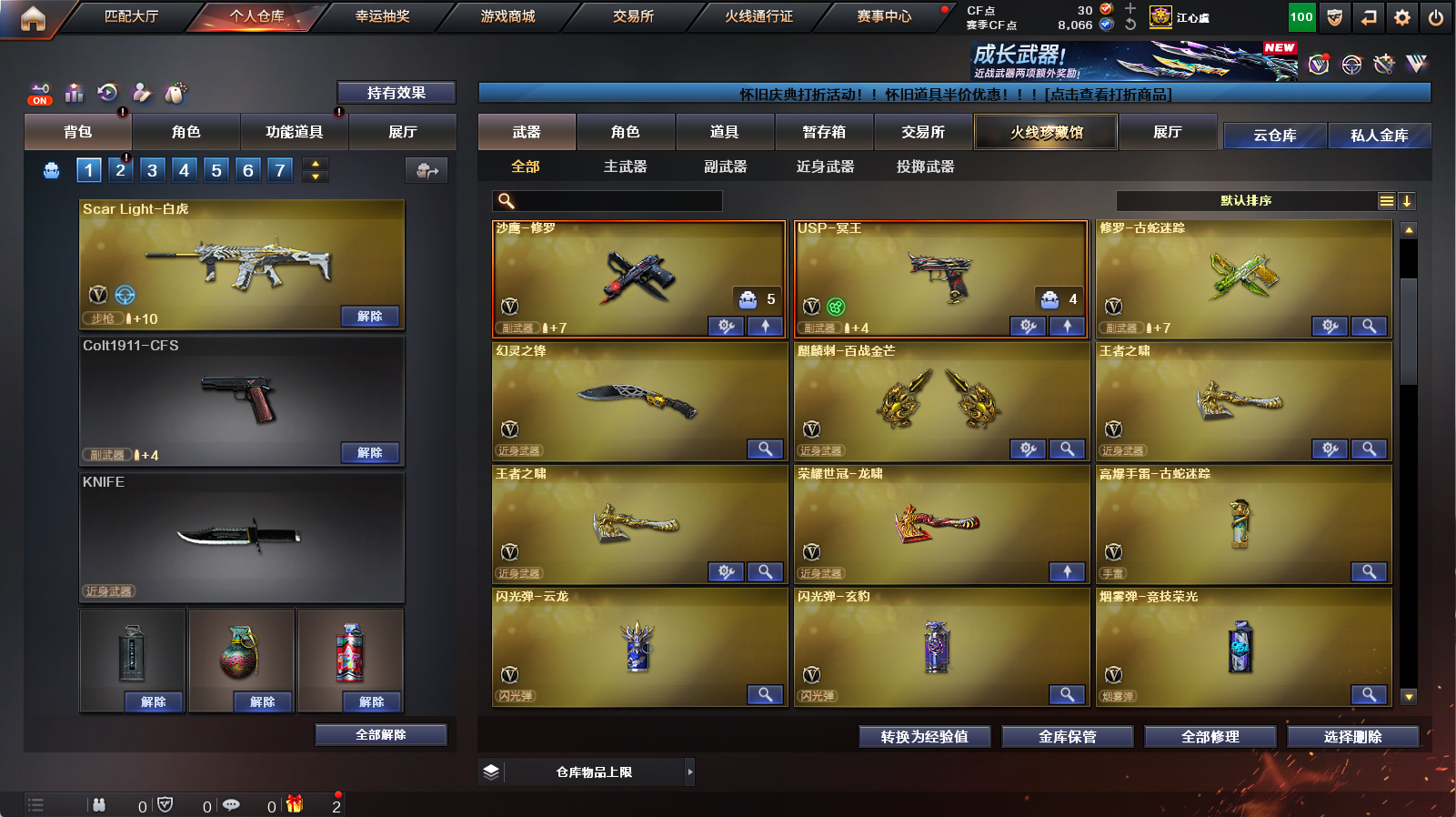 【传说星骇】【m200幻神】【usp冥王】【裁决+裁决音效卡】【白虎+朱雀】【王者凌虎】【金色蔷薇】【毁灭青帝】【黑骑士音效卡+炼狱百战金芒庆典舞曲音效卡】【四防王者瞳闭月羞花+满配阿尔法武装+满配蛇隐宗+女战神】【火麒麟+雷神+黑骑士+毁灭】【朱雀蛇隐宗+cop旗袍】【1911大黄蜂】【猫猫手套】【闪光护目镜+超级背包+炫彩背包】【工具钳+手雷包】