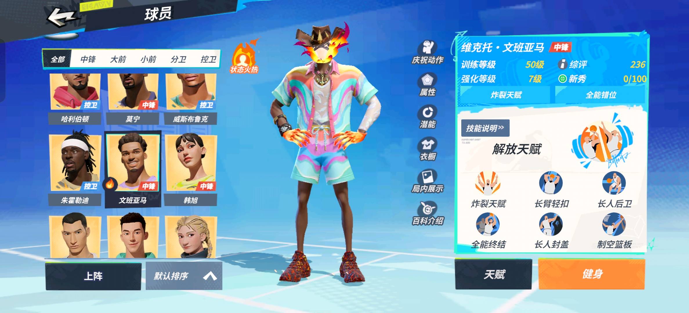 6朱哥7文班7罗德曼7韦德7杜兰特7克詹7大本7莫宁7韩旭7拉文1浓眉1约1马龙1司机1小卡卡1哈利1獭兔1巴特勒天赋全满