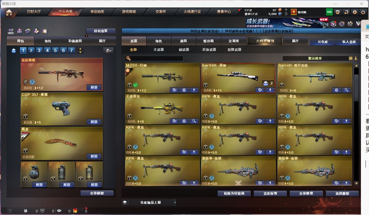 【亮点解析 幽瞳 星神带卡 生化高配 】【传说幽瞳】【m200幻神+纸灯龙】【98k星神+音效卡】【6烈龙 6盘龙 炼狱 死亡之眼 】【g36c幻影】【qbz金色蔷薇+卡+cfs2024】【火麒麟+卡】【黑龙】【雷神+卡+女团+荣耀之魄 】【黑骑士】【毁灭+卡+荣耀之怒 】【极光】【裁决 +流光秘银 】【武器:武圣 雷霆 王者之心 银翼 王者之魄 王者风势 】【9手枪:修罗*6 天神 雷霆 】【9刀具:屠龙*5 龙啸 擎天 尼泊尔雷霆 麒麟刺 】【雷套:雷霆雷*5】【小人枪:火麒麟灵狐 幻神魅影 天龙曼陀罗 】【音效卡:星神音效卡 火麒麟音效卡 雷神音效卡 毁灭音效卡 金色蔷薇音效卡 】【四防角色:王者魅影 王者晴雅 】