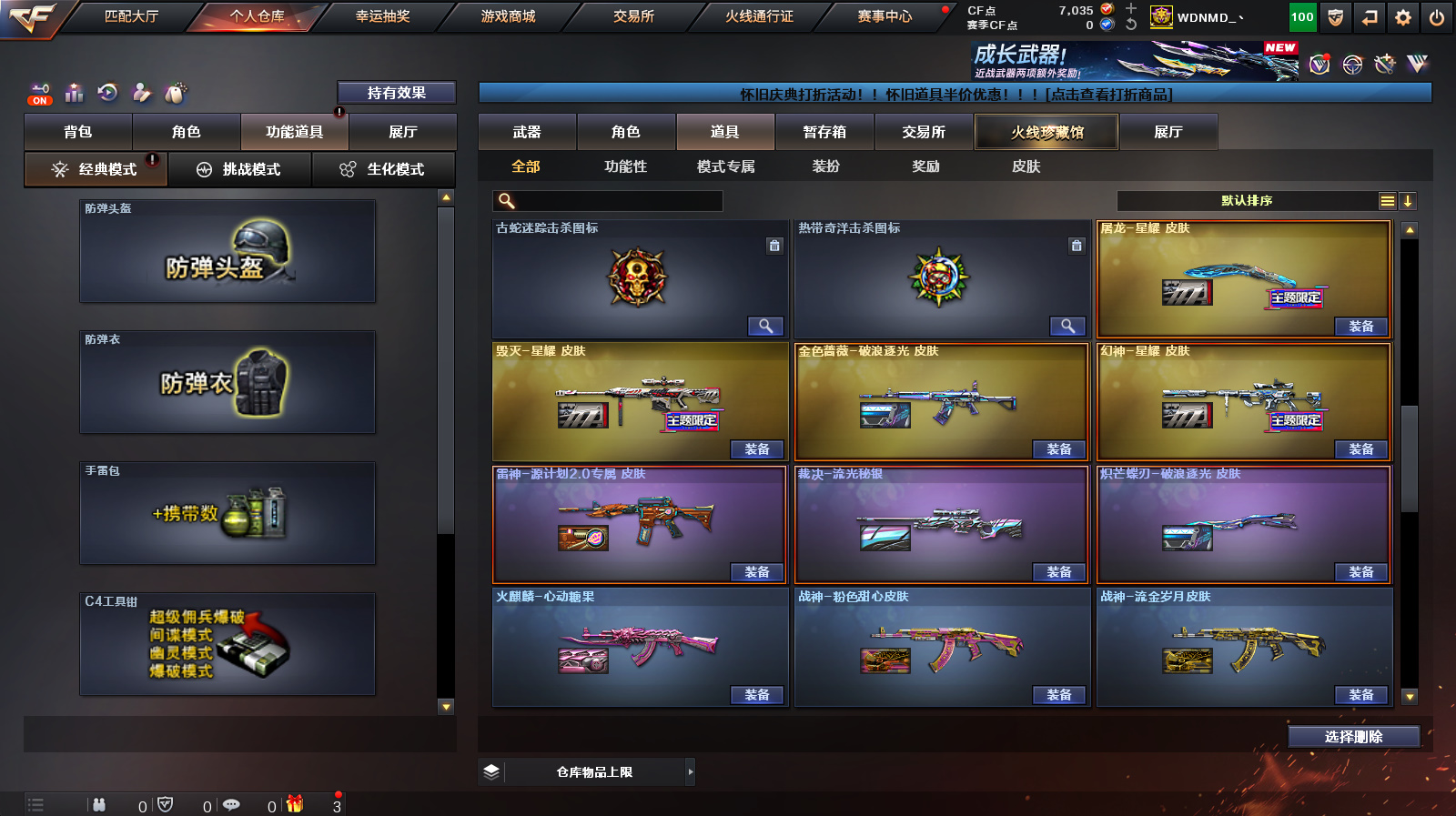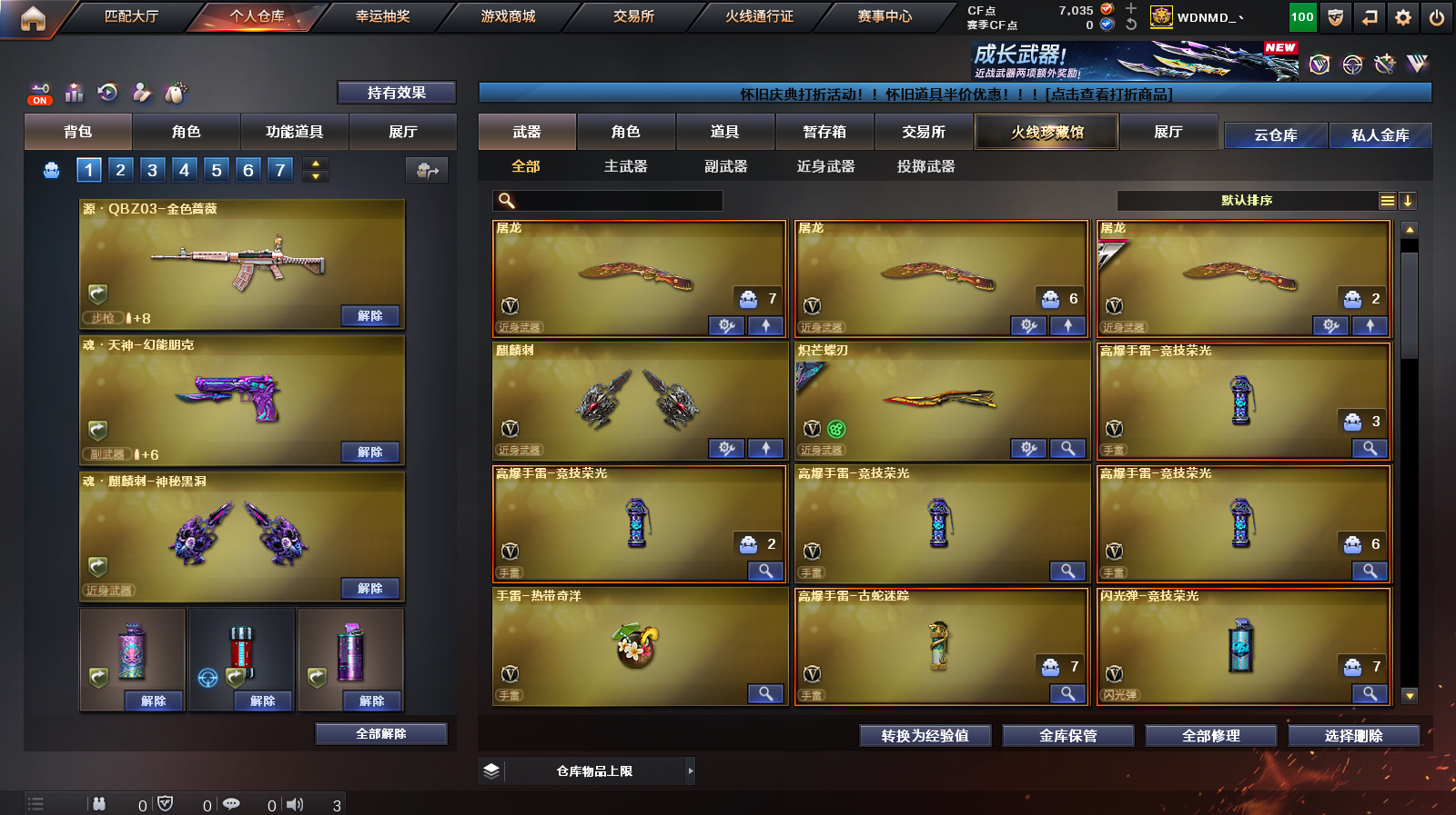 【m200幻神+幻神星耀皮肤+幻神黄忠】【竞技柯尔特】【炽芒蝶刃】【星神+星神音效卡】【觉醒王者星光】【裁决+裁决流光秘银】【金色蔷薇破浪逐光皮肤毁灭星耀皮肤+屠龙星耀皮肤】【黑骑士音效卡】【星际战将+满配蛇隐宗+奇洋探员】【猎神+金色蔷薇】【火麒麟+雷神+黑骑士】【朱雀蛇隐宗】【1911大黄蜂】【闪光护目镜+超级背包】【工具钳+手雷包】