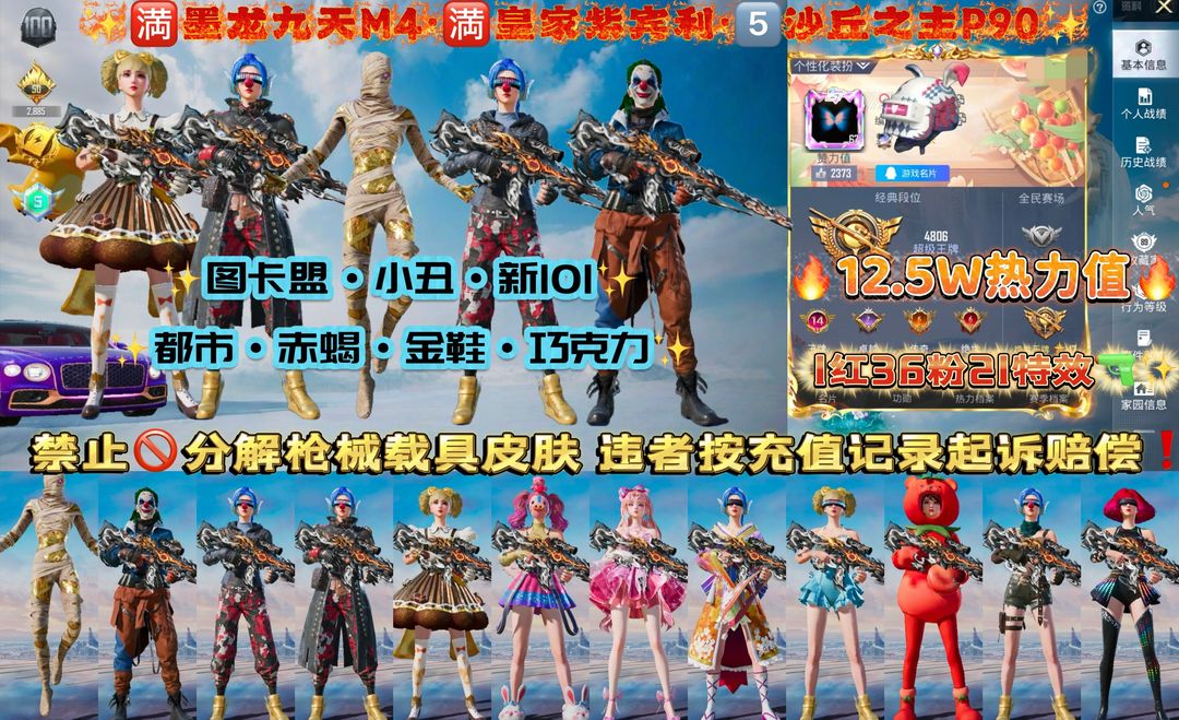 恶意撤单一律拉黑 可直接上号 租客须知◆ 本账号已在公安局备案,请勿对账号做出非法操作 如:开挂,坐挂车,使用第三方工具等,请您和谐游戏,如有损害财务的情形必追究到底 登录游戏:登录请打开和平精英并勾选上同意协议,再点击开始登录即可,如跳转停留主页面无反应,!!!重新打开和平精英!!!!即可正常进入游戏 **:如账号触发账号系统,会为您补上时间,到时不会下线,直到下一位租客租赁账号为止 请尽量不要以**进行维权 恶意维权,恶意维权者进行拉黑处理,永不放出 关于登号器,登录请打开和平经营并勾选上同意协议,再点击开始登录即可,如跳转停留主页面无反应,重新打开和平精英即可正常进入游戏 如果您喜欢本账号,可以点个收藏 【该账号库存价值较大已在派出所进行虚拟财产备案处理发现封禁将依法追究责任 禁止毁号开第三方软件发现账号被封禁联系平台获取联系方式进行法院起诉故意损害他人财物处理】请勿以身试法。开G封号一律报警并法院起诉,追究到底! 别以为虚拟ip,虚拟卡就可以为所欲为,平台注册手机验证,身份证号或者ZF宝付款记录等太明显了,网络不是法外之地, 想想那些在网上违法诈骗的怎么被抓的? 做一件事的时候要考虑后果是不是你能承担的,想开G自己注册个新Q玩就行了, 租别人的号开G吃亏的还是自己,切勿抱有侥幸心理, 到时候被网监局刑事部门找上门,罚钱坐牢留下案底,亲人两行泪!恶意撤单一律拉黑