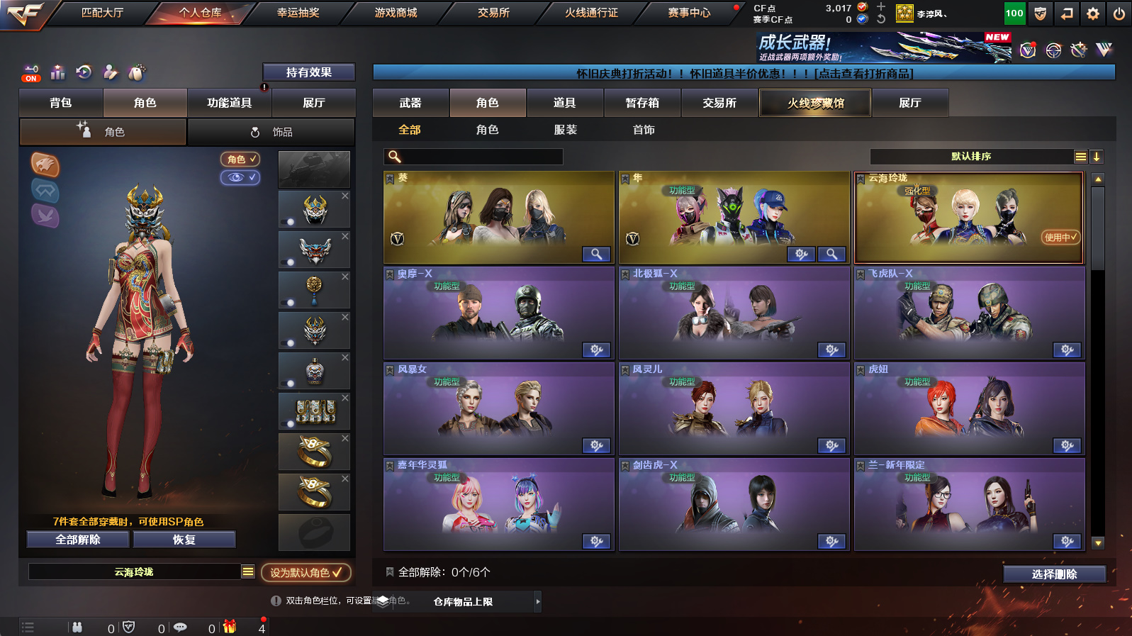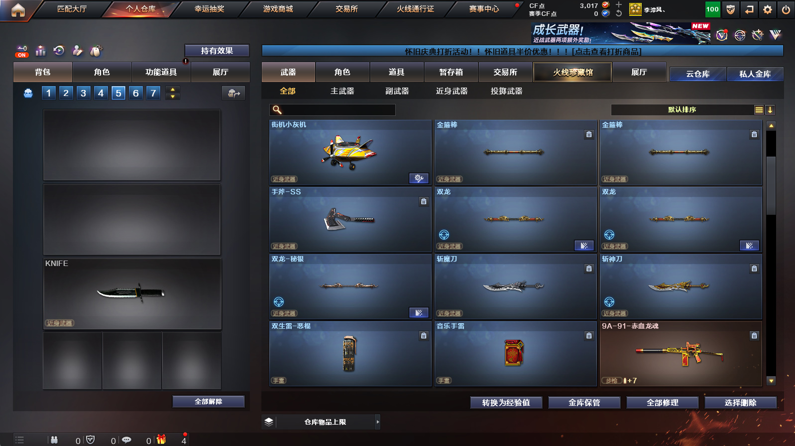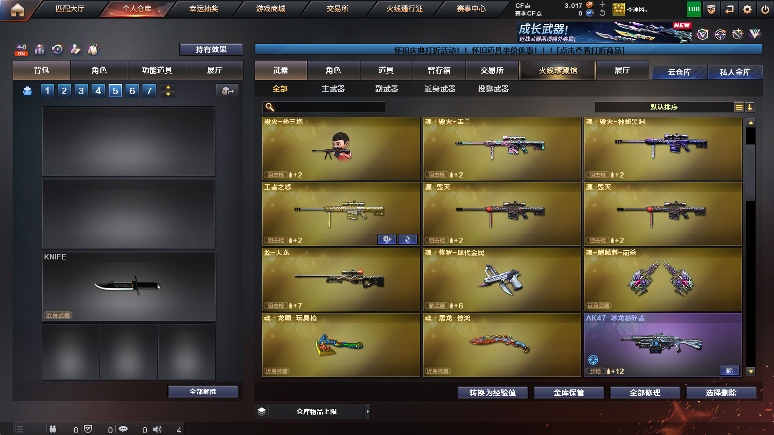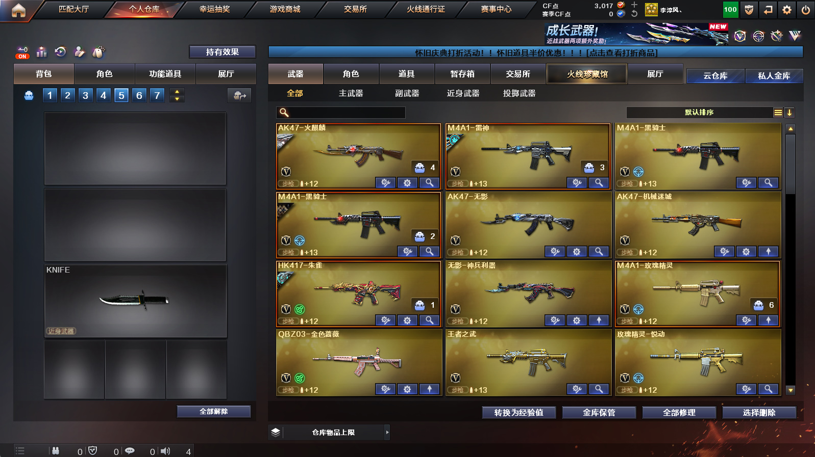 【3m200幻神+幻神冠军之幻+幻神降龙+幻神黄忠】【朱雀+朱雀武当】【隼+2烈龙】【金色蔷薇】【火麒麟华夏之心+火麒麟轻羽】【毁灭云海游龙音效卡+黑骑士音效卡】【满配云海玲珑】【火麒麟+雷神+黑骑士+毁灭】【火麒麟绝迹+雷神小红+毁灭孙三炮】【1911大黄蜂】【闪光护目镜】【工具钳+手雷包】