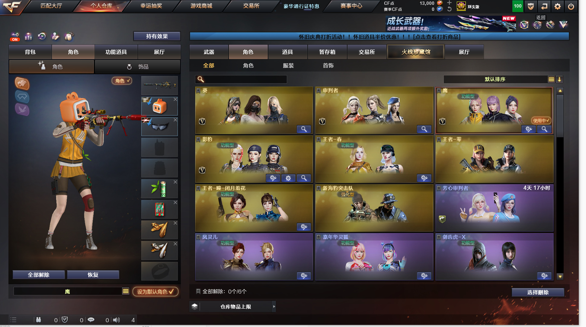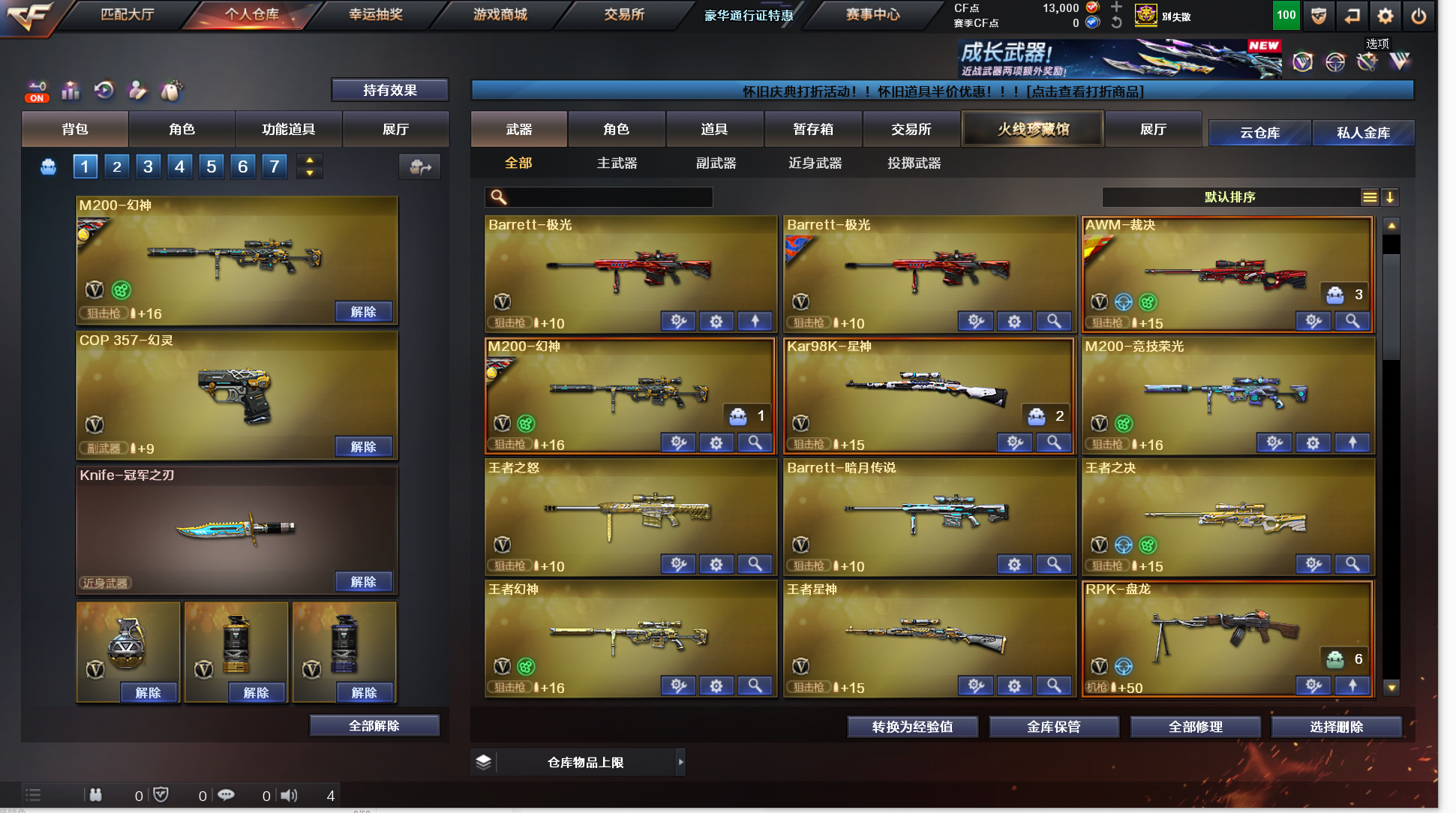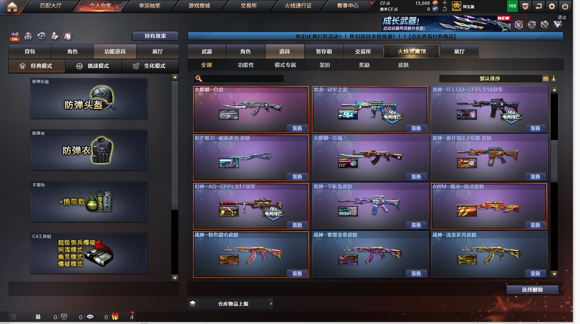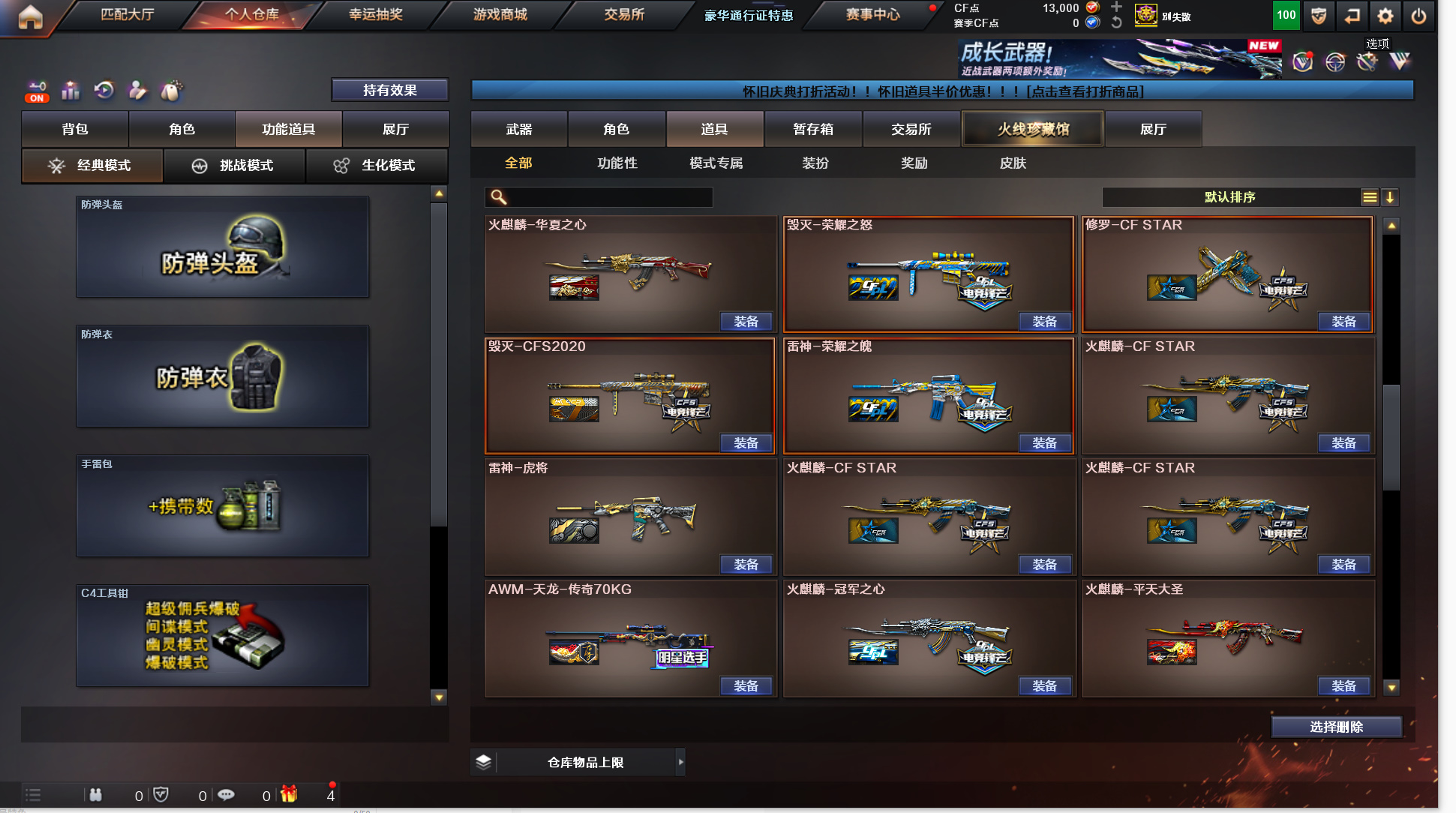 162v《8炫金》《20王者》《传说圣灵》《传说辉光》《m200幻神+幻神agcfpls17+幻神音效卡》《98k星神+音效卡》《裁决+凤灵+音效卡》《m200竞技荣光》《王者幻神/星神》《cop幻灵 柯尔特电竞装甲 cop白鲨 cop旗袍 1911大黄蜂》《炽芒碟刃+破浪逐光 冠军小刀》《幻灵套》《白虎》《朱雀》《王者火魄》《qbz王者蔷薇》《qbz金色蔷薇》《烈火》《毁灭》《4盘5烈 4炼狱 斯泰尔蝴蝶》《寒冰征服者超越max》《牛牛ak》《火麒麟绝迹 雷神小红》《金刚伞》《鹰 4防影豹 4防王者春 4防王者瞳闭月羞花 灵动武士 灵狐者职业经理 职业选手》《极光音效卡 火麒麟音效卡 雷神音效卡 黑骑士音效卡 毁灭音效卡 黑龙音效卡 qbz金色蔷薇音效卡》《毁灭魔灵 火麒麟白虎 雷神rlgdcfpls18 黑龙冠军之武 雷神宇航兔 传奇石头横秒之巅 雷神传奇n9 火麒麟cfs2018 毁灭cfs2020 天龙70kg 火麒麟冠军之心 火麒麟ag战队皮 雷神荣耀之魄 毁灭荣耀之怒 毁灭svcfpls16》a背包套装扩展券+b背包套装扩展券《永久ac 永久工具钳 永久手雷包