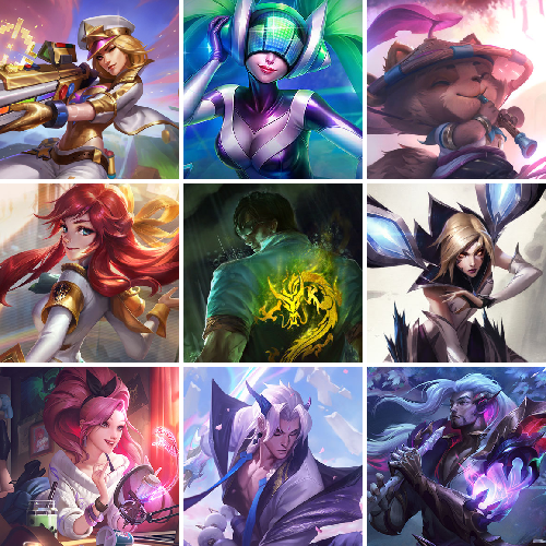【重要皮肤】暗裔英雄嘉文四世至臻 太空律动魔音海妖娜美至臻 星之守护者辛德拉至臻 星之守护者艾克至臻 魅惑女巫莫甘娜至臻 女帝黛安娜至臻 战斗学院蕾欧娜至臻 太空律动璐璐至臻 魔女婕拉至臻 魔女乐芙兰至臻 奥术师佐伊至臻 未来战士卢锡安至臻 真实伤害亚索至臻 真实伤害赛娜至臻 灵魂莲华提莫至臻 灵能特工伊泽瑞尔至臻 福牛守护者菲奥娜至臻 源计划逆流塞拉斯至臻 源计划阴劫至臻 王国机神玄武盖伦至臻 暗星墨菲特至臻 神龙尊者炎龙瑟提至臻 黑夜使者凯隐至臻 神龙尊者均衡之龙沃利贝尔至臻 征服者贾克斯至臻 飞升战神潘森至臻 焰执事布兰德至臻 KDA二代卡莎至臻 KDA一代卡莎至臻 KDA伊芙琳至臻 KDA伊芙琳2022至臻 战斗学院拉克丝至臻 战斗学院拉克丝2022至臻 烈焰美人薇恩至臻 烈焰美人薇恩2022至臻 电玩女神凯特琳至臻 魅惑女巫厄运小姐至臻 真实伤害奇亚娜至臻 真实伤害奇亚娜2022至臻 绒毛菲兹至臻 绒毛菲兹2022至臻 腥红之月亚托克斯至臻 腥红之月亚托克斯2022至臻 未来战士锤石至臻 未来战士锤石2022至臻 黑夜使者李青至臻 黑夜使者李青2022至臻 灰烬征服者潘森 海克斯科技瑟庄妮 海克斯科技雷克顿 海克斯科技吉格斯 海克斯科技玛尔扎哈 海克斯科技波比 海克斯科技嘉文四世 海克斯科技阿木木 海克斯科技拉莫斯 海克斯科技魔腾 海克斯科技崔丝塔娜 永恒之森奥恩 暗星科加斯 黎明使者卡尔玛 零之枪骑赫卡里姆 摄魂使者薇恩 新创战纪希维尔 灵能特工易 龙的传人李青 神龙烈焰金克丝 碧玉之牙卡西奥佩娅 你看见过我的熊猫吗安妮 美猴王孙悟空 玉净夜叉凯特琳 烈焰美人薇恩 神龙之翼库奇 征服者贾克斯 王国机神青龙德莱文 王国机神朱雀蕾欧娜 王国机神苍狼瑟提 王国机神白虎贾克斯 王国机神玄武盖伦 福牛守护者厄斐琉斯 福牛守护者阿利斯塔 福牛守护者嘉文四世 福牛守护者菲奥娜 胜利之树茂凯 胜利机器人布里茨 胜利女神奥莉安娜 胜利枪神格雷福斯 胜利枪神卢锡安 胜利之剑亚托克斯 觅心萝莉金克丝 觅心猎手薇恩 幽梦玫瑰辛德拉 幽梦玫瑰泰隆 水晶玫瑰婕拉 水晶玫瑰斯维因 冬季仙境奥莉安娜 圣诞老人德莱文 冰雪驯鹿波比 冰雪风暴希维尔 狂心冰王图奇 魄罗骑士瑟庄妮 夺命美人卡特琳娜 平安夜女神娑娜 圣诞糖果棒厄运小姐 魅惑女巫莫甘娜 伯爵卡萨丁 泳池派对辛德拉 泳池派对奥莉安娜 泳池派对嘉文四世 泳池派对塔莉垭 泳池派对塔里克 泳池派对蕾欧娜 送披萨的小姐姐希维尔 制胜金球拉莫斯 FPX锤石 FPX薇恩 FPX李青 FPX普朗克 FPX墨菲特 iG卡蜜尔 iG洛 iG卡莎 iG艾瑞莉娅 iG乐芙兰 iG菲奥娜 SSG洛 SKTT1扎克 SKTT1奥拉夫 SKTT1瑞兹 SKTT1阿兹尔 SKTT1雷克顿 SSW雷恩加尔 SSW泰隆 SSW图奇 SSW辛吉德 SKTT1李青 暗杀星奥莉安娜 暗杀星慎 Fnatic库奇 Fnatic嘉文四世 Fnatic卡尔萨斯 冰雪节辛吉德 防暴天使凯尔 鬼影森森茂凯 鬼影重重魔腾 海贼瑞兹 胡桃夹子萨科 惊悚派对阿木木 南瓜头费德提克 圣诞狂欢努努和威朗普 圣诞老人古拉加斯 雪默丁格 雪装奈德丽 野兽猎人德莱文 野兽猎人瑟庄妮 野兽猎人泰达米尔 勇者阿狸 征服者阿利斯塔 征服者韦鲁斯 暗影沃里克 2021全球总决赛嘉文四世 波比的巧克力工坊 都铎王朝图奇 十五周年纪念希维尔 十周年纪念安妮 源代码乐芙兰 神凰行者瑞羽圣凰艾尼维亚 暗裔英雄盖伦 DJ娑娜 灵魂守卫乌迪尔 KDAALLOUT萨勒芬妮独立音乐人 KDAALLOUT萨勒芬妮明日新星 KDAALLOUT萨勒芬妮超级巨星