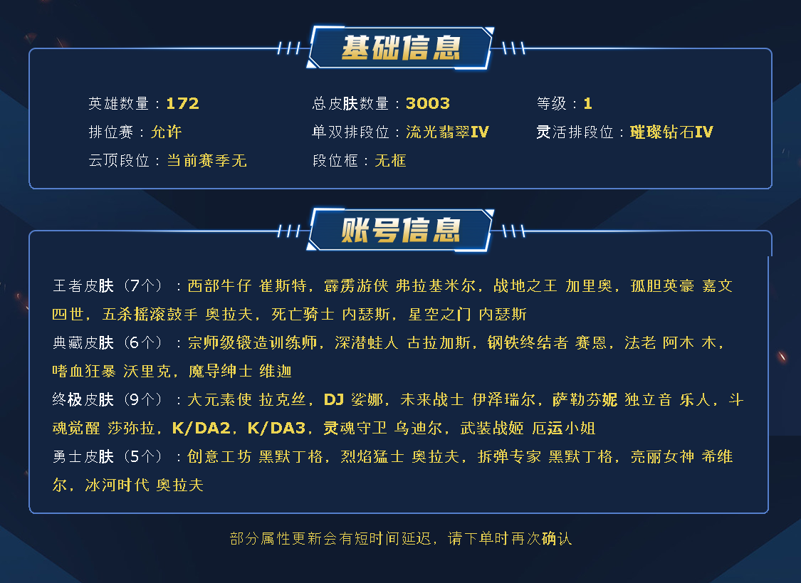 清空商城2992皮⚡129神话⚡联盟不朽阿狸⚡殿堂卡莎⚡殿堂薇恩⚡殿堂妖姬⚡龙瞎⚡勇敢的心⚡天龙瞎