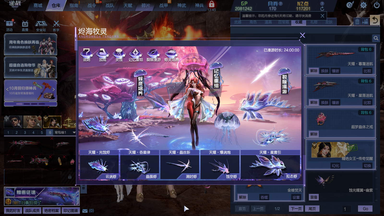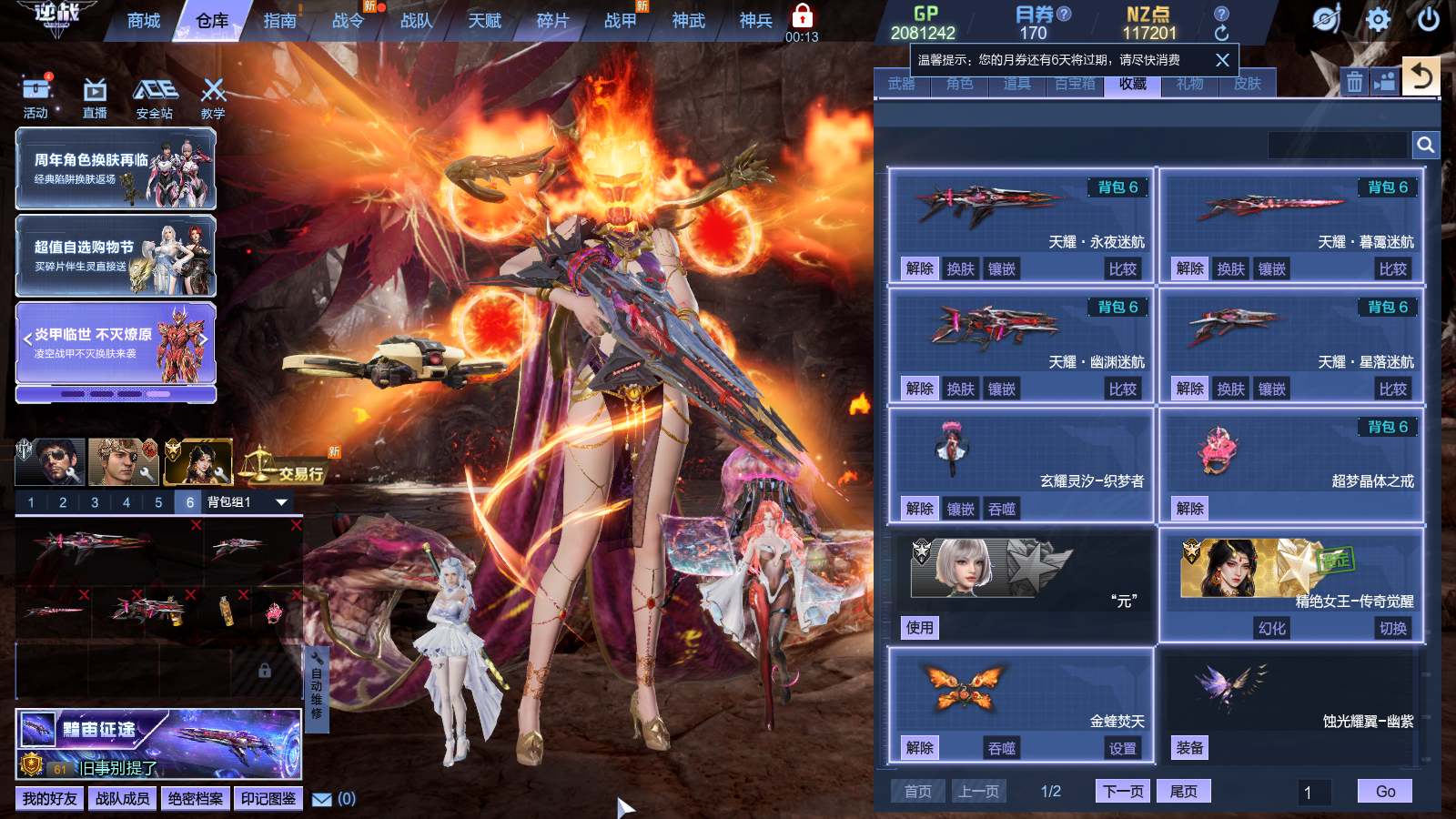 永夜迷航5核心天耀套传奇觉醒精绝女王⭐金蝰焚天幽紫⭐超梦晶体戒元89增伤⭐三级战甲飞羽白龙吟极限核心
