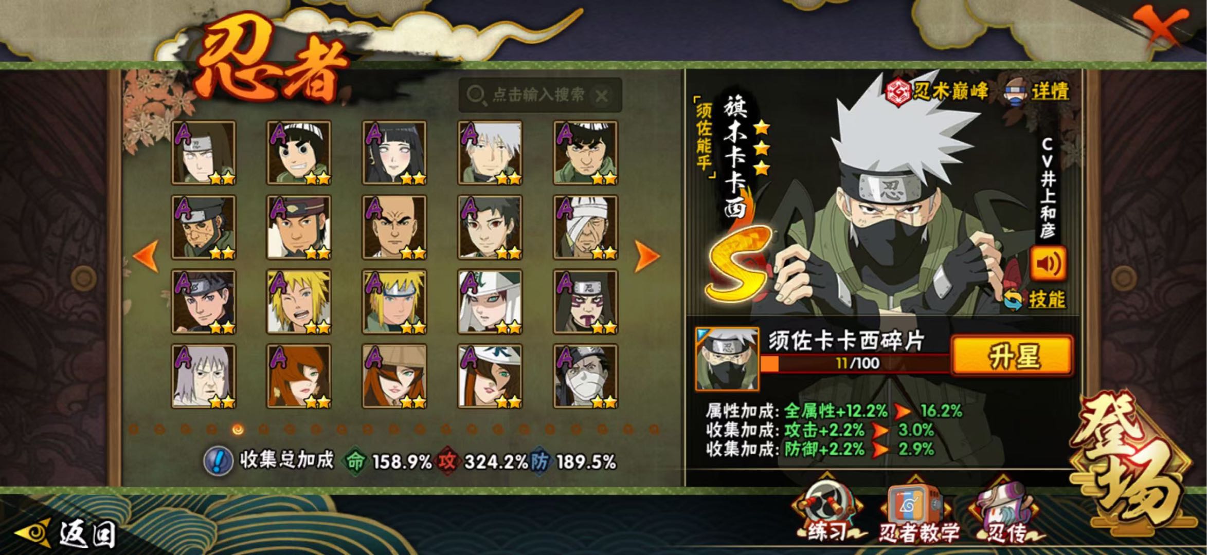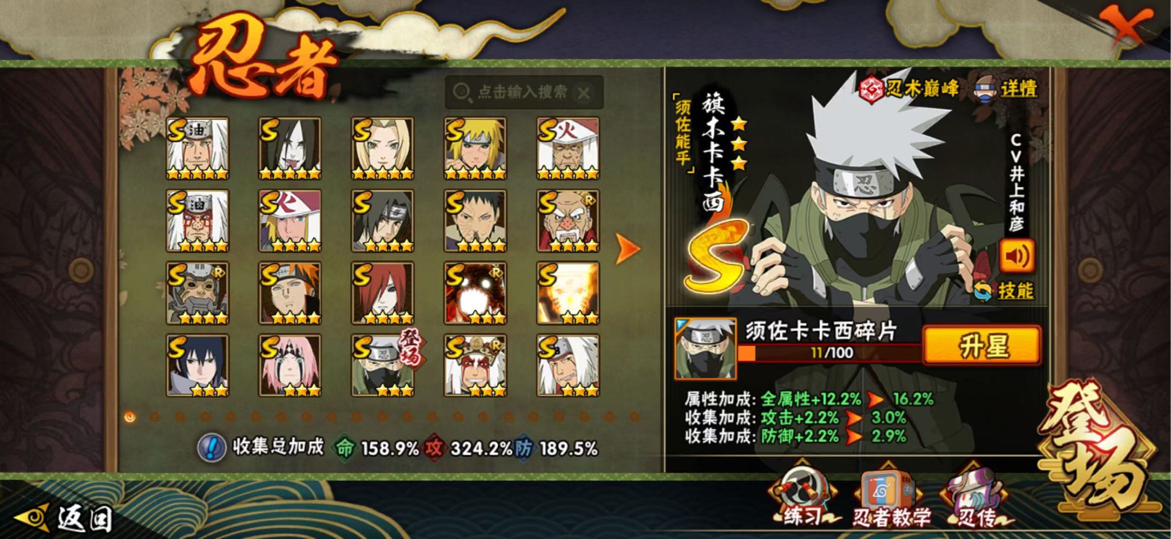 仙人自来也 纲手 波风水门 百战水门 猿飞日斩 千手柱间 宇智波斑 宇智波鼬 舞之自来也 大蛇丸 百战大蛇 秽土四代 秽土三代 秽土长门 仙人兜 黄猿九喇嘛鸣人 紫狗永恒佐助 樱婊忍战樱 秽土鼬 普通自来也 百豪纲手 死门凯 二代扉间 秽土二代 秽土初代 秽土柱间 白面具 须佐卡卡西 小胡子鬼灯幻月 雷影 土影 无 佩恩 百战佩恩 青年柱间 创立初代 秽土斑 青年斑 解斑 须佐止水 虎皮 破面带土 红夜带土 罗砂 秽土三代风影 忍战雷影 三代雷影 金角银角 秽土半藏 忍战大野木 小土豆 天道超 大筒木桃式 大筒木金式 钢铁之躯凯 桀骜之刃阿斯玛 狂野之鲨鬼鲛 飞段 黑飞段 百豪樱 忍战李 大卡卡西 五代水影照美冥 宇智波鼬 仙鸣 九尾查克拉鸣人 鹰佐 奇拉比 青年艾 半蛇兜 晓蛇 新春鼬 面麻 须佐佐助 疾风咒印佐助 忍战宁次 忍战天天 最终章雏田 幻容卡卡西 神卡 忍战卡卡西 泳装卡卡西 忍战凯 青春哥 惊门凯 爱情哥 新春止水 新春水门 青年水门 青水 新春我爱罗 泳装照美冥 侠隐照美冥 侠隐纲手 侠隐兜 漂泊再不斩 漂泊佩恩 漂泊二代 漂泊小南 漂泊佩恩 三船 青年三船 青年长门 泳装南 新春南 新春大蛇丸 晓创生角度 晓创生蝎 晓创生飞段 泳装鼬 鲛肌融合鬼鲛 新春迪达拉 秽土迪达拉 恶灵之影飞段 暴怒带土 忍战黄土 卑留呼 桃博 黑土