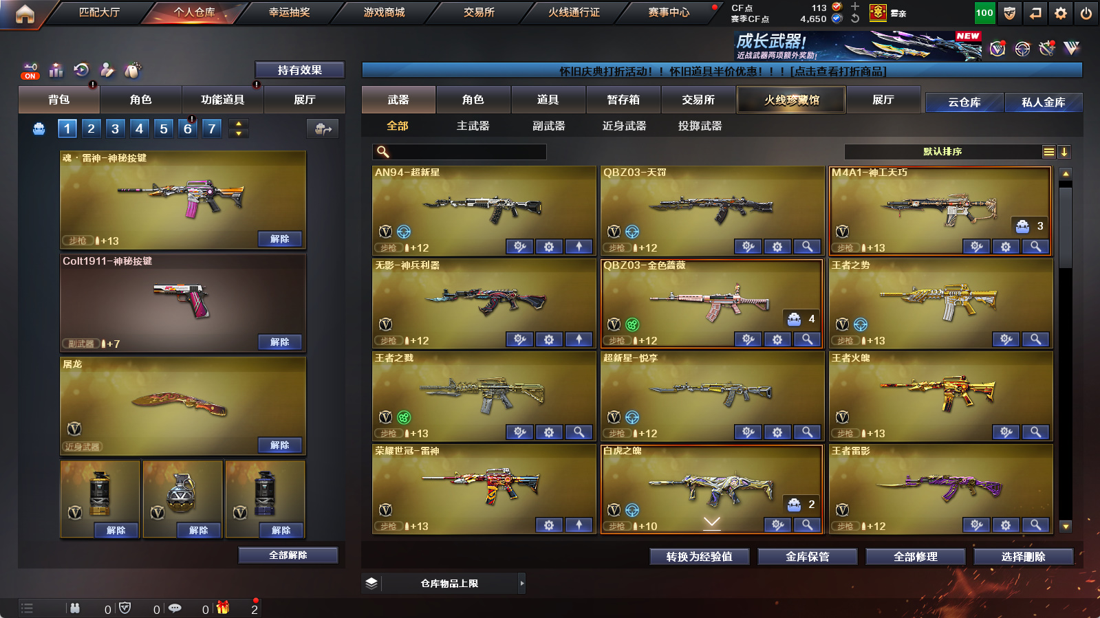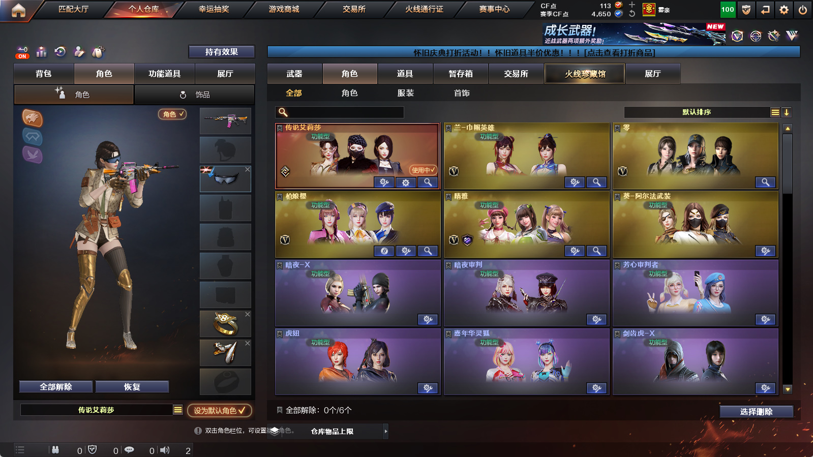 【四防传说艾莉莎】【4王者3炫金】【m200幻神+幻神丹凤+幻神音效卡】【2USP神工天巧】【炽芒蝶刃】【传说夜影】【神工天巧套】【觉醒白虎之魄】【天罚】【觉醒王者雷影+王者火魄】【6烈龙】【金色蔷薇+金色蔷薇枪娘阿敏皮肤】【白虎百战金芒皮肤+雷神拼搏+毁灭直播专属+火麒麟轻羽+黑骑士地狱火】【白虎音效卡+苍鸣雷神音效卡+炼狱百战金芒庆典舞曲音效卡+碧霄极光音效卡】【四防兰巾帼英雄+四防枪娘樱+枪娘语音包阿敏+四防晴雅+满配阿尔法武装+四防暗夜审判+四防葵赛博朋克+四防女主播+女战神梧桐语音包】【雷神小红+炼狱迷你小钢+USP嘉年华柯基】【金刚伞】【猫猫手套】【闪光护目镜+超级背包+炫彩背包】【a背包扩展劵+b背包扩展劵】【工具钳+手雷包】
