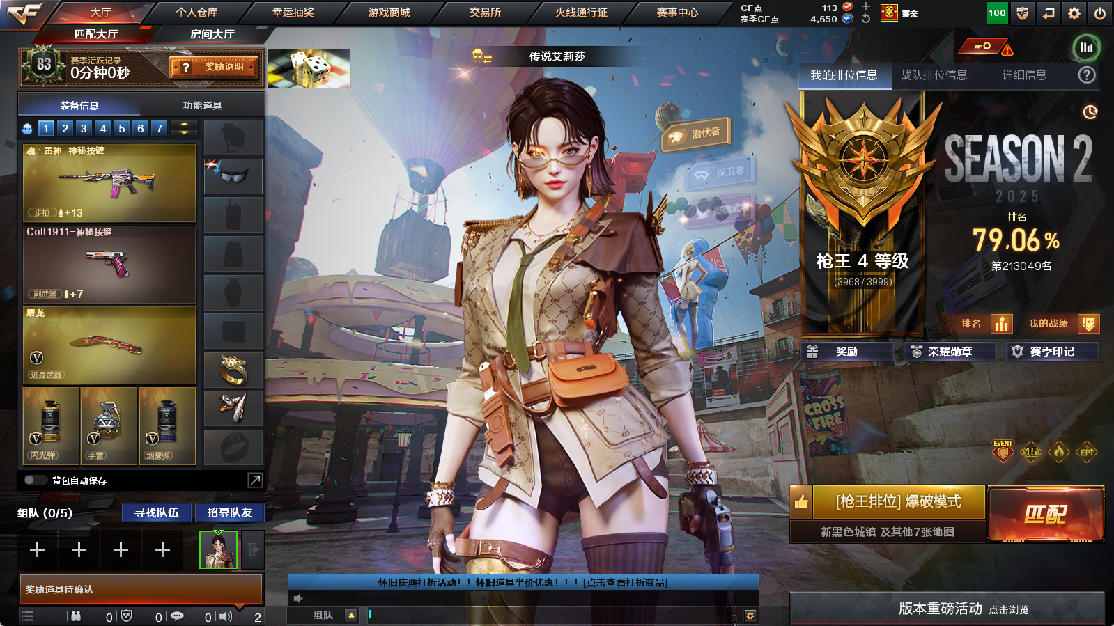 【允许排位】四防传说艾莉莎⭐幻神➕丹凤皮肤➕幻神音效卡⭐USP神工天巧⭐炽芒蝶刃⭐传说夜影⭐神工天巧套⭐白虎之魄