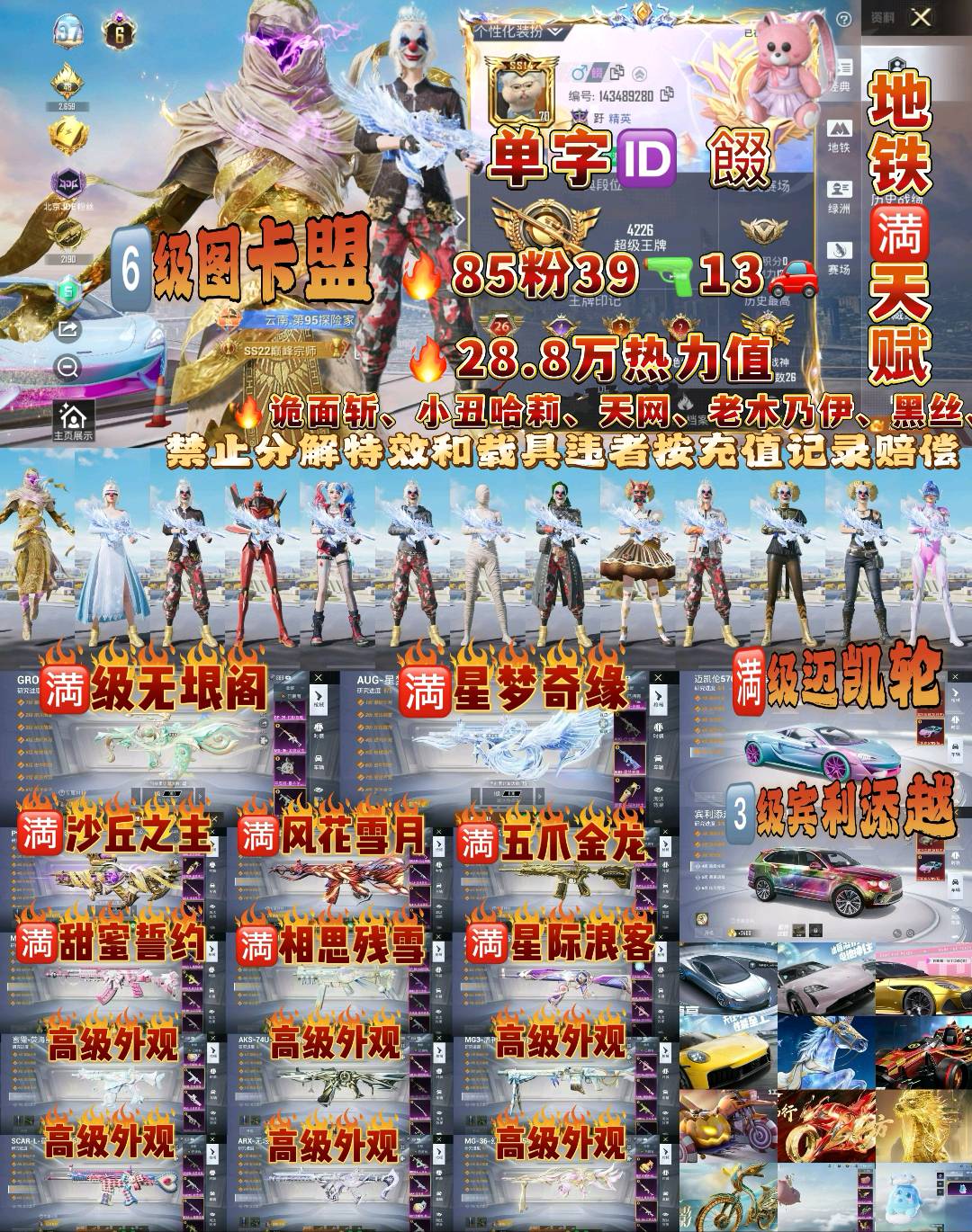 【苹果】 单字ID餟 🈵素材\六级图卡盟\龙师傅\雪国\小丑\男神套\🈵级星梦奇缘🈵级无根阁🈵级迈凯伦