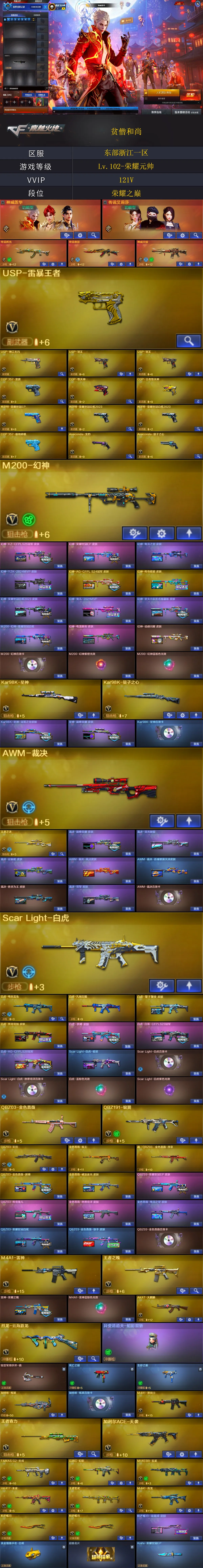 【商品标题】:东部浙江一区-97V-可二次实名-【Lv.102-荣耀元帅】-【段位:枪王2】