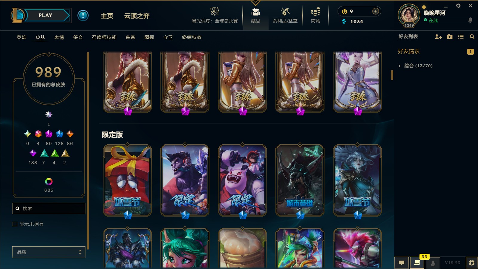 1798皮丨uzi签名联盟不朽卡莎丨氪金神话幻想劫丨云顶灵魂莲华狐狸 棋盘丨81神话丨冰雪节皎月梅尔