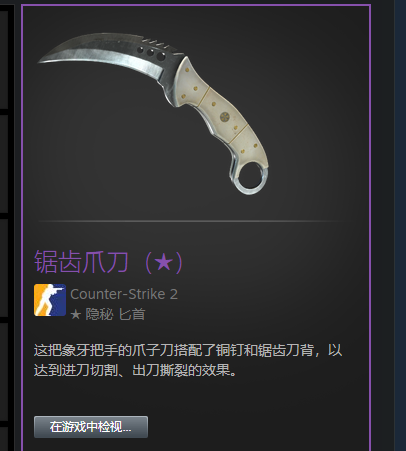 【完美段位:B:1451-1600】5e授信完美老兵丶原皮锯齿爪子刀丶op锯齿爪刀