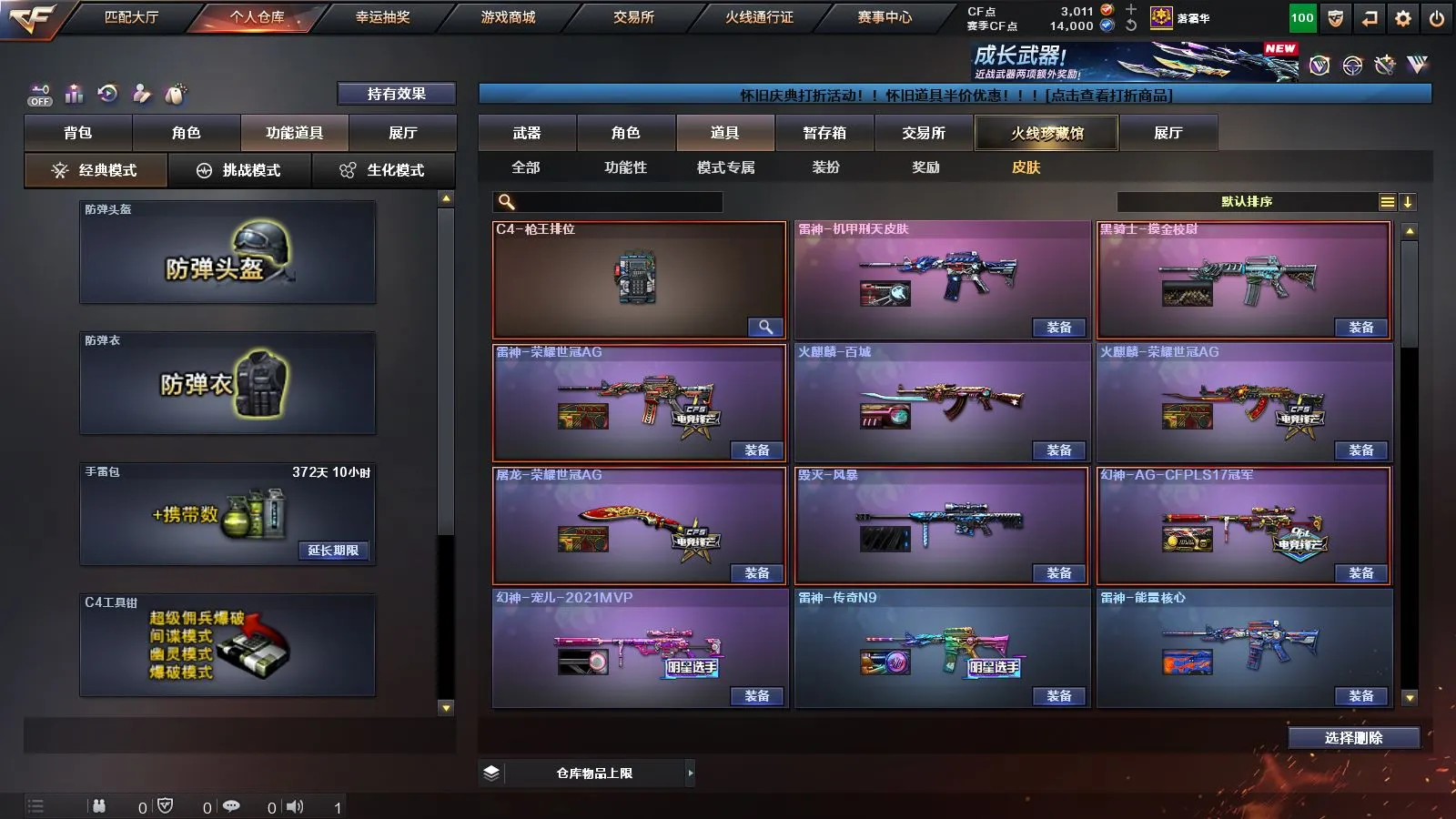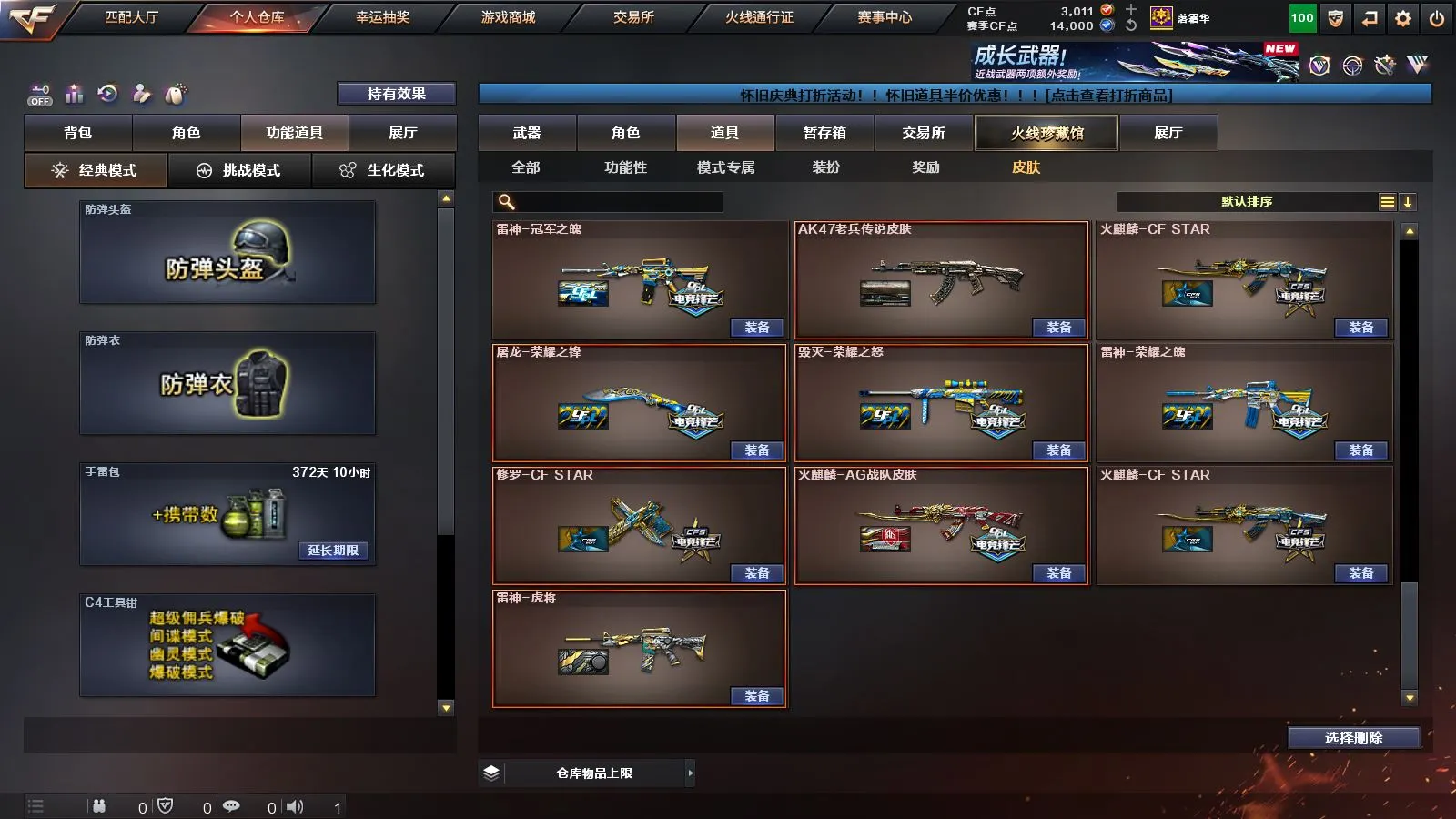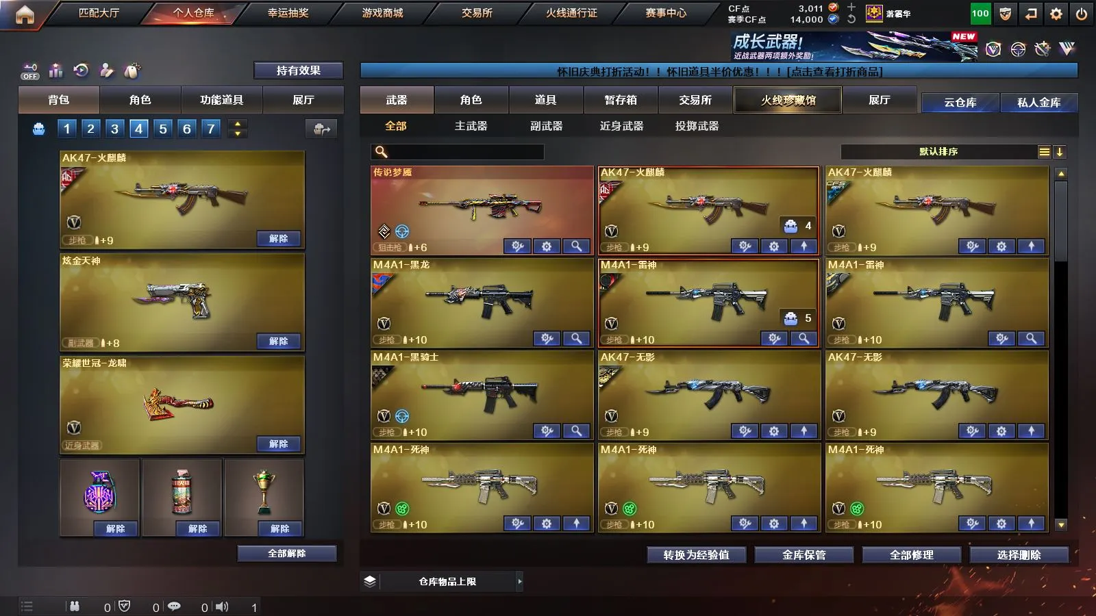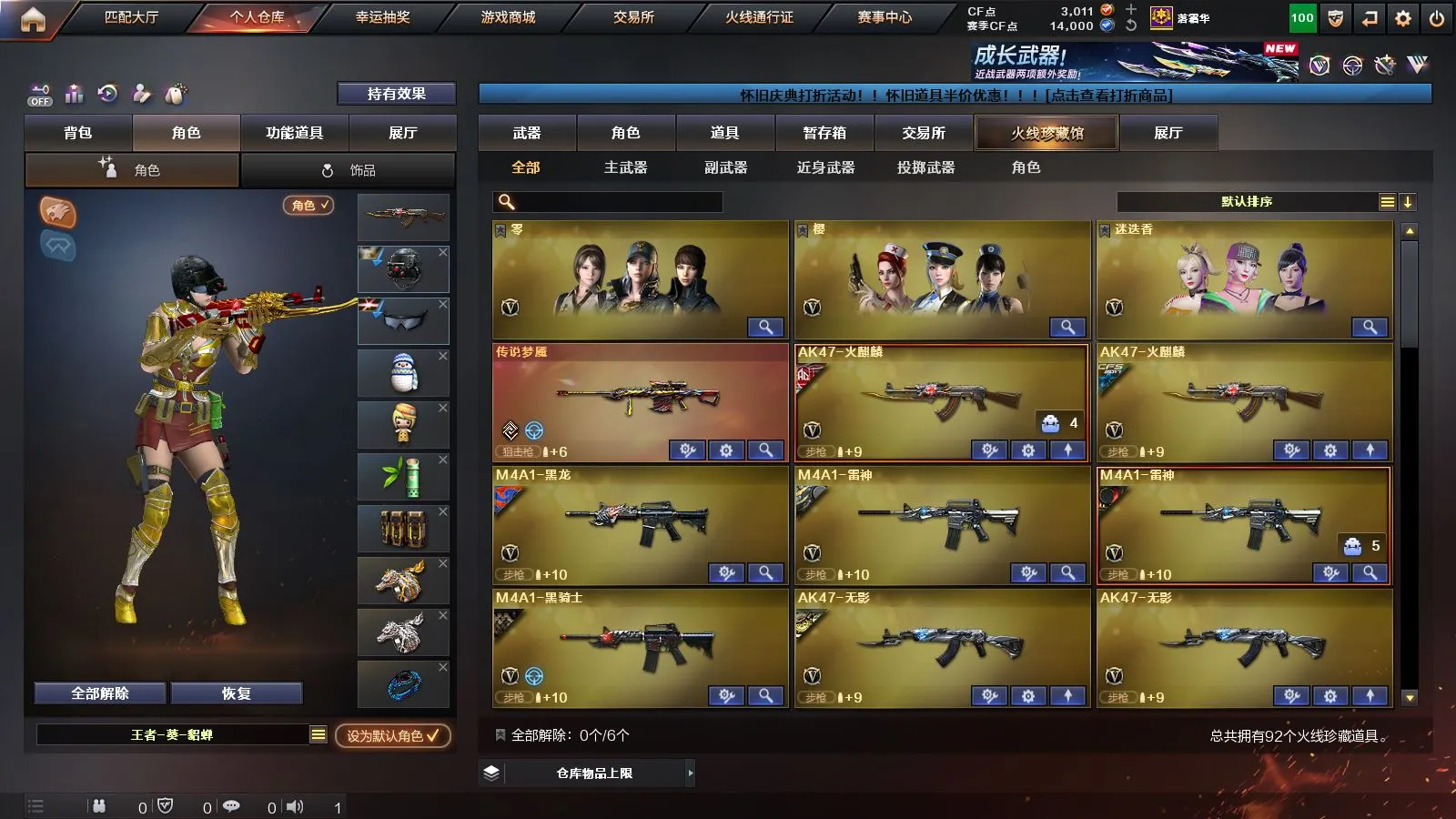 【幻神三件套!!!】 【M200幻神+幻神音效卡+宠儿皮肤+AG皮肤】【98k星神】【传说梦魇】【6烈龙+4炼狱+2盘龙】 【白虎+白虎音效卡】 【qbz03金色蔷薇】 【荣耀世冠套装】 【王者炎性 王者之心 王者之翼 王者冰魄 王者之魄 王者之武 王者之力 王者之怒】【雷神+雷神音效卡+荣耀之魄皮肤+传奇N9皮肤+宠儿皮肤+冠军之魄皮肤+荣耀之冠AG皮肤】 【火麒麟+传奇EVEN皮肤+荣耀世冠AG皮肤】【毁灭+毁灭音效卡+荣耀之怒皮肤+2020MVP皮肤】 【黑龙 黑骑士 无影 死神 天启 武圣 机械迷城 青龙 朱雀 qbz03独角III 玫瑰精灵 猎神 9A91烈火 超新星悦享 猩红传说 战士 战神 身先士卒 常胜将军 极光 裁决 巴雷特金色蔷薇 巴雷特暗月传说】——【沙鹰修罗 沙鹰天神 荣耀世冠柯尔特】——【屠龙 龙啸 擎天麒麟刺 战神刀雷暴 王者之锋 王者之啸 王者之击 荣耀世冠龙啸】——【雷暴投掷武器套装 雷霆王者投掷武器套装】——【热门武器/小人枪】【苍鸣雷神 青龙掌上穿越火线 火麒麟灵狐 炫金黑龙 炫金雷神 炫金骑士】——【角色】【4防(王者春 王者葵貂蝉)】