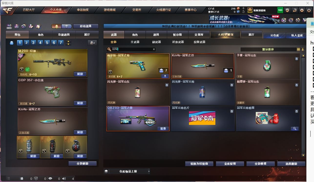 【亮点解析 幻神三件套 冠军套】【m200幻神+音效卡+宠儿+黄忠+冠军之特+冠军之刃】【白虎之魄】【qbz金色蔷薇+冠军之薇】【火麒麟+卡+even】【雷神+卡+宠儿】【黑骑士+卡】【毁灭+卡+战神张飞】【裁决 】【武器:天启 王者之势 王者冰魄 海王 王者之烈 烈龙】【7手枪:修罗*4 天神 竞技荣光 冠军之特 】【7刀具:屠龙 擎天 夜魔 王者之啸 王者之击 】【雷套:夜魔雷*2 】【音效卡:黑骑士音效卡 幻神音效卡 雷神音效卡 火麒麟音效卡 毁灭音效卡 】【四防角色:王者葵貂蝉 王者葵惊若翩鸿 王者玲珑小乔 】