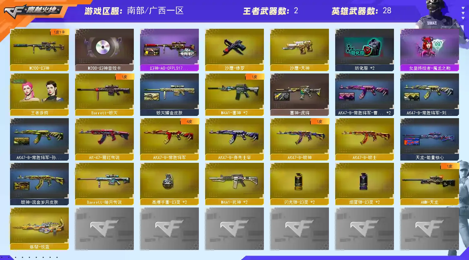 【允许排位】南部❤【m200幻神+音效卡+ag】【武器:雷神 死神 烈火 毁灭 天龙 】【手枪:修罗 天神 】【