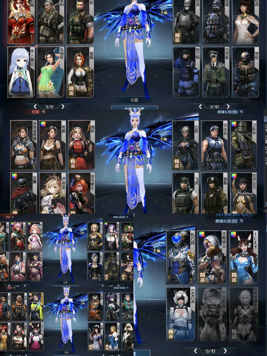 角色有塞波女孩满天赋,炽霞皮肤紫霞满天赋,洛神,圣殿骑士,旅人霏拉,伊利亚和爱尔雅,蓝方和红方的电音少女,龙女,捣蛋鬼,青龙,天梯专属角色双煞,狂猛将,铁皮人,轮滑少女皮肤铁雨染色