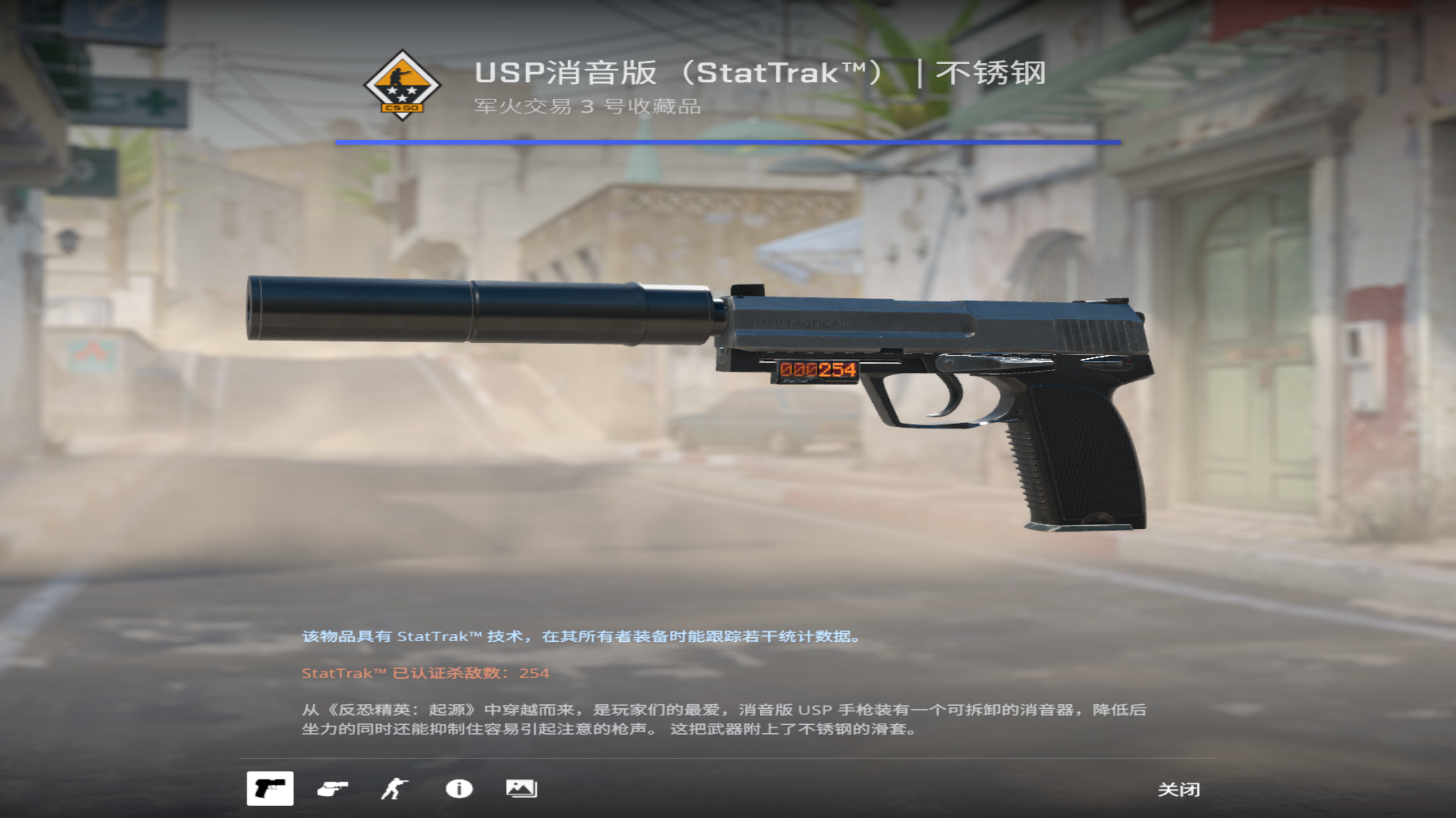 USP消音版(StatTrak™) | 不锈钢