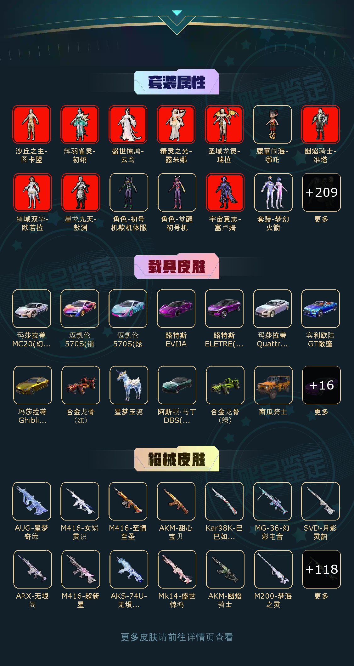 212粉,29载具,806套装,28王牌印记,无敌战神历史最高段,560340热力值 平底锅-仲夏莫吉托/平底锅-林间仙鹿/撬棍-永恒法杖/Famas-初号机 觉醒Ver./AKM-盖世英雄/AKM-甜心宝贝/SCAR-L-梦幻火箭/SCAR-L-童趣迷兔/AUG-星梦奇缘/AKM-绿萝繁花/M416-风花雪月/M416-电玩时刻/AUG-星之彼岸/SCAR-L-甜梦小狐/M416-全功率超战/GROZA-旋转彩虹/GROZA-巴啦啦小魔仙/GROZA-香水柠檬/M416-暖熊萌萌/AKM-幽焰骑士/AUG-南国舞曲/SCAR-L-天蓬元帅/Famas-觉醒初号机/M416-心之恋语/GROZA-超新星/M16A4-葫芦兄弟/M416-五爪金龙/M416-女娲灵识/M16A4-垂柳戏鸭/AKM-炫紫旋律/AKM-白勺歌姬/GROZA-精灵之光/M416-墨龙九天/GROZA-焦糖拿铁/GROZA-玉面桃花/SCAR-L-青春物语/SCAR-L-锦绣绵绵/M762-冷魅冰骑/AKM-百合蜜语/M416-至情至圣/AKM-星际浪客/AUG-妙趣可丽/M762-甜蜜誓约/AUG-超新星/M416-超新星/SCAR-L-万古烈焰/蜜獾-辉耀战甲/AKM-梦之光华/SCAR-L-魔童闹海 哪吒/ARX-无垠阁/蜜獾-异瞳寒姬/SPAS-12-蜜语绒猫/S12K-海渊国主/M417-第五大道/SKS-碧影闪光/Mk14-盛世惊鸿/Mk14-闲梦青缨/Mini14-荧光虫舞/SLR-暗夜玫瑰/MK20-H-海螺星光/Mini14-龙虾霸霸/DP-28-扶摇飞仙/M249-彩虹甜喵/MG3-辉羽雀灵/MG3-梦幻舞会/PKM-天星战神/MG3-炙焰牛王/MG3-酷泡奶龙/DP-28-枪炮玫瑰/DP-28-幻梦音符/M249-猪猪侠/DP-28-金蝉行者/DP-28-圣堂之誓/MG3-洛神天依/MG-36-幻彩电音/PKM-江南烟雨/M249-绒雪飘舞/DP-28-千金淑猫/M249-蓝莓炮弹/DP-28-豹影疾电/UZI-绮梦青鸾/P90-仙履奇缘/P90-电糖天使/汤姆逊-怪笑疯兔/UMP45-量子极限/Vector-红伞翩翩/P90-甜蜜草莓/P90-能量风暴/UMP45-宇宙意志/汤姆逊-荒漠赏金/P90-粉樱探戈/AKS-74U-星穹咏叹调/Vector-环太平洋/UZI-筑梦精灵/UMP45-雪国精灵/UMP45-相思残雪/野牛-青空秋雨/UMP45-恐龙拽拽/P90-沙丘之主/汤姆逊-冰川粉黛/UMP45-玉魂晶魄/UMP45-启明星/AKS-74U-无垠阁/P90-魔童闹海 敖丙/JS9-奇迹舞步/破片手榴弹-瓶中星球/破片手榴弹-美味星星糖/烟雾弹-电雾迷城/破片手榴弹-秋玉花灯/爆炸猎弓-拳皇·狂花道/烟雾弹-猫咪绅士/破片手榴弹-粉粉猫爪/AWM-平天焚空/AWM-璀璨巨星/Kar98K-伏魔团/Kar98K-圣域龙灵/AWM-花间之火/Kar98K-巳巳如意/Kar98K-圣光天使/AWM-橘柚倾心/M24-镜域双华/AMR-炫光之旅/M24-翩跹演武/M200-玉鳞金羽/Kar98K-未来歌姬/SVD-月影灵韵/M200-梦海之灵/Kar98K-暗翼战神/M24-星之信仰/M24-魔法神域/M24-莲影清波/玛莎拉蒂Ghibli(金)/特斯拉Roadster(沁心粉)/特斯拉Model 3(珍珠白)/阿斯顿·马丁DBS(绿)/特斯拉Model 3(奇幻紫)/特斯拉Roadster(水滴蓝)/玛莎拉蒂Quattroporte(幻星粉)/宾利欧陆GT敞篷(深空蓝)/萌喵橘座/路特斯ELETRE(电光紫)/南瓜骑士/拉轰鸭鸭车/鬼马风驰/快艇-塞莎KL27(霓虹粉)/合金龙骨(绿)/合金龙骨(红)/迈凯伦570S(炫冰蓝)/路特斯EVIJA(电光紫)/玛莎拉蒂MC20(幻星粉)/迈凯伦570S(镭射紫)/冰绡玉鳞/星梦玉骢/关羽赤兔马/赵云玉狮子马/照夜玉狮子/疾风龙骑/辉羽雀灵自行车/双人摩托-双刃魅影(红)/极速兔兔/踏焰逐风摩托车/