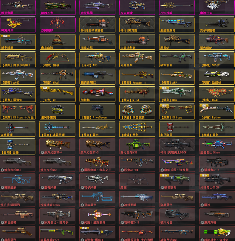 双黯4特典狙加特林黯火黯影四件套●双兔神EX龙神次元万钧神威恶魔雷双斧●闪电套维京套暗影暗火