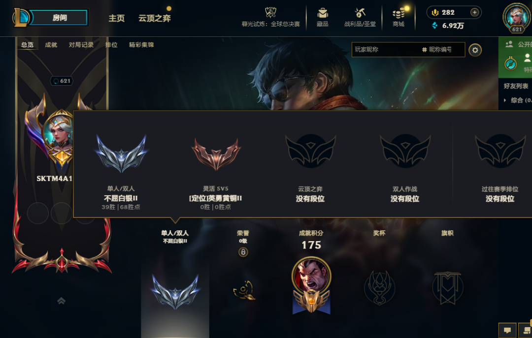 不屈白银Ⅲ/单双排段位